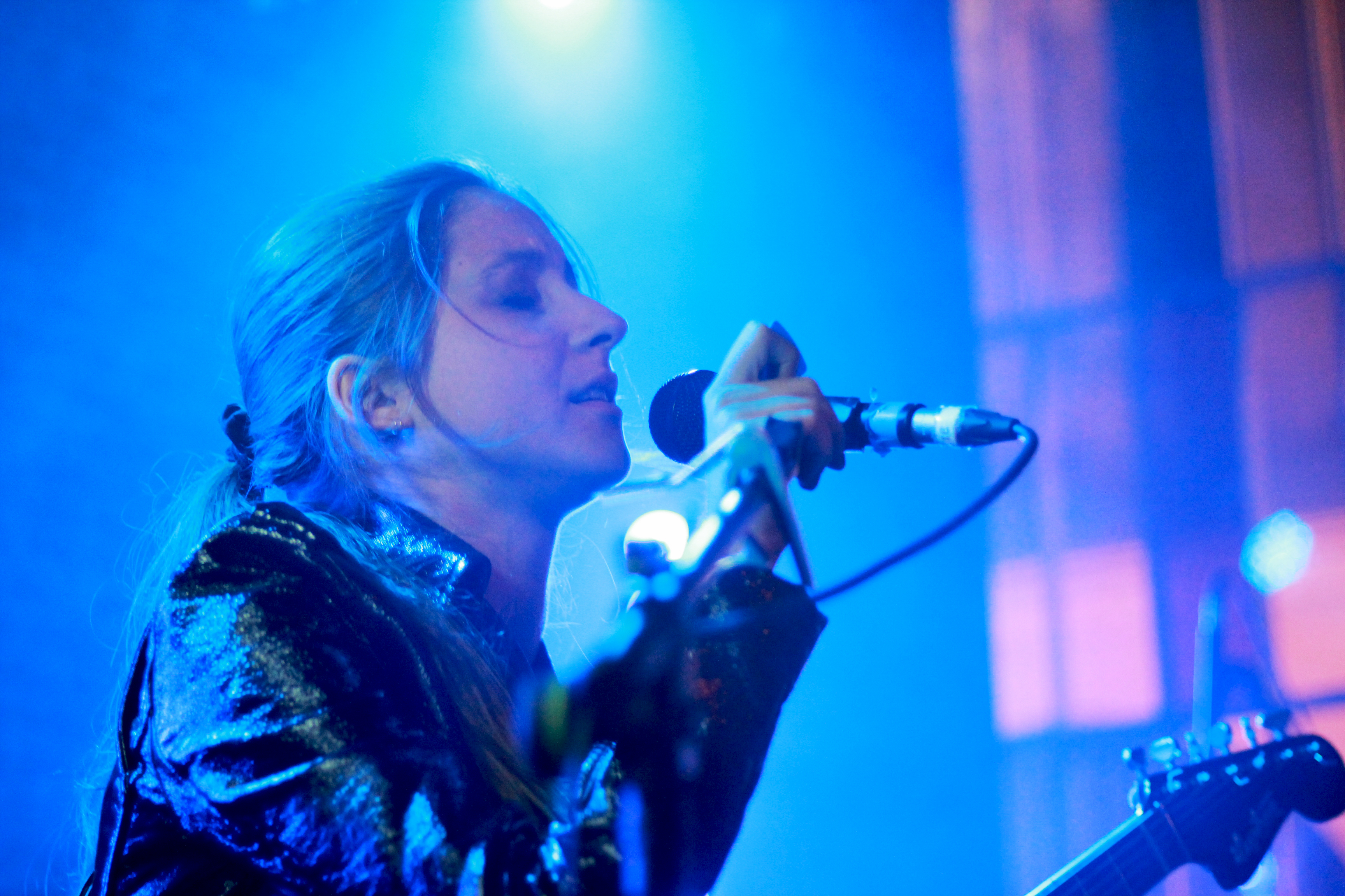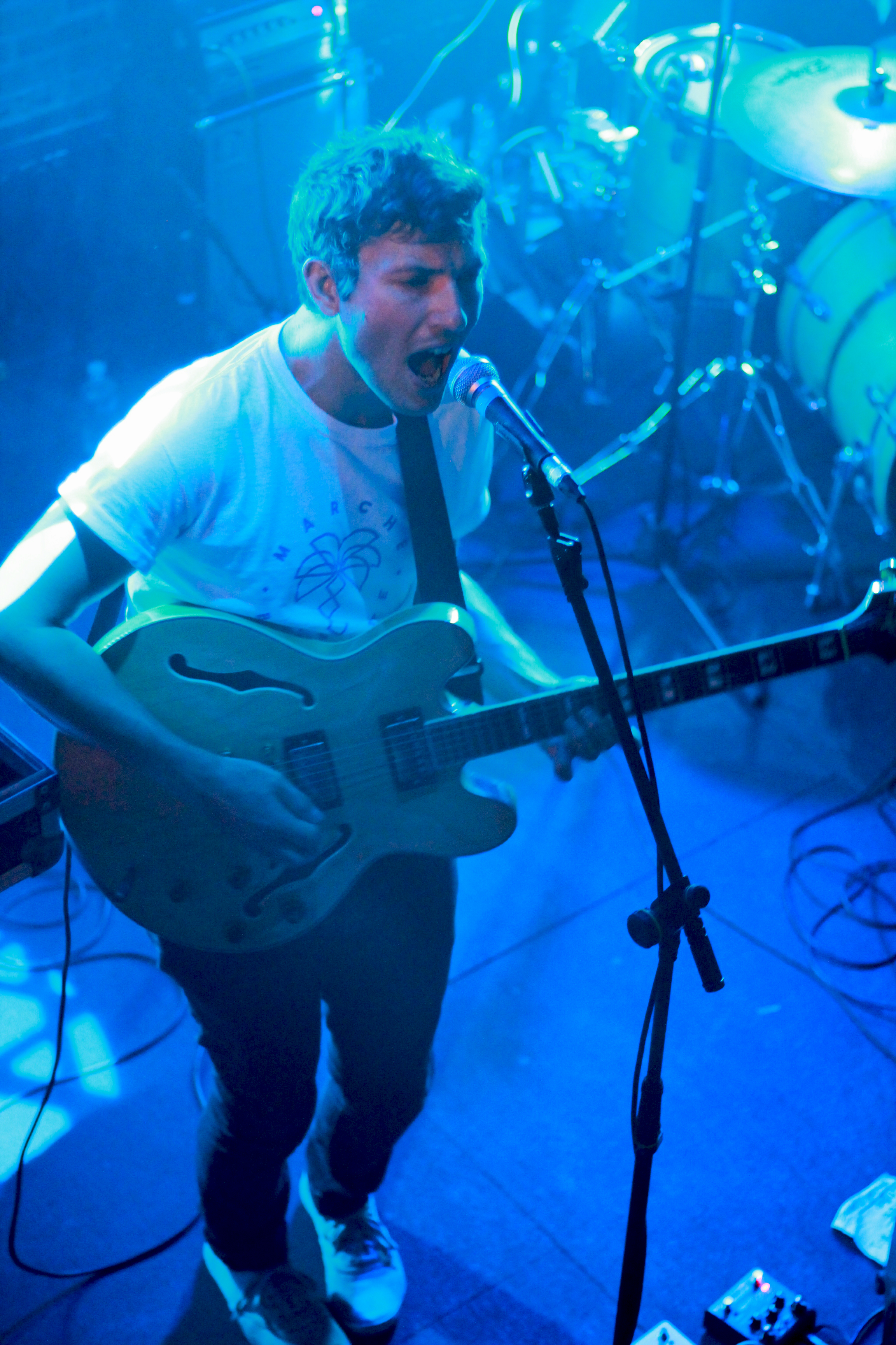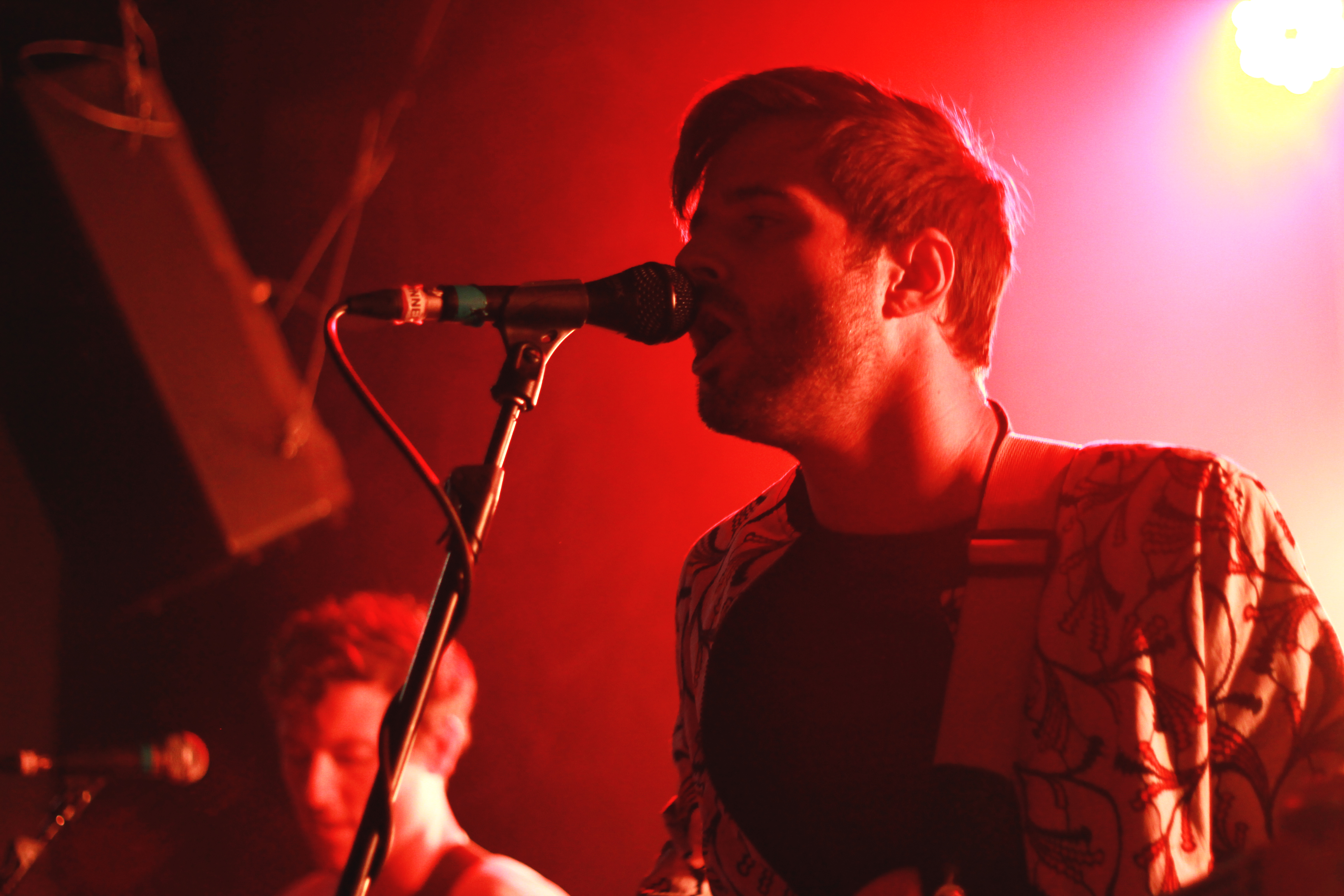 Au tour d’Amoure d’entrer sur scène. Amoure, on en a entendu parler par Ricard puisque les garçons ont fait partie des 10 finalistes du Prix cette année. On avait hâte de les découvrir. Dès la première chanson, on comprend que les trois garçons vont nous faire chalouper avec leur pop tropicale romantique et leurs rythmiques insulaires. Si au début on se laisse séduire par leur indéniable énergie et leur bonne humeur, on a tendance à décrocher à petit feu. Alors que le set avance, on ne parvient vite plus à différencier les chansons. Les rythmiques de batterie et de guitares nous semblent être très ressemblantes, et on ne distingue guère les paroles, des petits bémols sans doute à amputer à l’acoustique de la salle, qui ne nous permet pas vraiment de percevoir les subtilités de leurs ritournelles ensoleillés.
