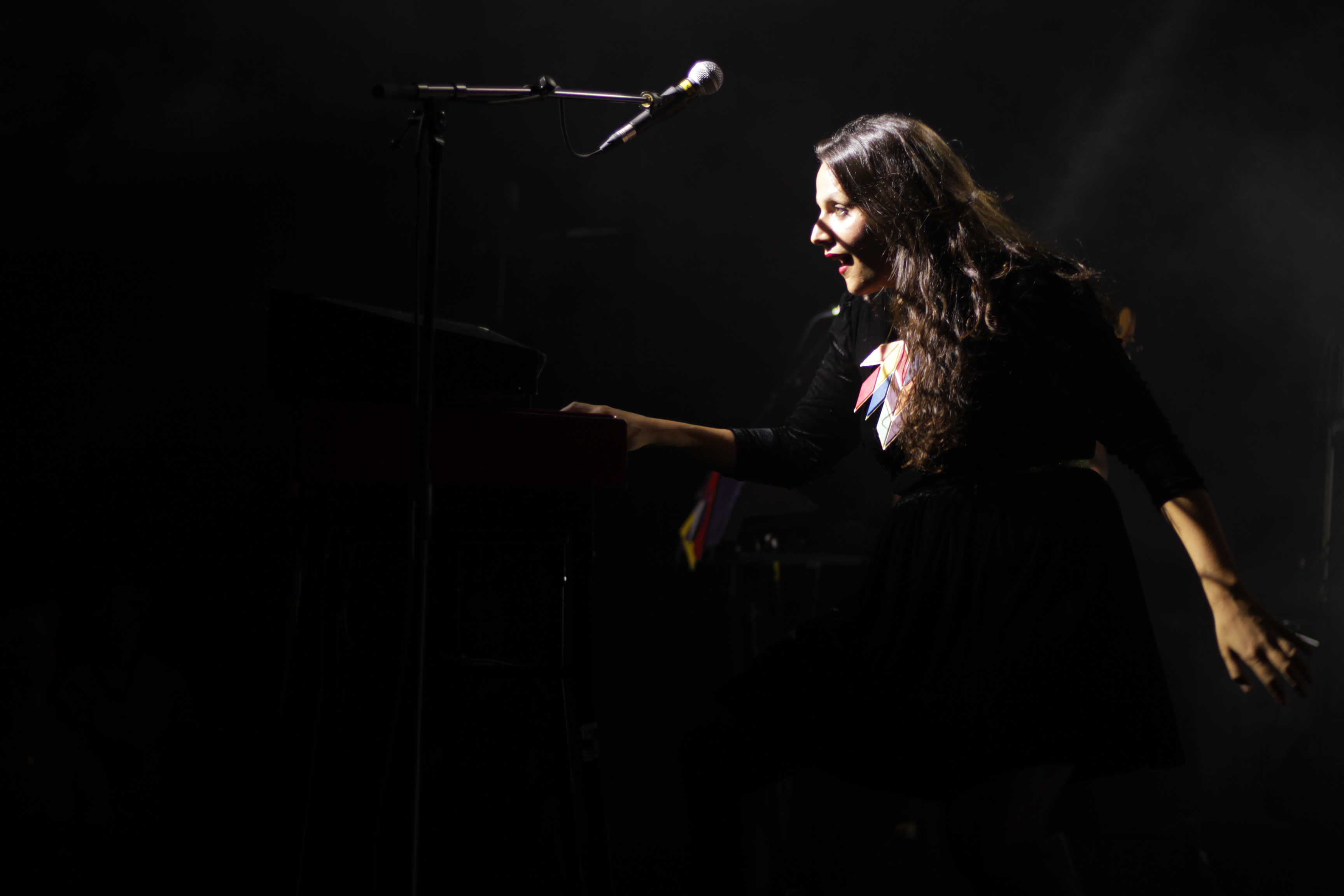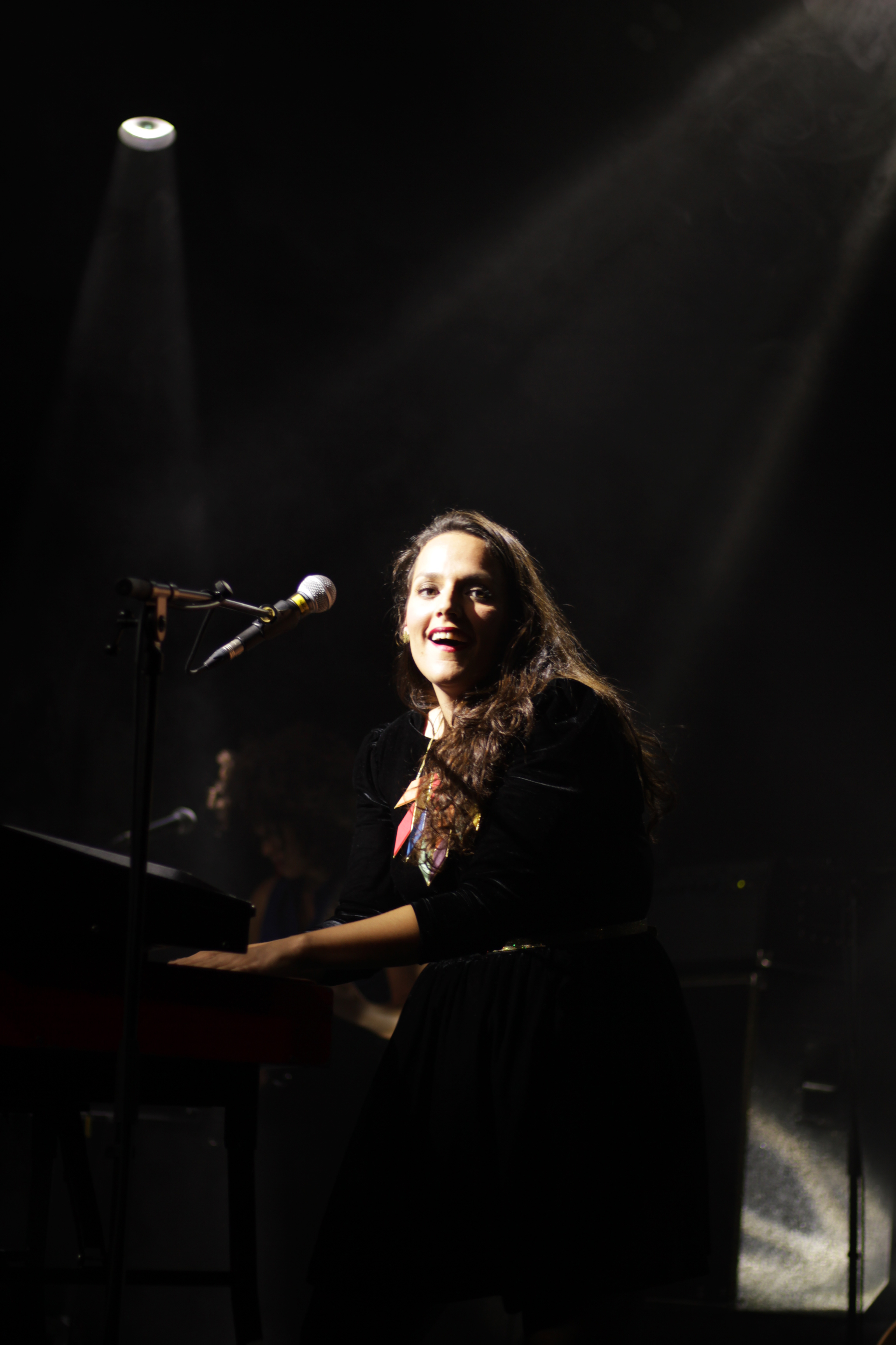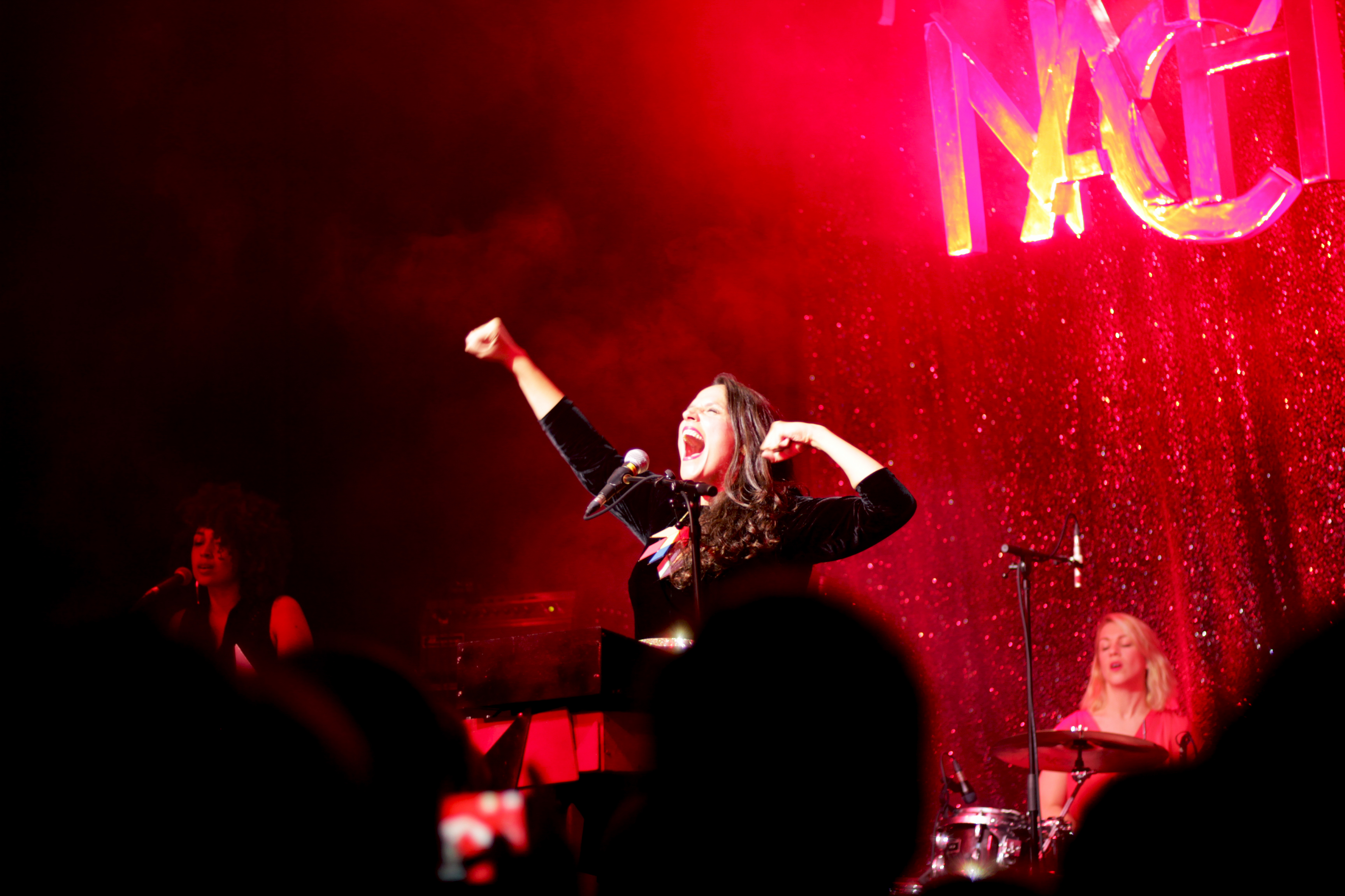 Après près d’une heure de set, Tim Dup laisse la place à celle tant attendue (la salle est déjà presque pleine et personne n’ose sortir de peur de manquer son entrée) : Nach. Lorsqu’elle arrive, la salle explose d’enthousiasme. On aura rarement vu une salle comble autant passionnée. Nach elle-même, sensible à toute cette émotion ne cache pas sa joie, faisant le show sur scène, racontant des blagues, faisait monter des invités surprises. C’est d’abord le violoncelliste Guillaume Latil qui s’installe à ses côtés pour un duo sur “Ce qu’ils deviennent” et “Les Absents ont toujours tort” que Nach reprend de son père, Louis Chedid, avec émotion. La chanteuse présente ensuite, pour la dernière fois, mais avec toujours autant d’affection sa nachine, petite machine à son image : qui chante si joliment les mots d’amour. Ensemble, elles chantent “Lève-toi” avant que le groupe au complet n’entonne un nouveau titre, “Imagine”, qui captive le public et annonce de belles choses pour la suite.