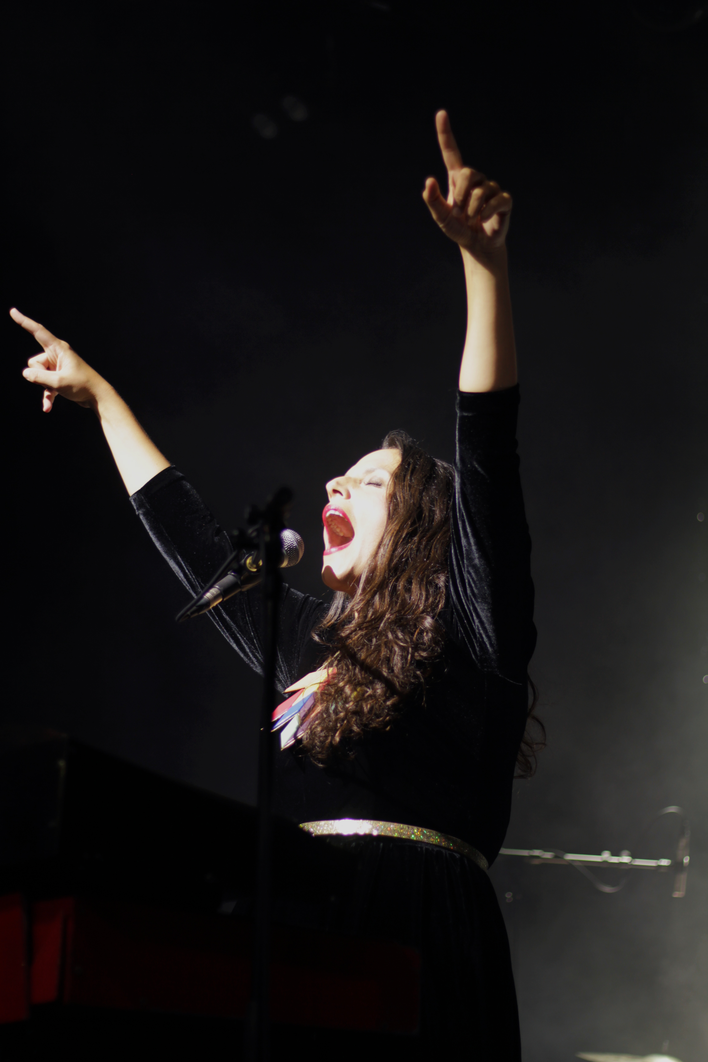 Puis, nouvel invité surprise, le frère Joseph (aussi connu sous son nom de scène : Selim), la “meilleure personne au monde”, prend sa guitare pour accompagner le Nach crew sur “Juste là”. Le public a pour mission de danser de manière “saugrenue, inventive et engagée” sur “Je suis moi”. Lancée dans son mouvement, la salle entame à l’unisson le refrain de “Oh oui je t’aime”. L’ambiance est électrique, sur scène comme dans la fosse on chante à tue-tête un, on ne peu plus sincère, je t’aime. Pour calmer les ardeurs du public enflammé, Nach et son frère jouent une version acoustique guitare-voix de “T’es haut”. Pour terminer le show endiablé, le public est invité à monter sur scène pour danser sur “Qui c’est celle-là”. Et comme il lui est si difficile de quitter la scène, Nach revient pour un deuxième rappel, seule avec sa guitare et sa voix, chanter (message subliminal) “Je chante encore”. On se souviendra de cette soirée, l’ambiance de feu, la voix merveilleuse de Nach, son sourire et sa bonne humeur incroyablement communicatifs.