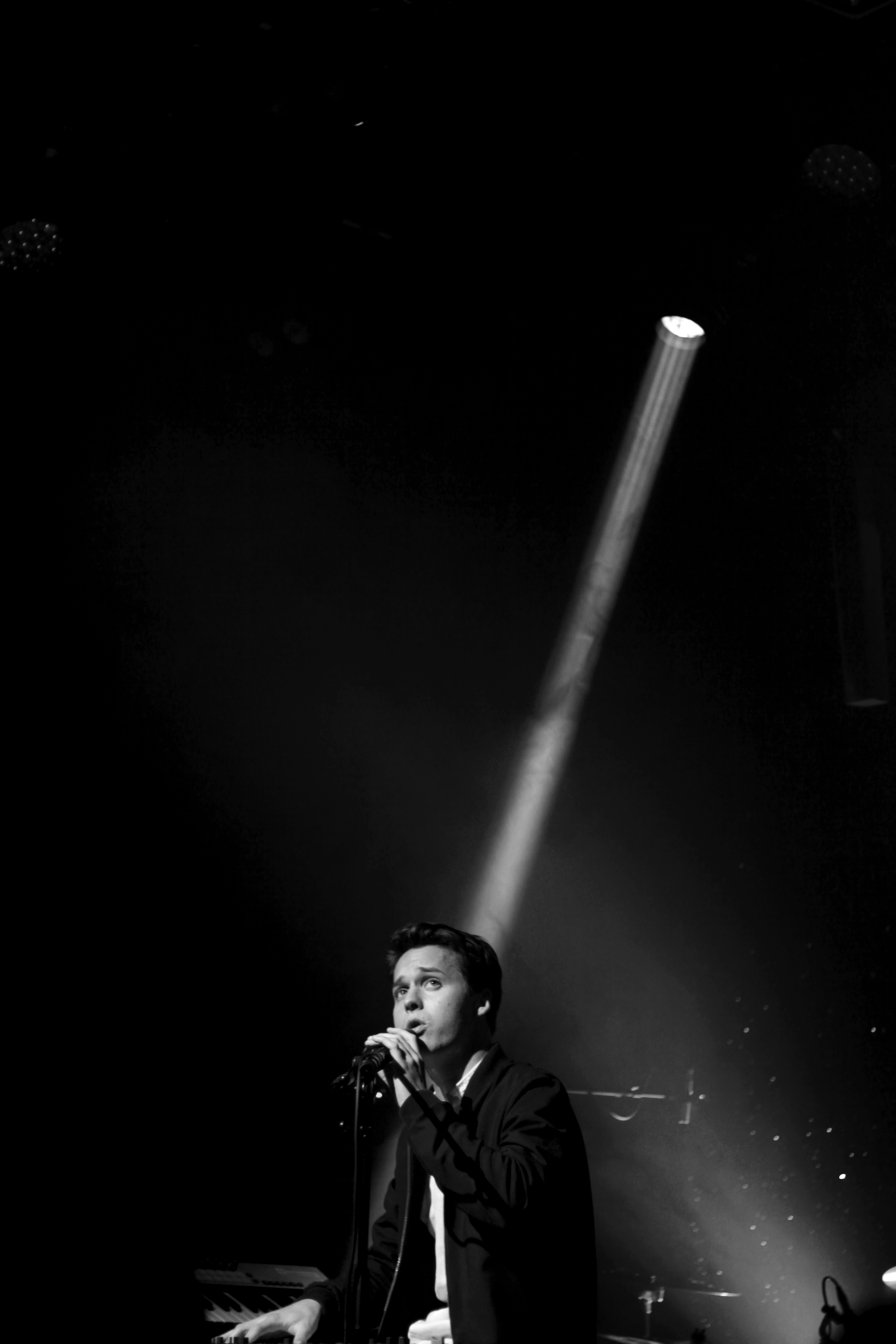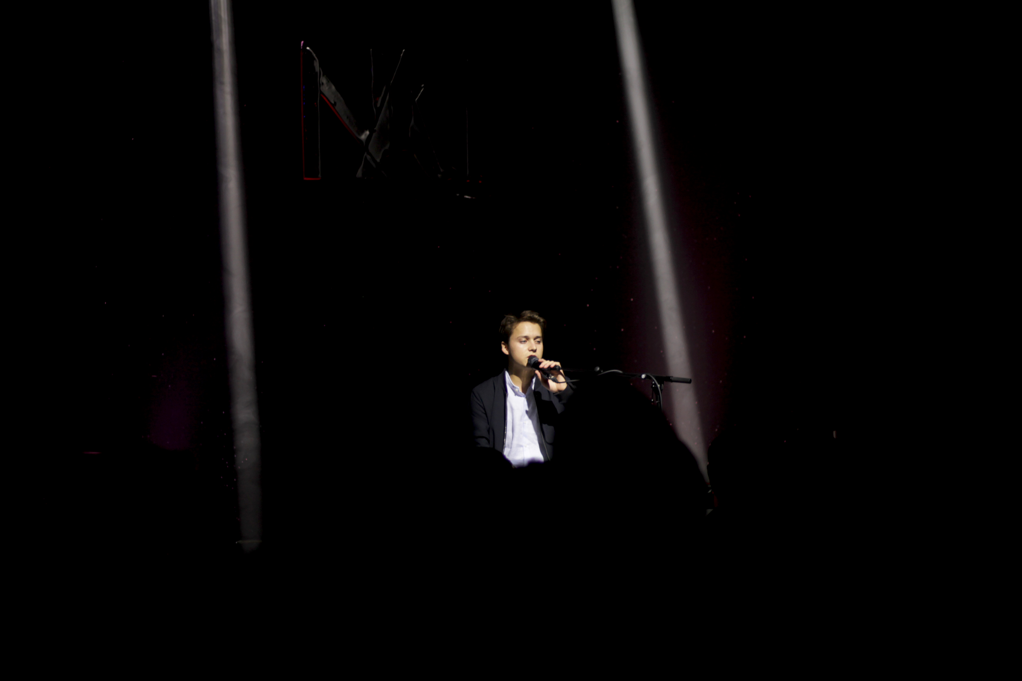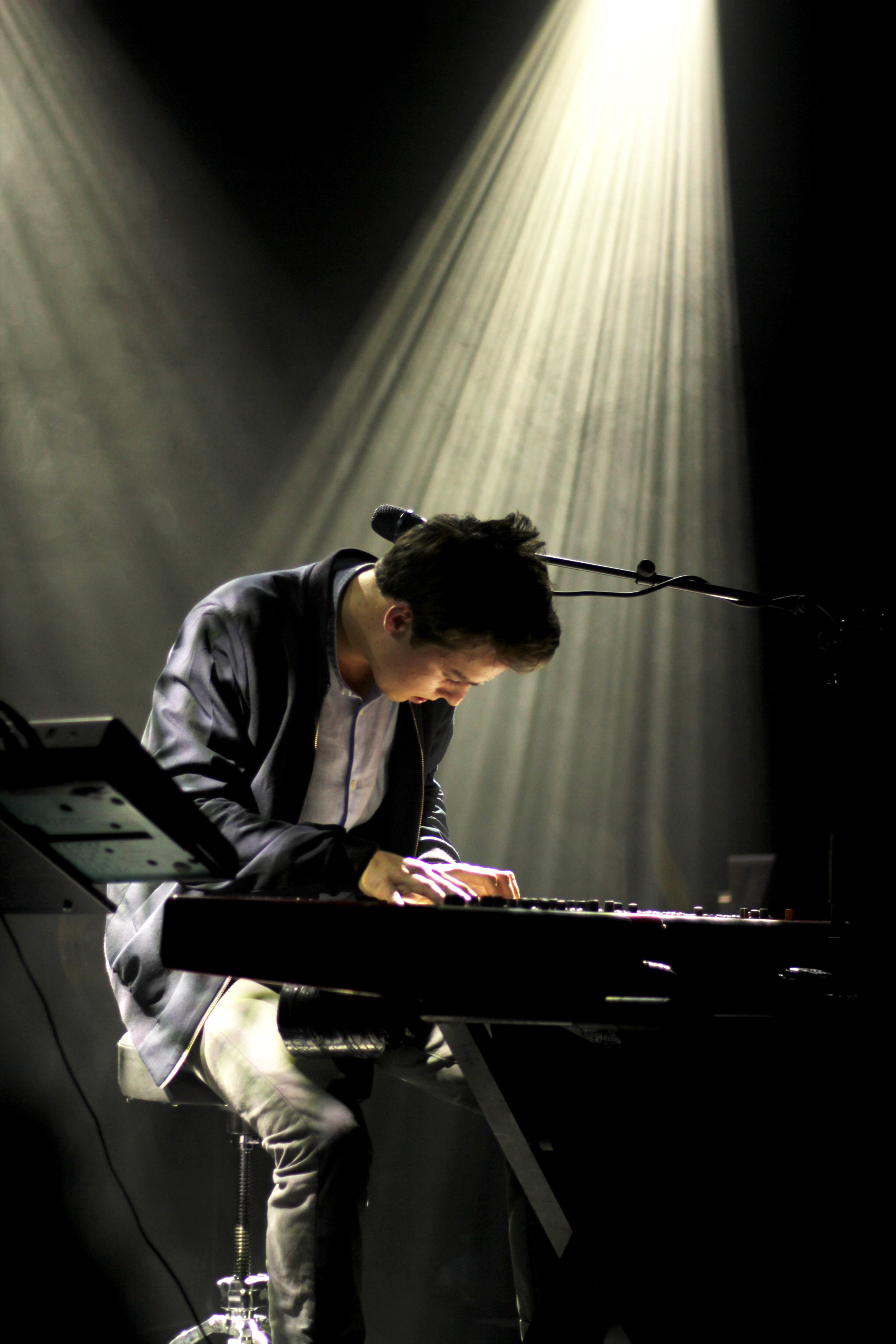 Tim Dup, qui a déjà souvent ouvert pour Nach sur sa tournée, a le beau rôle de chauffer la confortable salle du Flow. Assis derrière ses claviers, éclairé sobrement mais justement, il chante ses titres dans un français mi-abstrait-poétique mi-naïvement-romantique (on note que le jeune homme entame tout juste sa vingtaine d’années). D’un son de piano parfois très classique agrémenté de samples et nappes électroniques et de rythmes sourds, il compose des titres qui touchent.