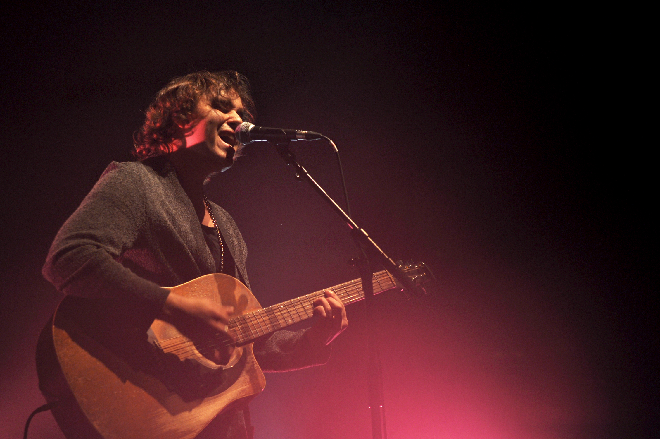 Quand on entre dans la grande salle, déjà bien remplie, c’est la surprenante voix de Jim Bauer qui nous accueille. La voix androgyne du jeune chanteur n’hésite pas à monter haut dans les aigus, et à descendre grave lorsqu’il reprend Daft Punk, “Better, Faster, Stronger”. Il y a un peu de soul et de blues dans ce guitare-voix, mais l’approbation générale qui semble venir du public ne nous emporte guère.