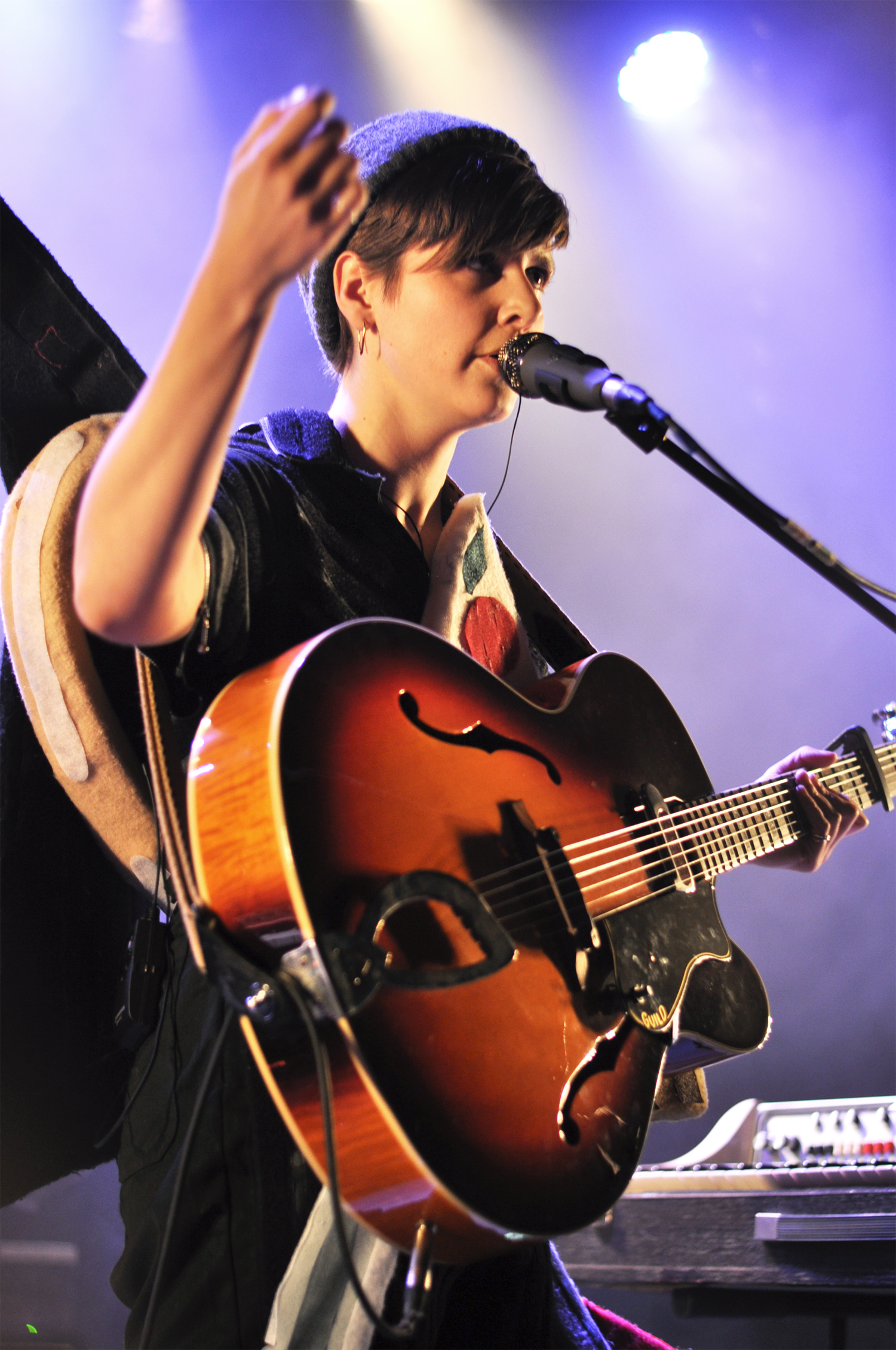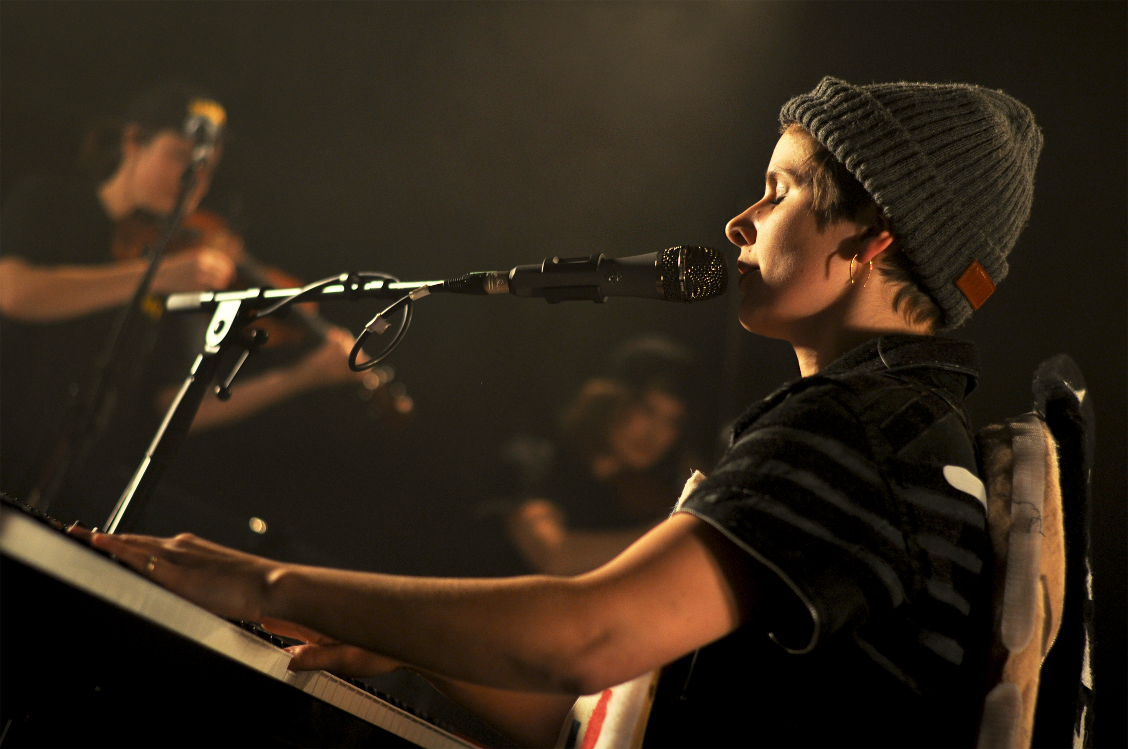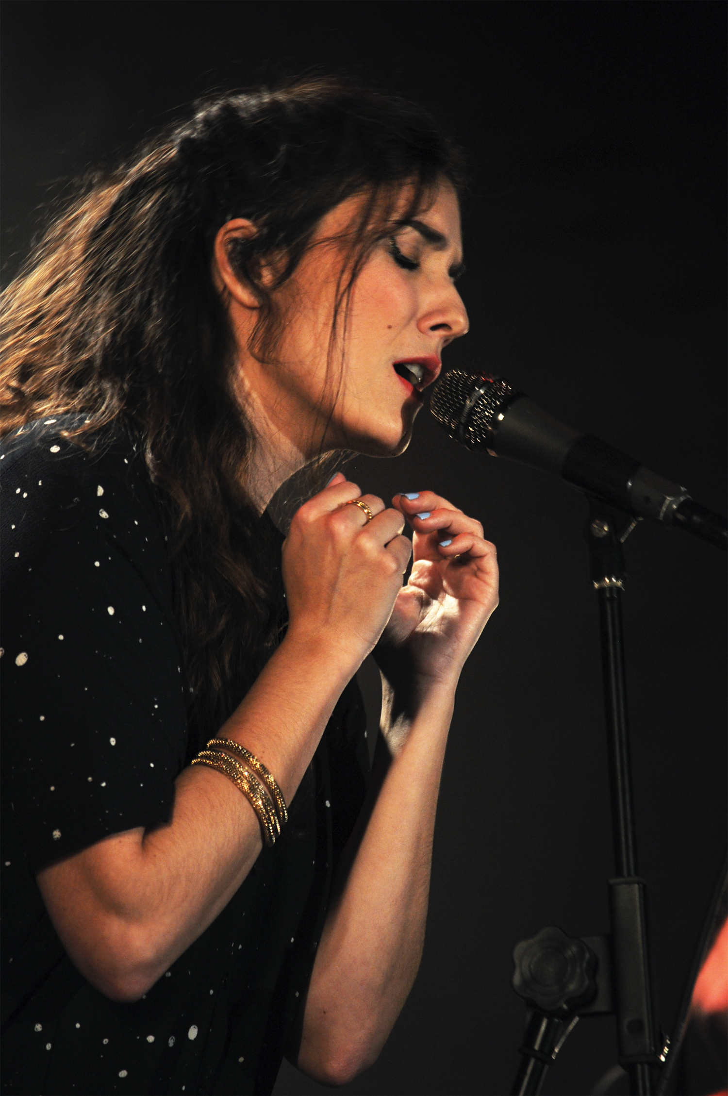 Elle est drôle, elle se moque gentiment de la France, qui est finalement moins moyenâgeuse que ce qu’on lui avait raconté, elle répond au public avec une répartie pince-sans-rire hilarante (elle nous demande même quel est le nom de la sœur de Jacques Brel. Réponse : Francisca…). Et pourtant, les titres de Klô Pelgag sont empreints d’une profondeur presque angoissante. Elle joue ce soir des titres de son premier album mais également les titres, inédits en France, de son deuxième album L’Étoile thoracique, où elle aborde aussi, de manière métaphorique et extrêmement poétique, les thèmes de la mort, de la maladie, de la solitude.