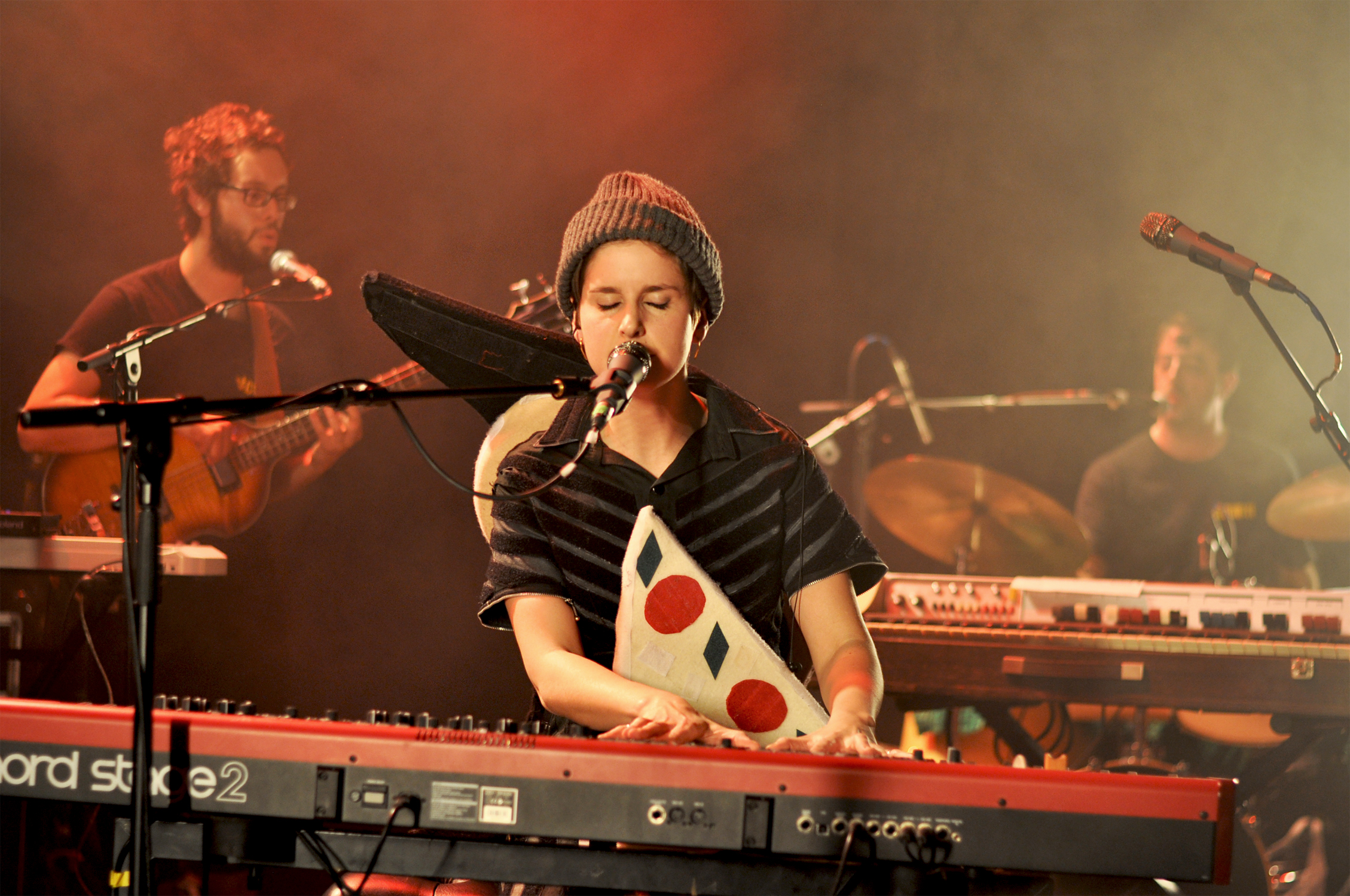 Luciole n’est pas Québécoise, elle le confesse en montant sur la scène du Pan Piper. Mais elle a traversé l’océan il y a peu, invitée par le Festival Coup de Cœur francophone. Elle est d’ailleurs revenue avec un titre écrit sur les terres de Gaspésie, l’un de nos préférés de son set (mais dont le titre reste un mystère). Son set justement, ouvrant pour la fascinante Klô Pelgag, est à la fois doux et percutif.