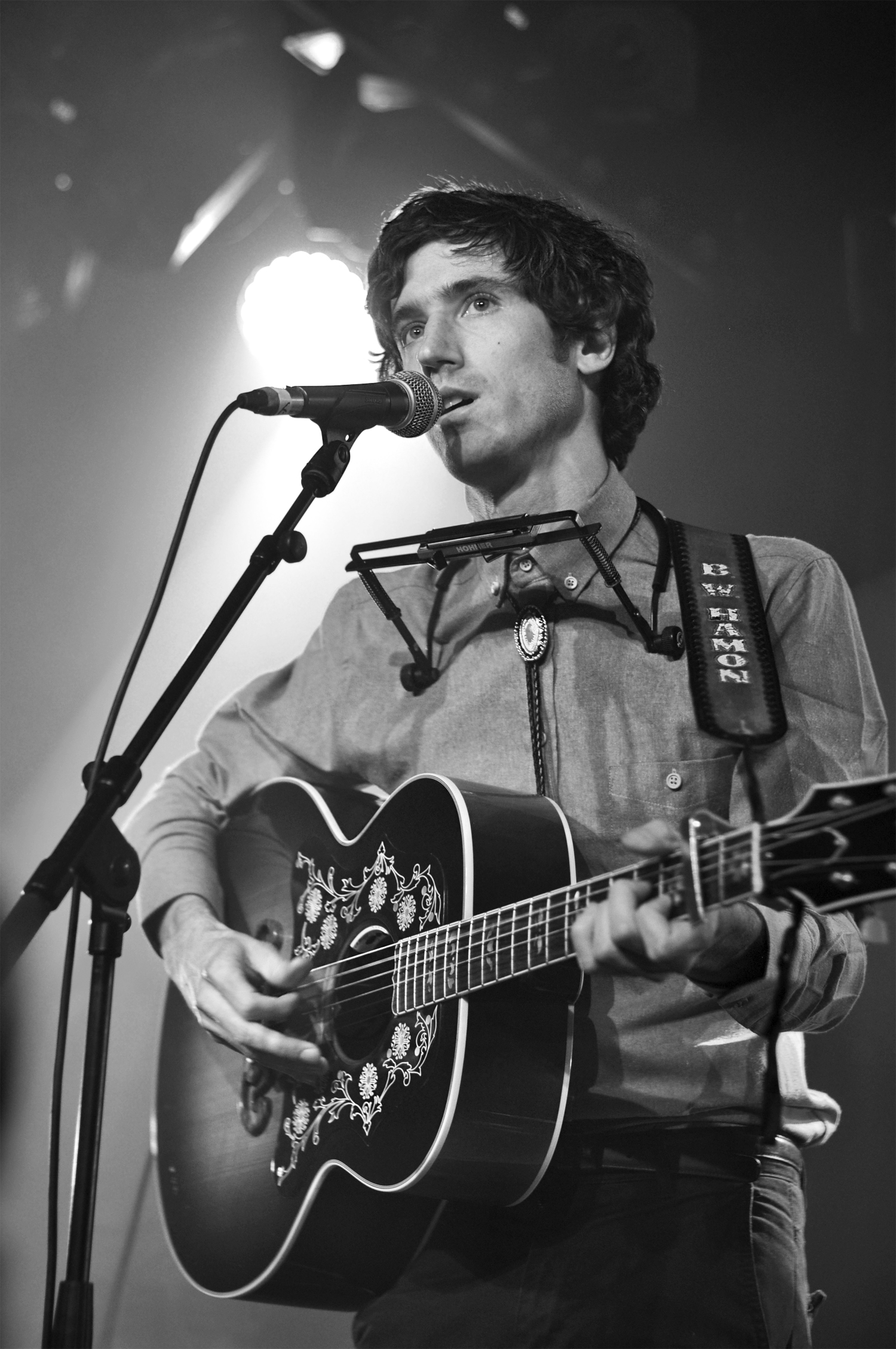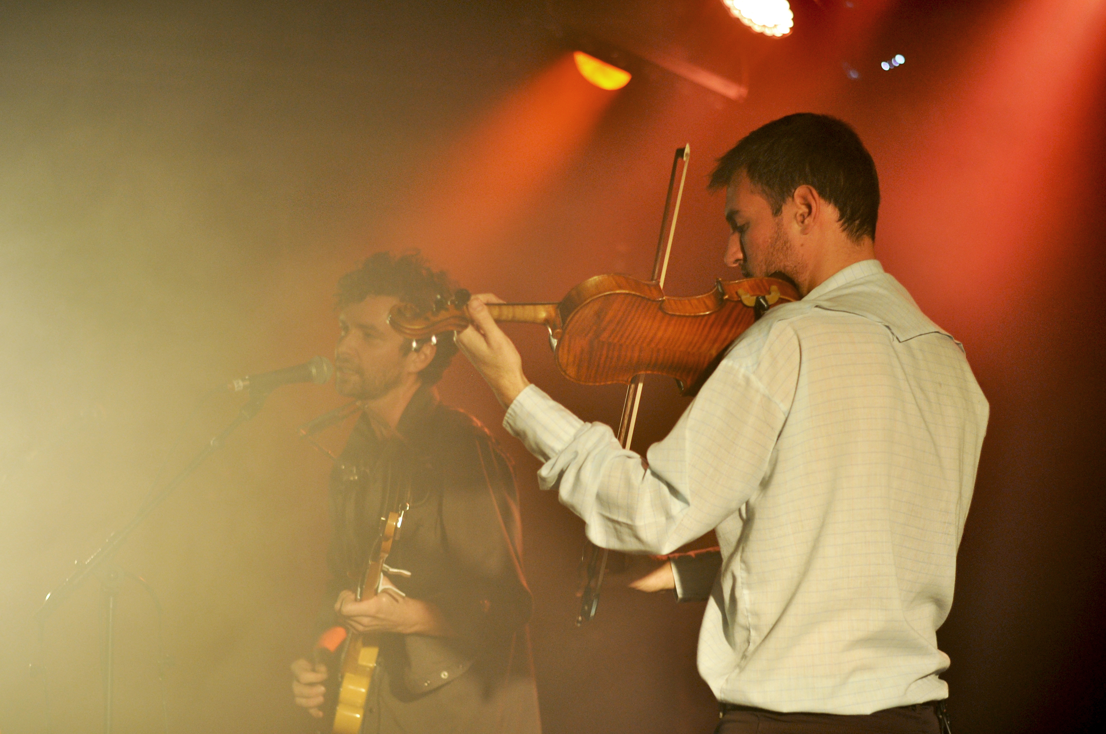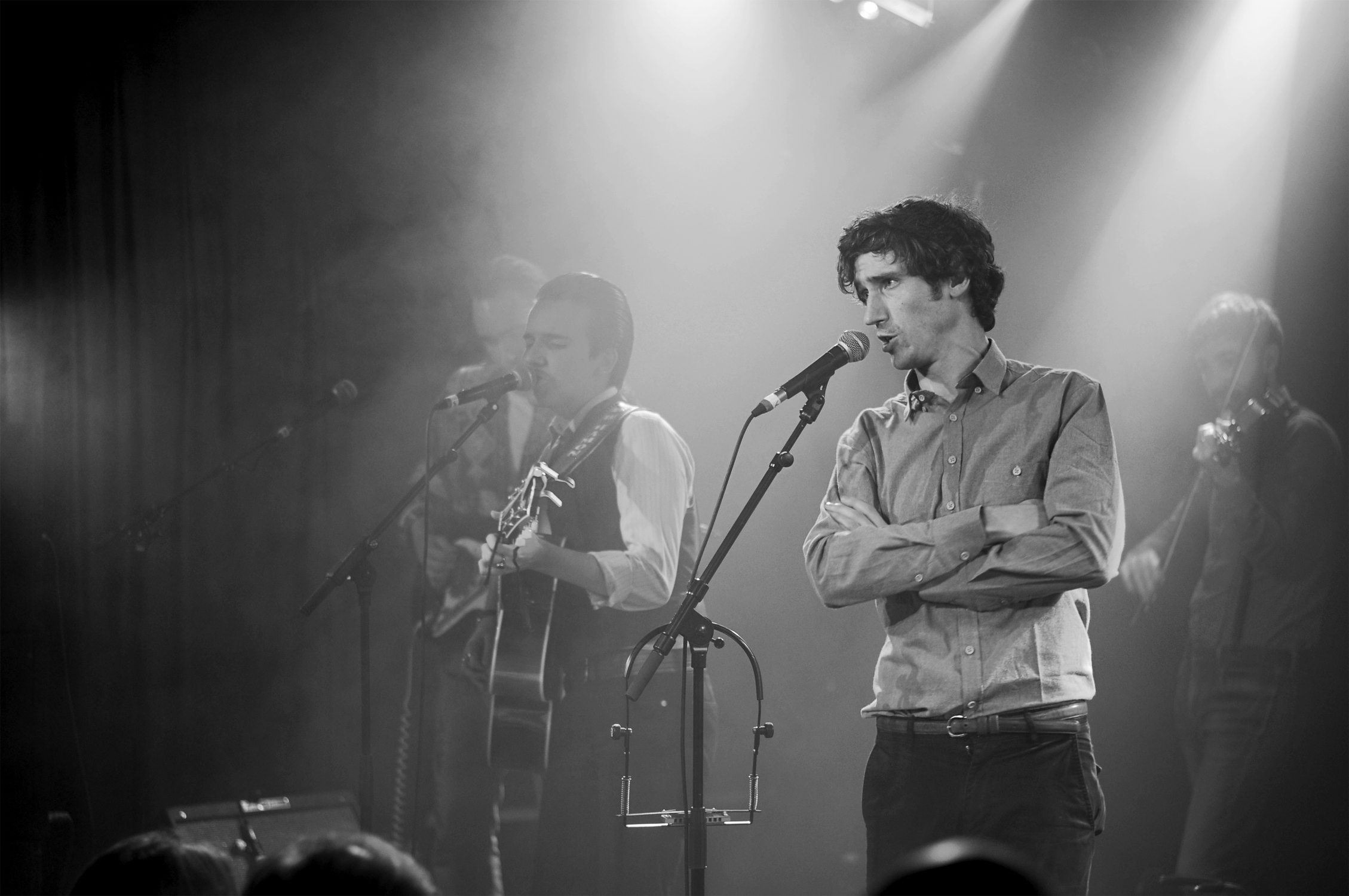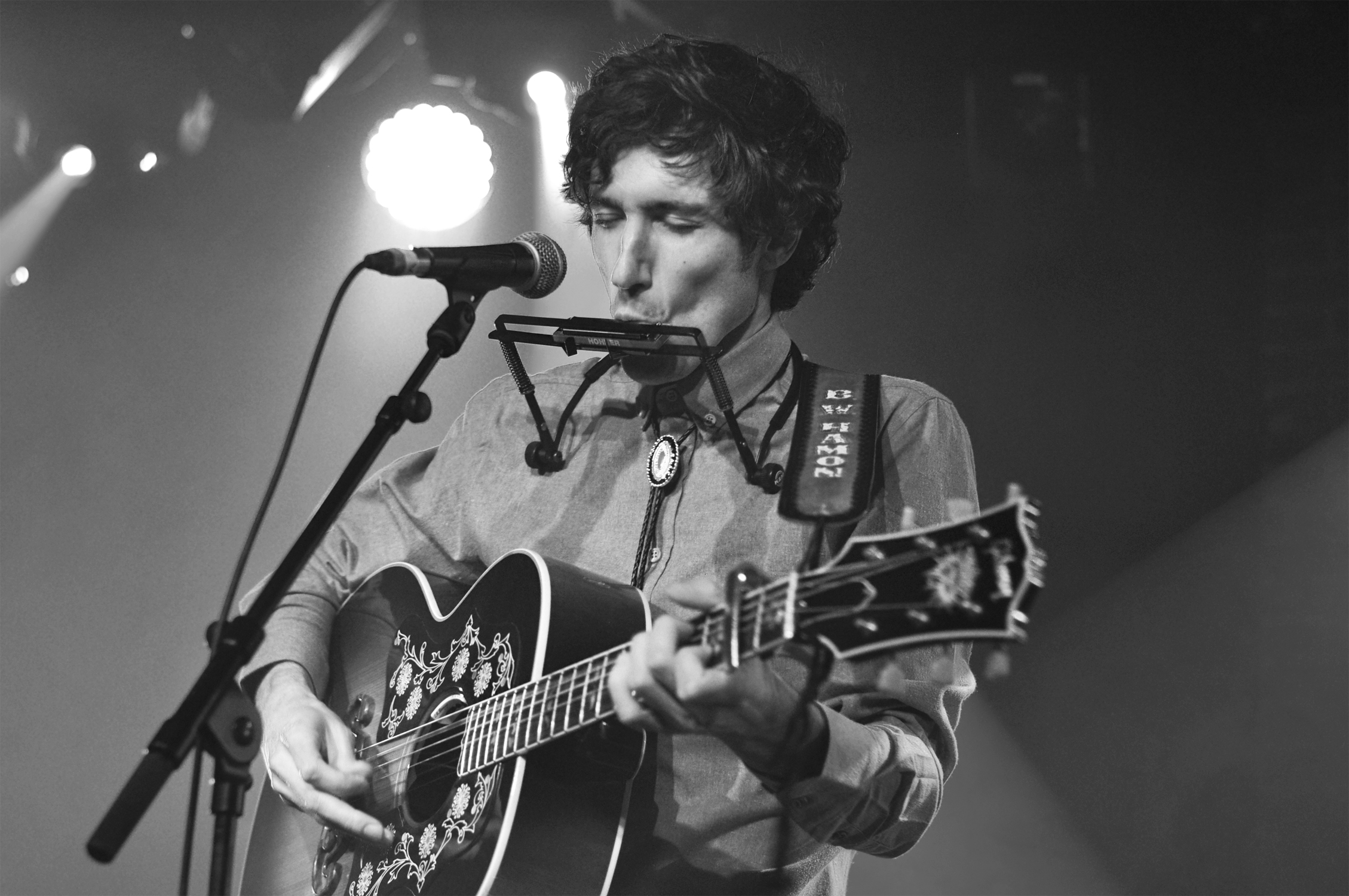 Lorsque l’on entre dans la Maroquinerie c’est Ross Voorhees qui s’installe sur la scène. Le public n’est pas encore très nombreux mais le jeune homme s’adresse avec douceur en français et parvient vite à réchauffer la salle. Venu d’Alaska, Ross Voorhees est accompagné ce soir d’un violoniste discret et talentueux. Les deux garçons jouent un folk aux accents countrisants. Avant de laisser la place au maître de cérémonie, Ross nous chante un chant de Noël écrit dans le Montana. Il nous ouvre les portes des plaines gelées des États-Unis, et on ne se lasse pas du voyage.