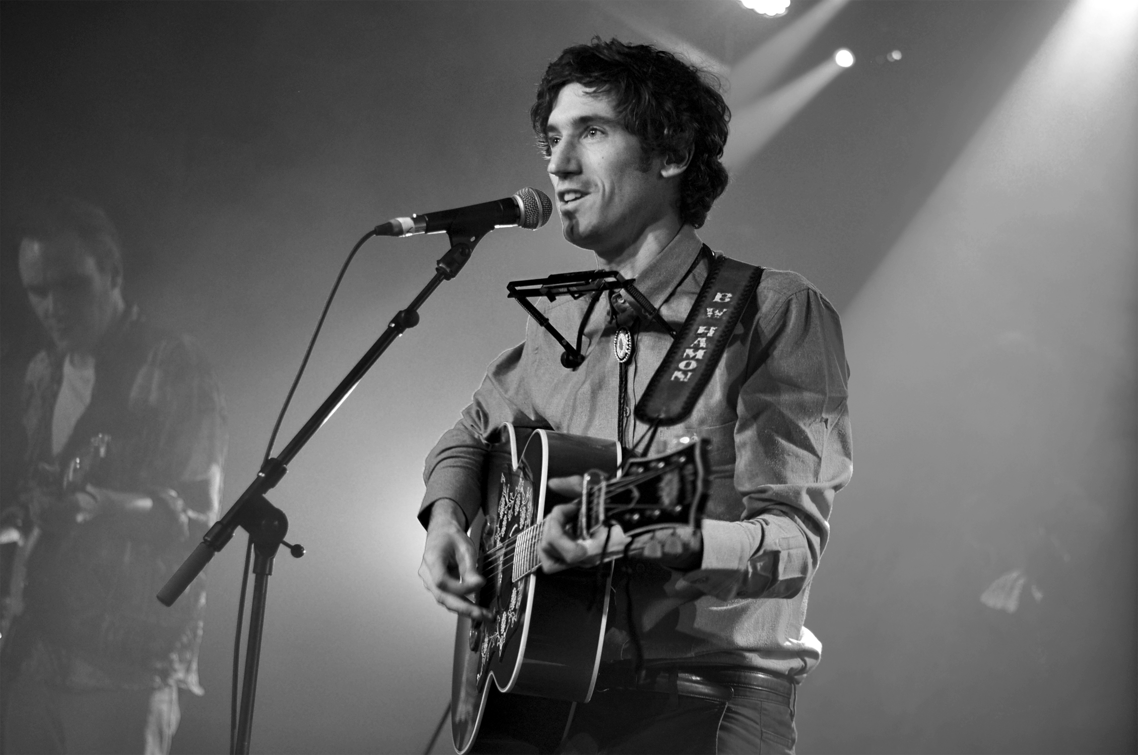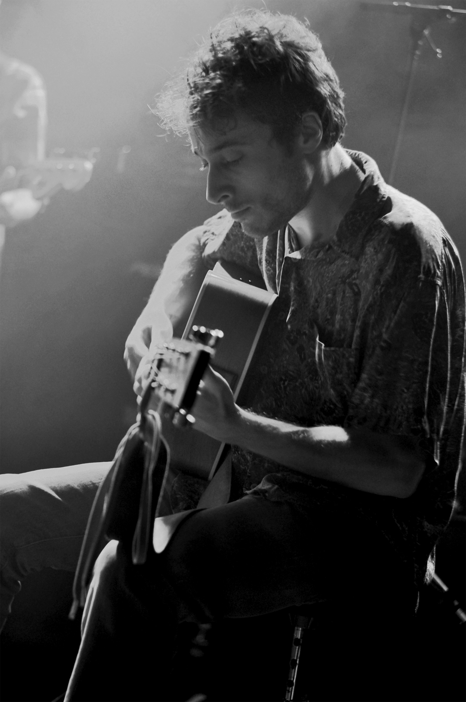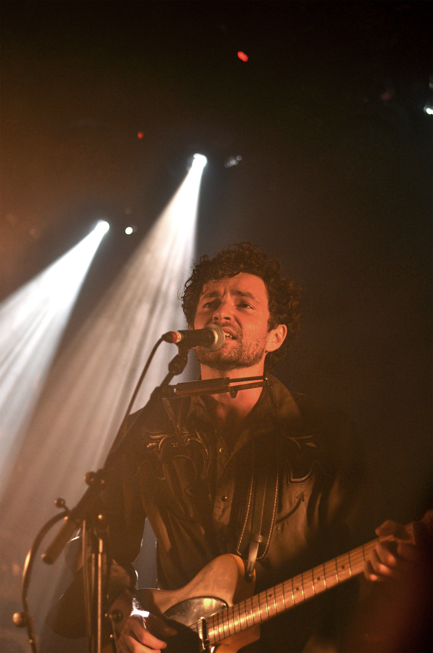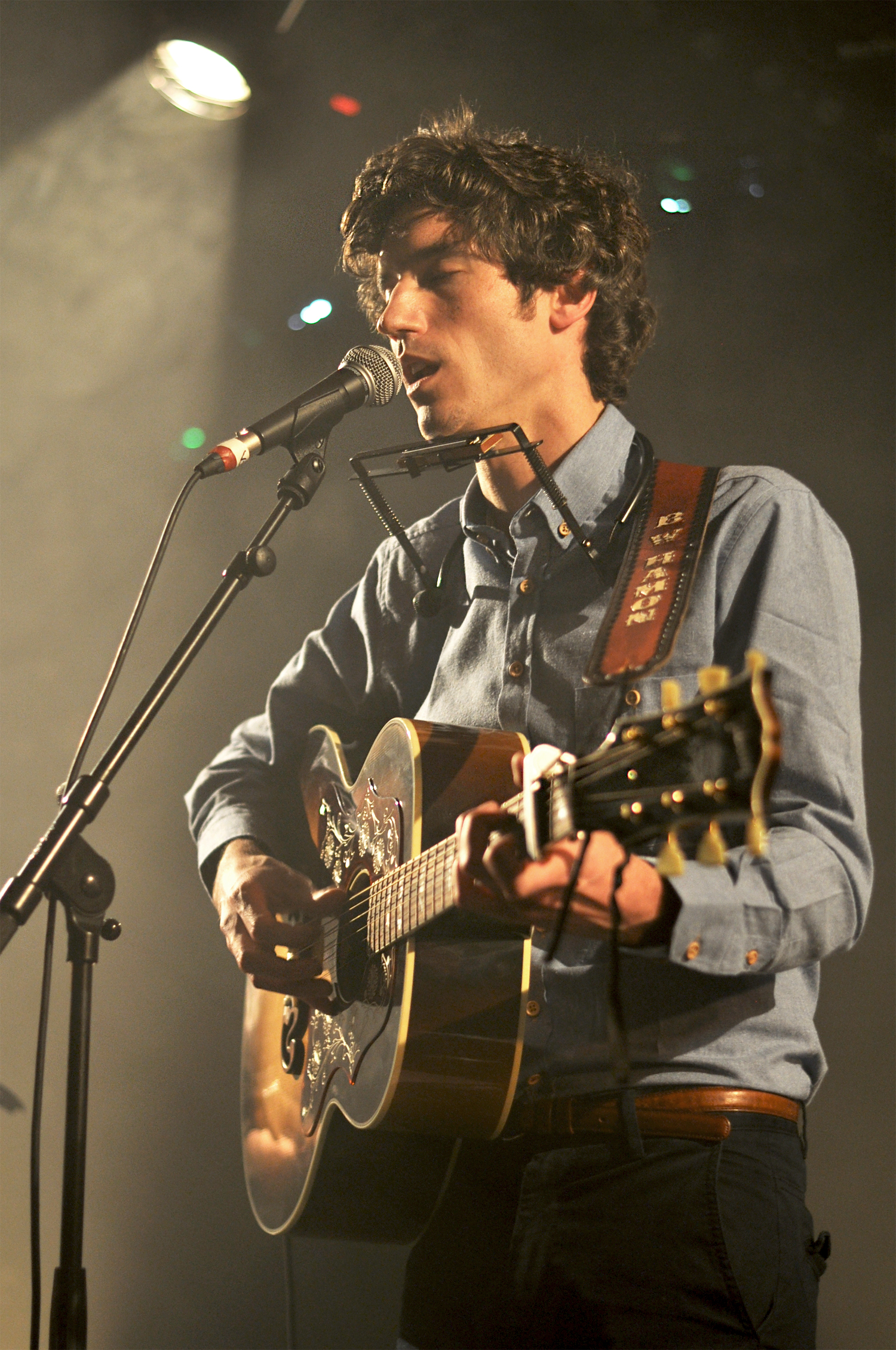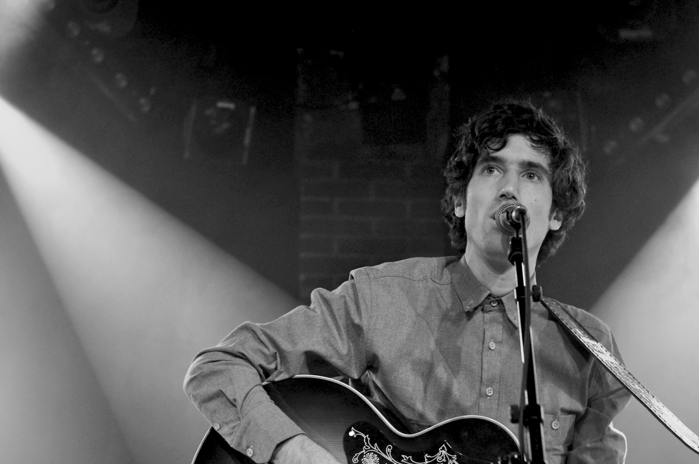 Lorsque l’on entre dans la Maroquinerie c’est Ross Voorhees qui s’installe sur la scène. Le public n’est pas encore très nombreux mais le jeune homme s’adresse avec douceur en français et parvient vite à réchauffer la salle. Venu d’Alaska, Ross Voorhees est accompagné ce soir d’un violoniste discret et talentueux. Les deux garçons jouent un folk aux accents countrisants. Avant de laisser la place au maître de cérémonie, Ross nous chante un chant de Noël écrit dans le Montana. Il nous ouvre les portes des plaines gelées des États-Unis, et on ne se lasse pas du voyage.