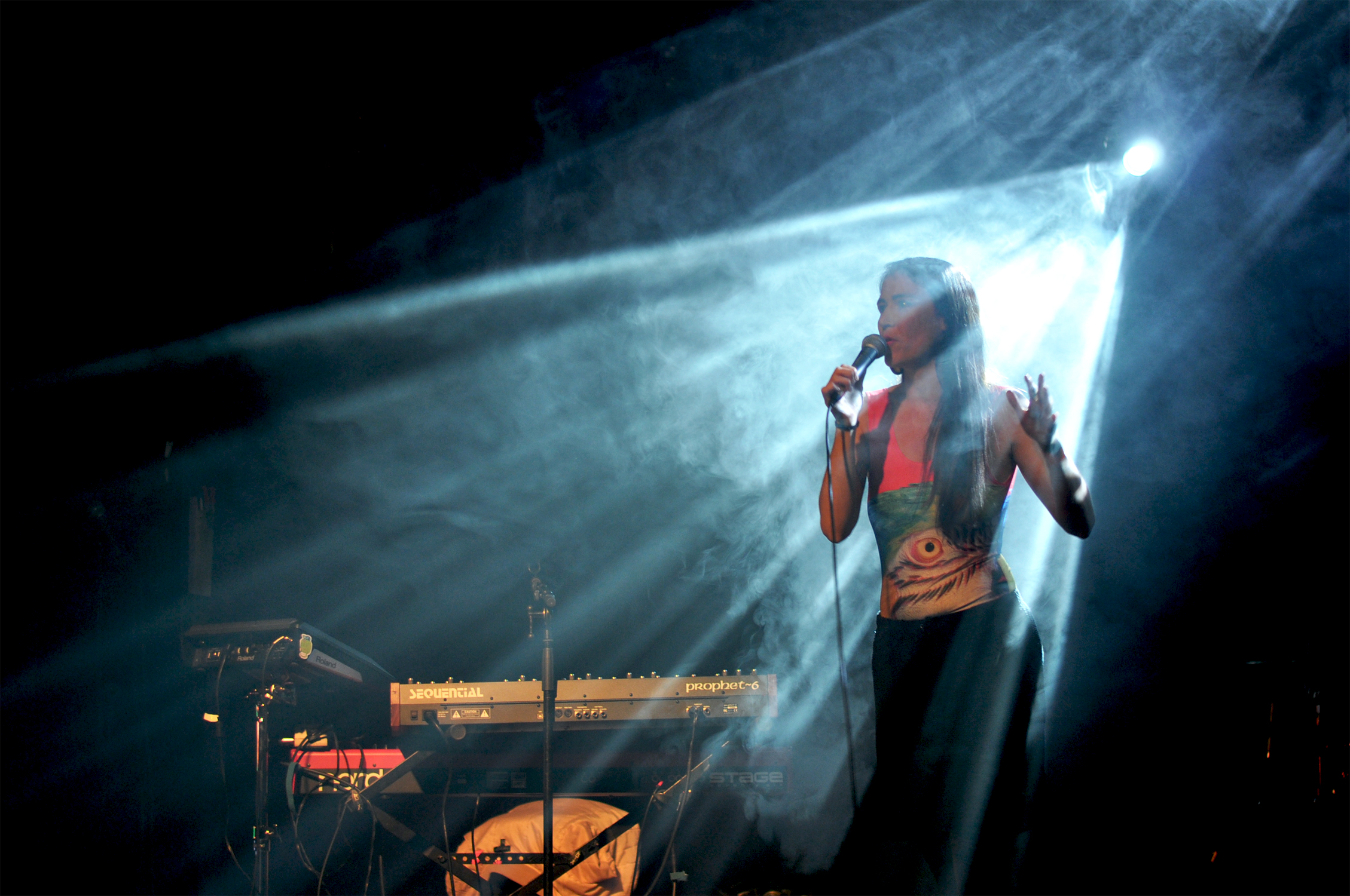 Il nous faut quelques minutes avant de reconnaître, cachée derrière ce nom, l’une des divas des 3somesisters. Des rythmiques tribales, de l’électro planant et des textes balançant entre espagnol et anglais, La Chica intrigue puis captive rapidement les oreilles autant que les yeux. Malgré un public encore peu présent en cette heure presque matinale (il est 19h30), La Chica fait le show. Elle promène son regard passionné sur le public, gagne les yeux et les oreilles de l’assemblée par sa voix douce et chaude, et s’attaque avec aisance à l’a cappella et aux envolées lyriques. On en redemande !