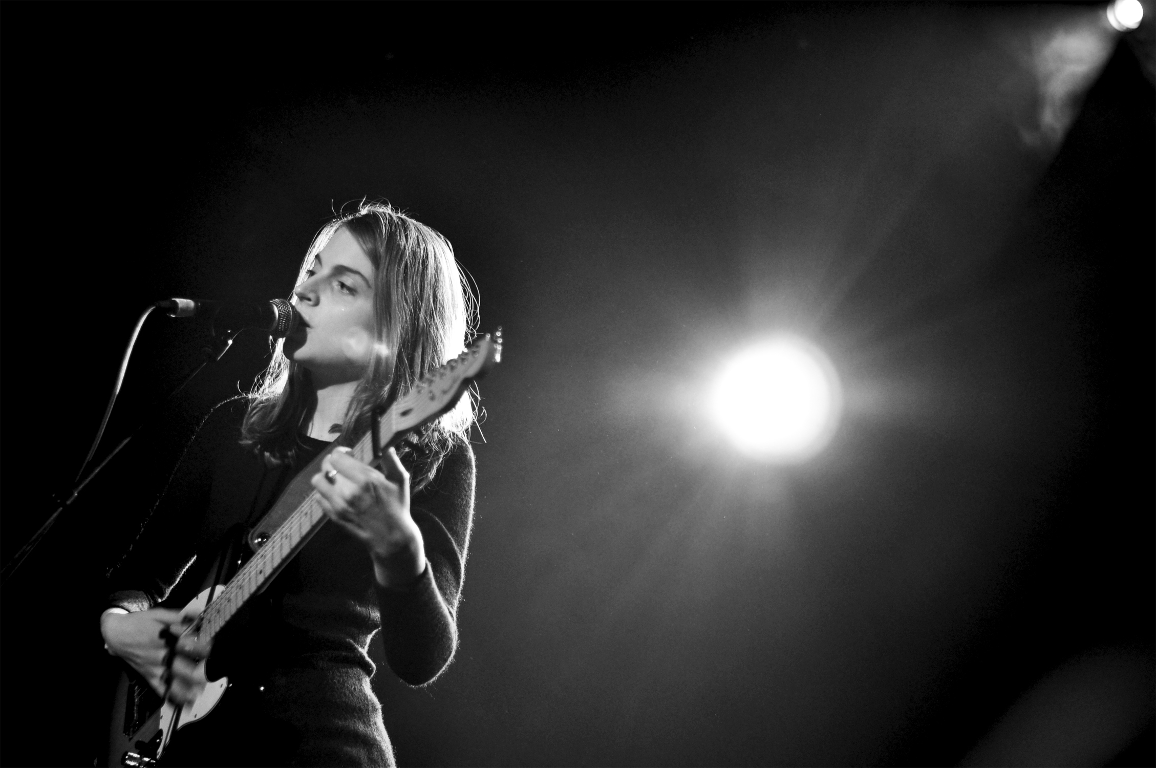 Sous une lumière en clair-obscur, seule sur scène avec sa guitare, le maître-mot de Pauline Drand est “sobriété”. La guitare aux rythmiques et arpèges discrets, n’est qu’un socle sur lequel la jeune chanteuse pose ses mots. Un air nonchalant accompagne une voix chaude et profonde. Il y a un côté désuet dans sa façon de prononcer les mots, d’accompagner les fins de phrases, ou même parfois de faire rouler les “r”. La musique est douce et l’ambiance paisible.