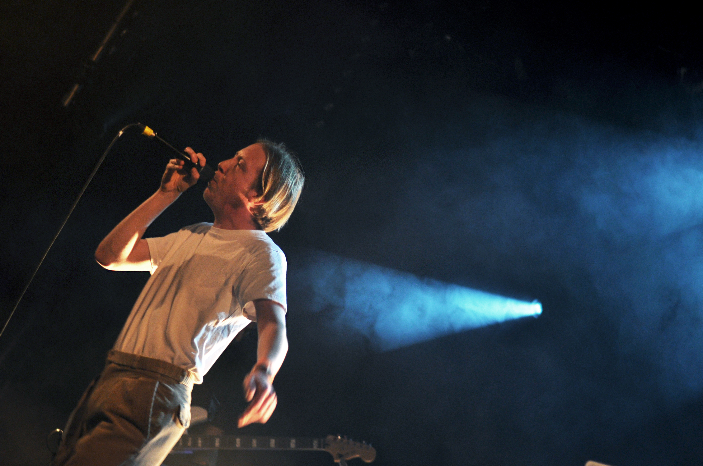 C’est sur un sample de Charles Trenet, “La mer”, que commence le set de Dantone. Sa voix, incroyable, couvre rapidement l’élégante bande son électro. Car oui, c’est la voix de Dantone qui accapare toute l’attention. Grave et sensuelle, poétique et légèrement rétro, on retrouve les accents d’un Gainsbourg dans sa belle jeunesse. Le jeune homme ne parle pas beaucoup entre ses titres, il ne donne pas son nom, mais peu importe, ce n’est que cette voix fascinante quand il chante que nous retiendrons. Il prend parfois une guitare électrique pour s’accompagner avec douceur. Il nous chuchote des mélodies romantiques et gracieuses. C’est délicat, c’est émouvant, Dantone est un vrai rayon de soleil mélancolique. À suivre !