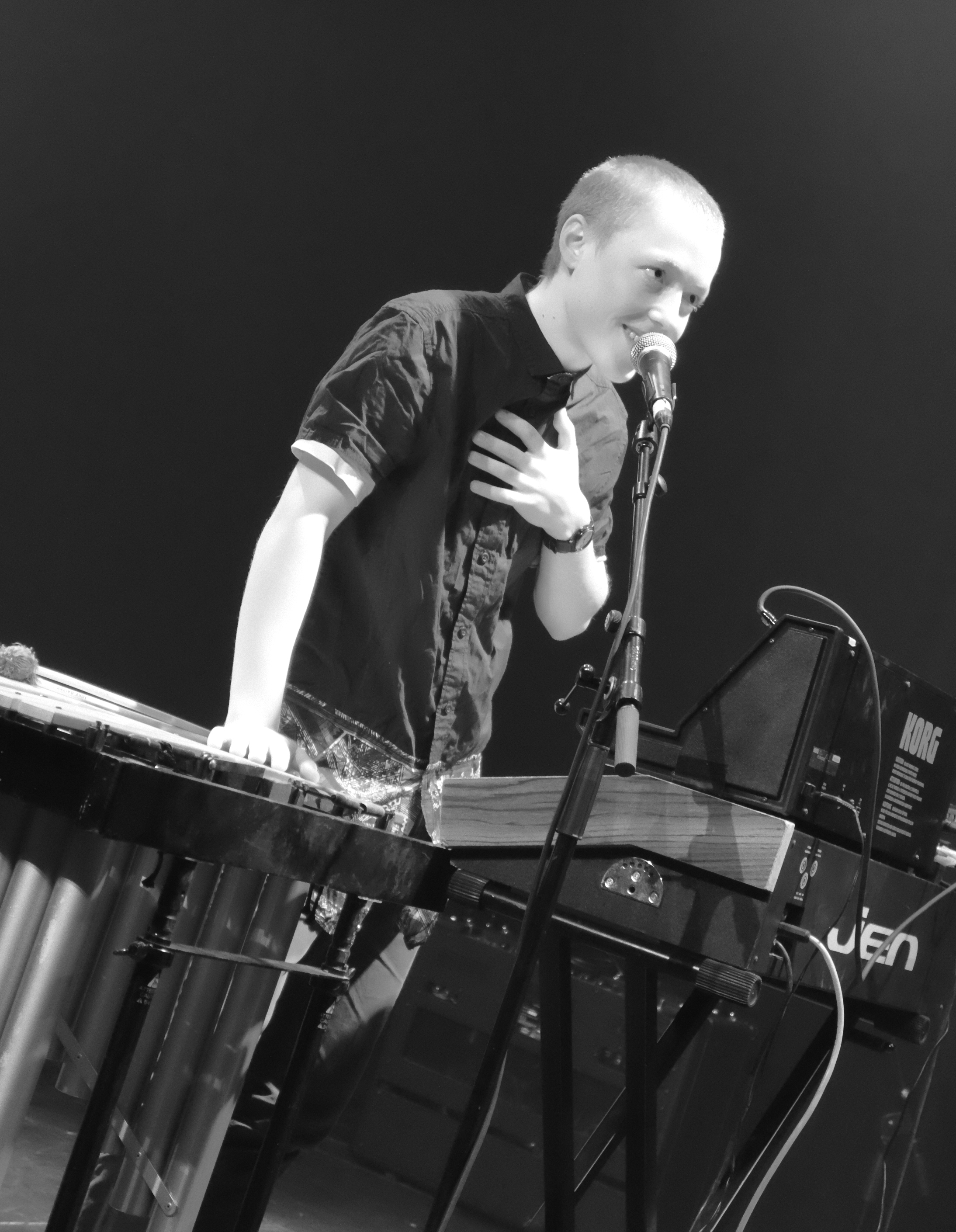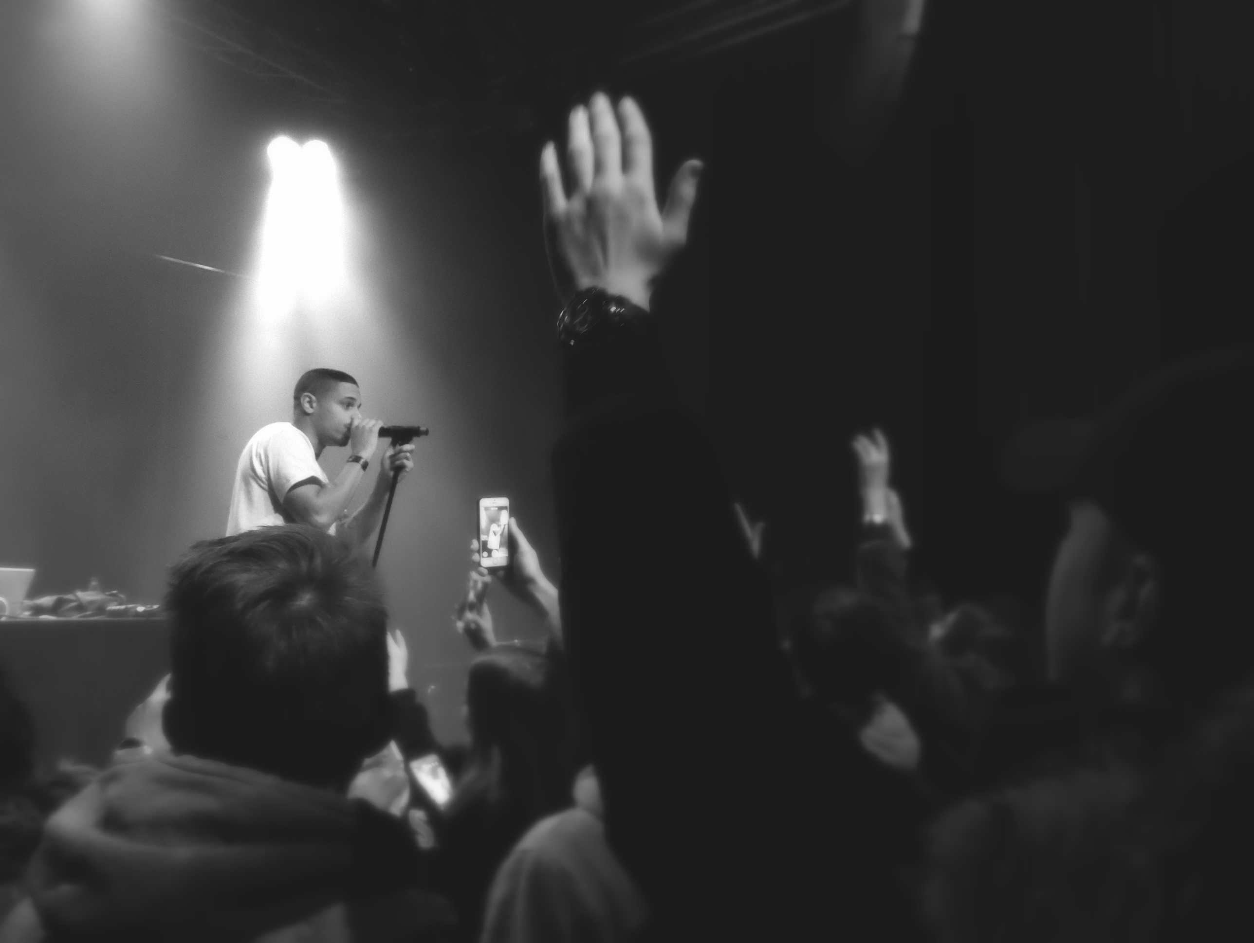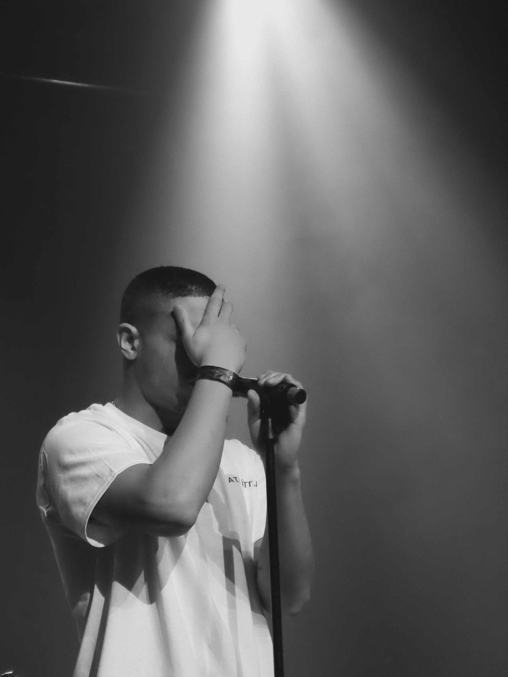 Début de soirée avec du hip-hop. La salle est remplie de jeunes à bonnets la main levée et les paroles aux lèvres. Ash Kidd, a.k.a Claude Bourgeois et son DJ ont donc déjà le public à leur botte dès le lancement de leur set. On ne sait pas trop, d’ailleurs, si on doit parler hip-hop, r’n’b ou rap, tant, finalement, les genres se mélangent. Claude Bourgeois arpente la scène, micro à la main, l’air frondeur, mais parle d’amour, de rêves et de mélancolie, et finit sur un “J’ai demandé à la lune” complètement revisité. Le public est conquis, nous aussi.