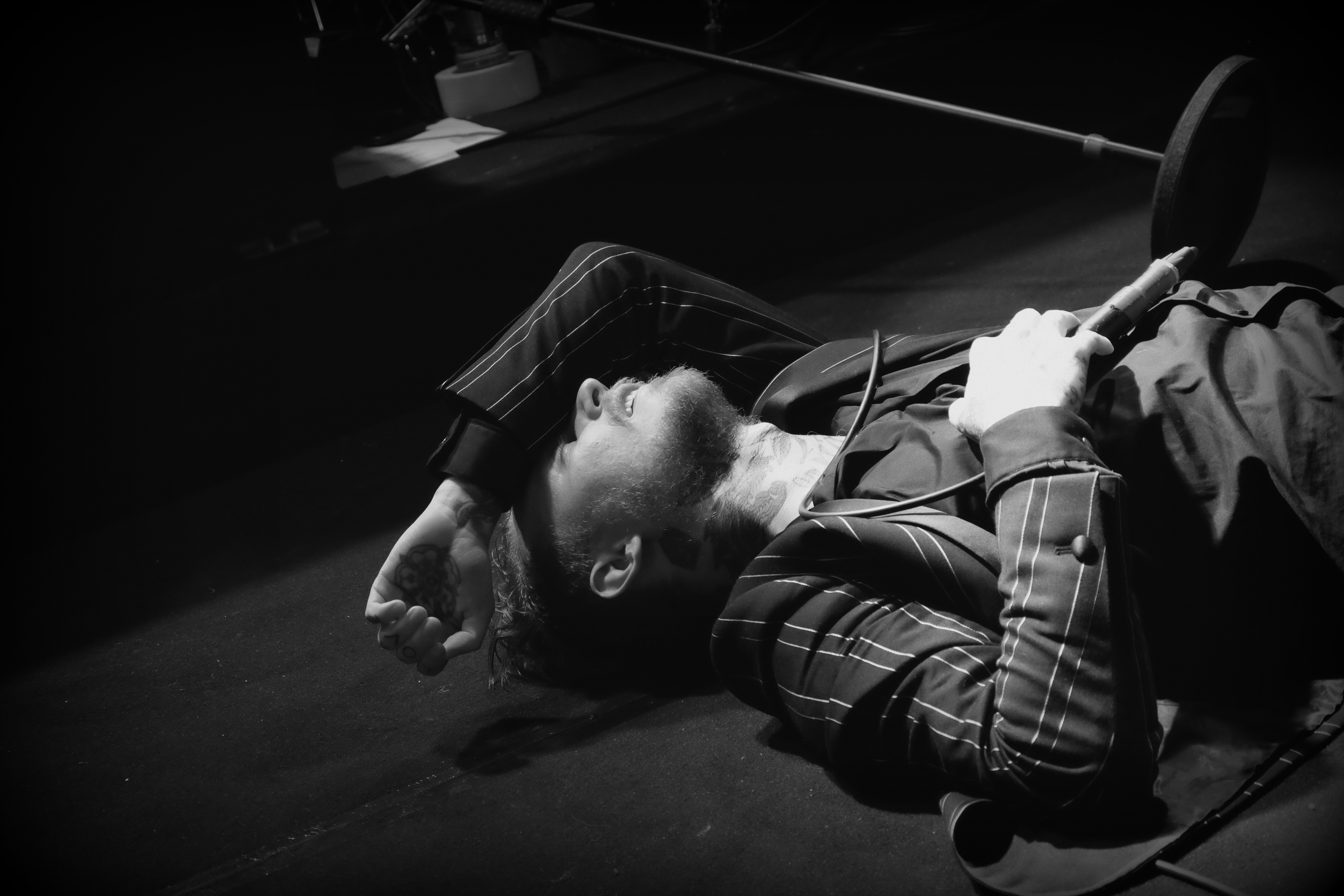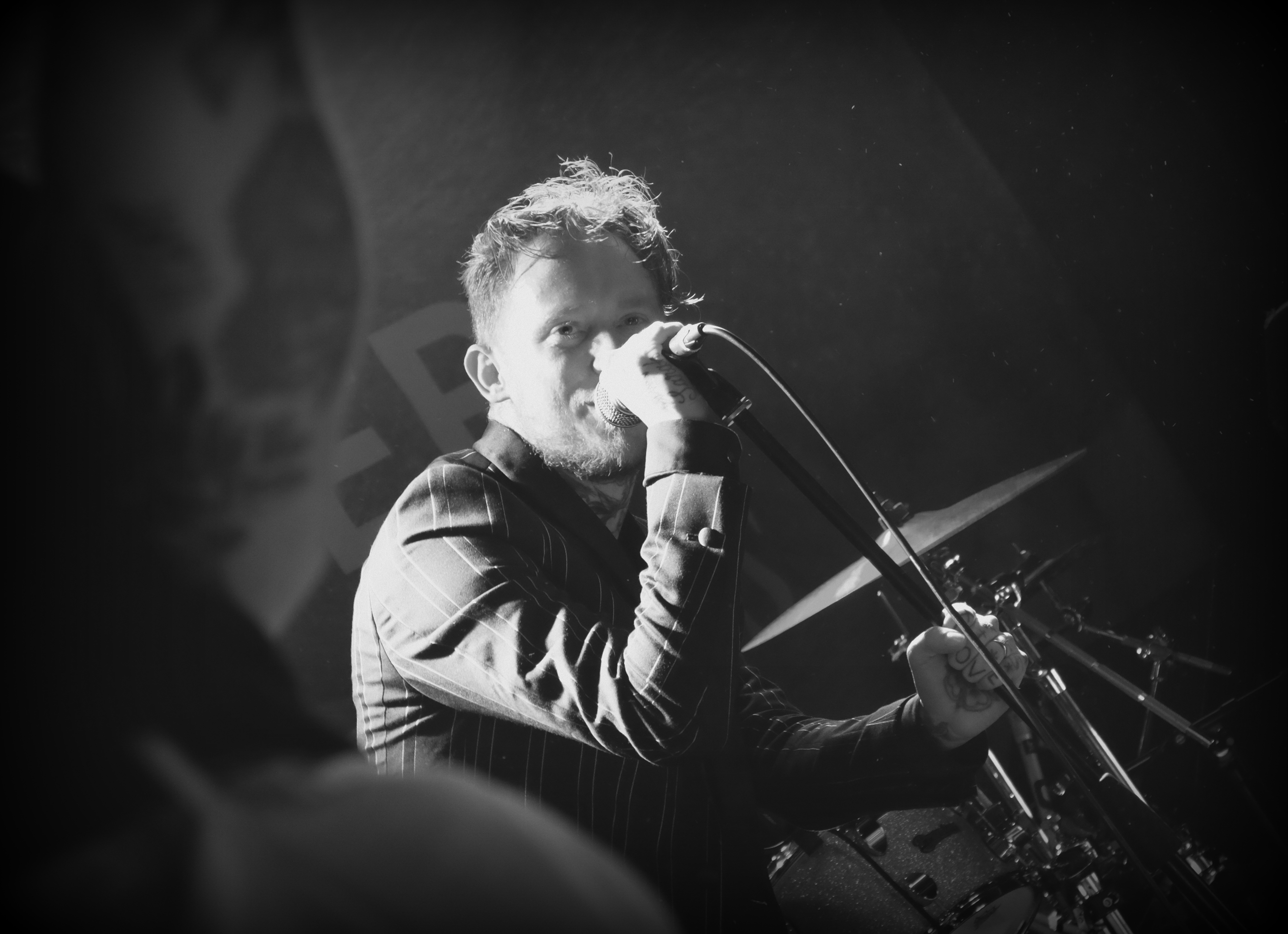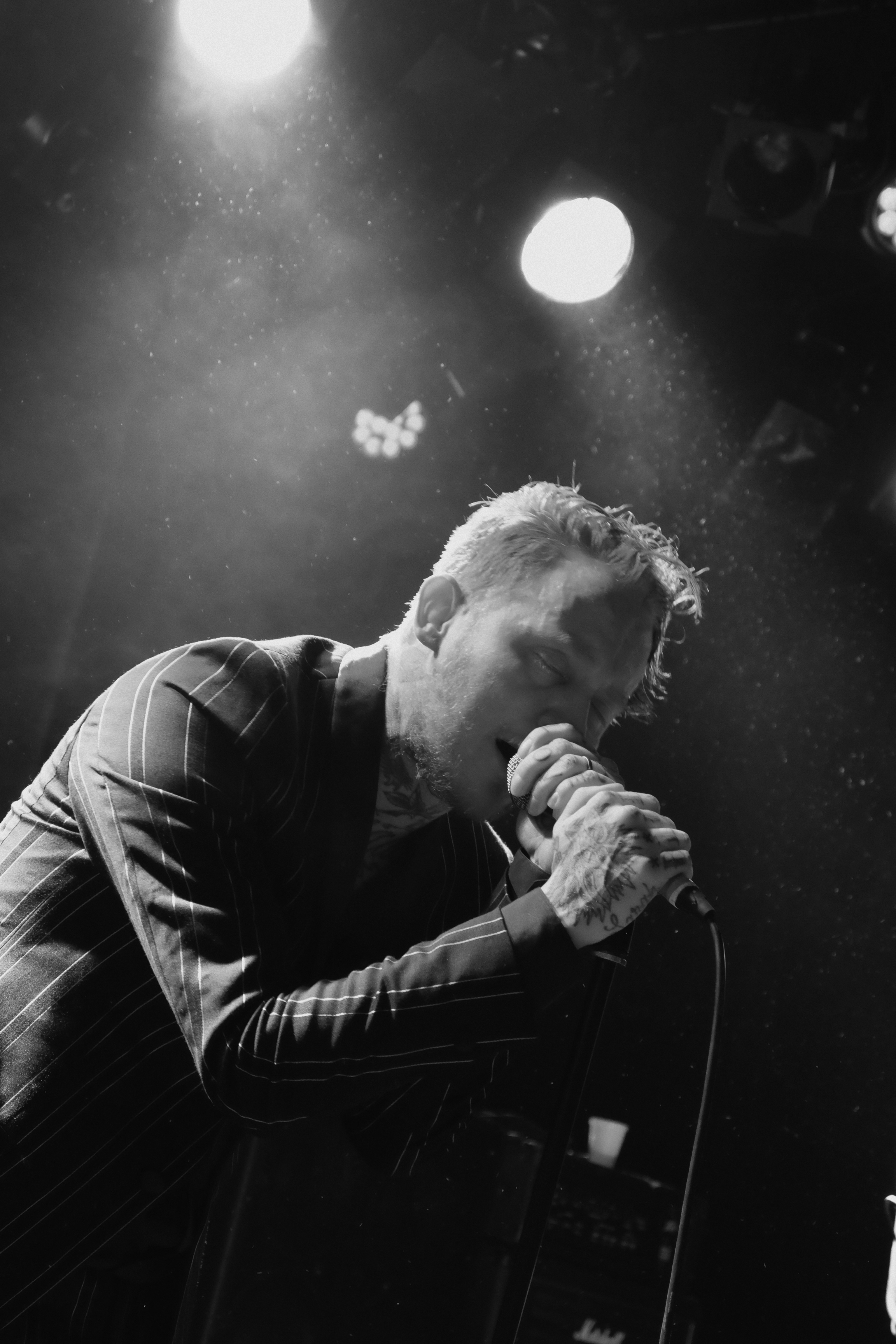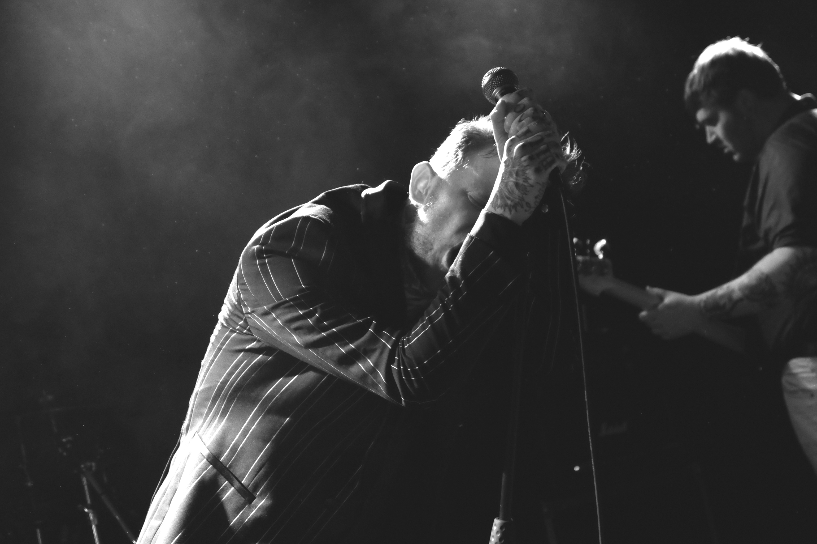 Dès les premières notes de guitare, on comprend que le concert va être un sérieux mélange de styles. Frank Carter se présente en costume rayé, parfait dandy crooner au milieu des Rattlesnakes, tous en pantalon blanc et chemise noire. Mais ses tatouages, sur les mains, le cou, le visage, l’intérieur de la paume, trahissent l’artiste. Il éructe, empoigne son micro, et transforme ce concert en pur moment de classe punk, aussi antinomique soit-il, en l’espace de quelques secondes.