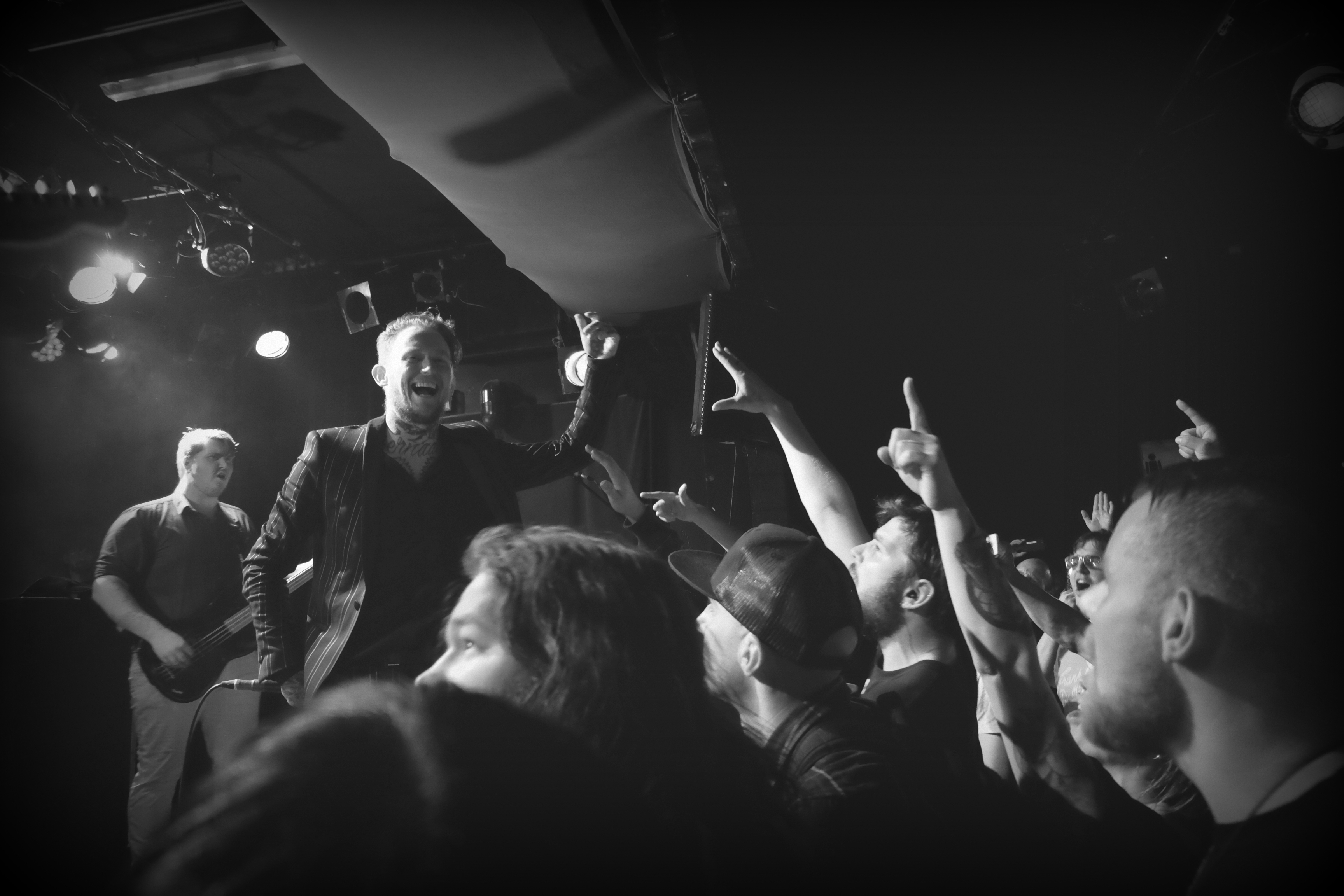 Mais le public attend autre chose. Les gens s’approchent de la scène. Sans verser dans le cliché, on voit pas mal de tatouages, de barbes, et de hoodies noirs dans le coin. Les discussions tournent autour de la joie de voir ce groupe dans cette salle parfaite qu’est le club. Une scène qui nous permet de nous coller au lieu de l’action, d’être à portée de main du groupe, qui débarque sur Sam Cooke et “A Change Is Gonna Come”. Une introduction plutôt étonnante et tout en blues, loin donc de l’image de punk hardcore assez déjantée qui suivait Frank Carter à l’époque de Gallows, sa formation précédente.
