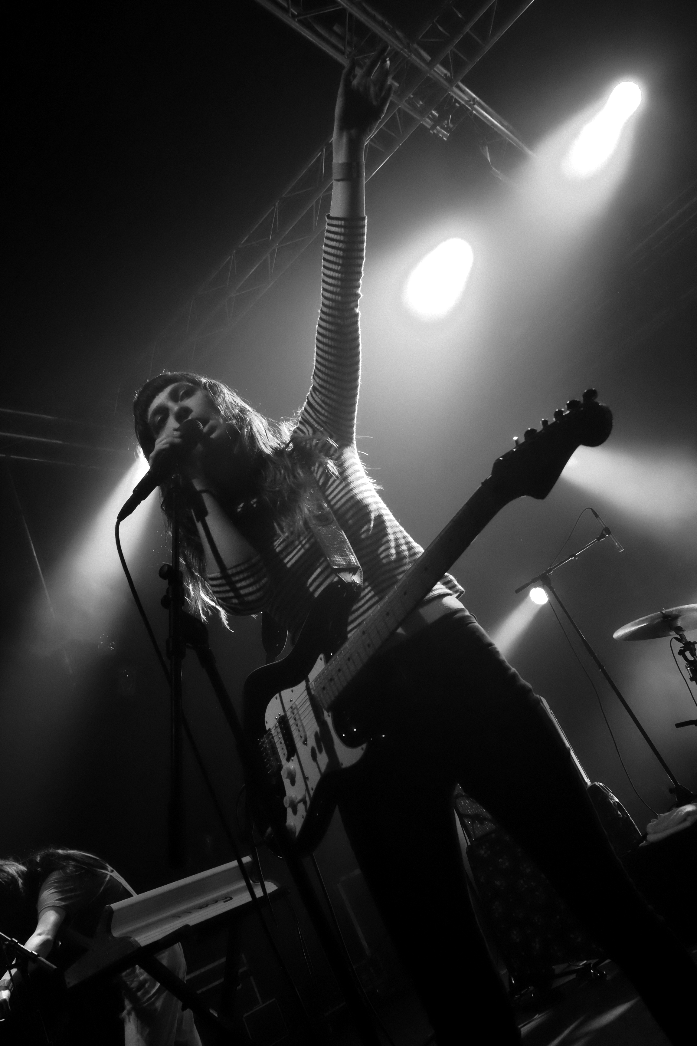 “Vous allez en prendre plein la gueule”, telle était la promesse de Shame concernant leur futur 1er album. C’était aussi, semble-t-il, le mot d’ordre pour ce concert. 19 ans et demi d’âge moyen, une volonté farouche de prendre la scène, une énergie illimitée balancée au public, et un rock profondément punk et British. La recette déjà rodée par les Clash résonne encore fort dans nos oreilles au réveil. C’est que cescinq garçons vont loin, bien plus loin que leurs aînés. Toute leur hargne est éructée dans le micro par Charlie Steen pendant que l’autre Charlie, celui qui officie derrière les fûts, guide, du haut de son estrade, le reste de ses camarades dans un rythme effréné.