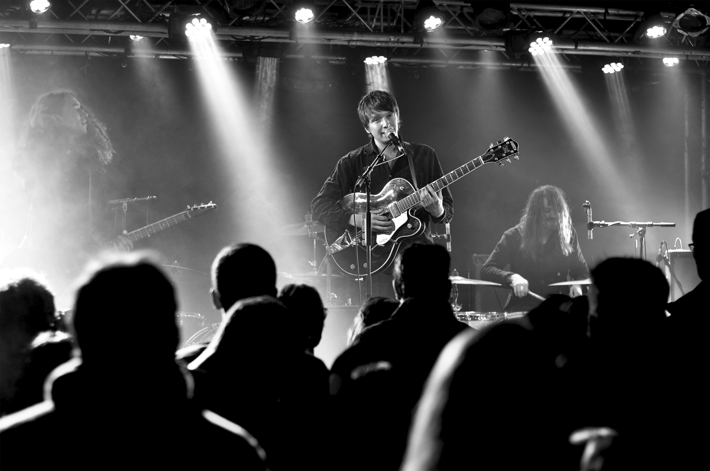 Une chose est certaine : tous les regards convergent vers Léo. Difficile de détourner le regard de ce musicien qui se tortille, se déhanche et vit chaque note qu’il fait vibrer sur sa guitare, ce chanteur qui sourit malicieusement et ne cesse de soutenir les regards fixés sur lui.