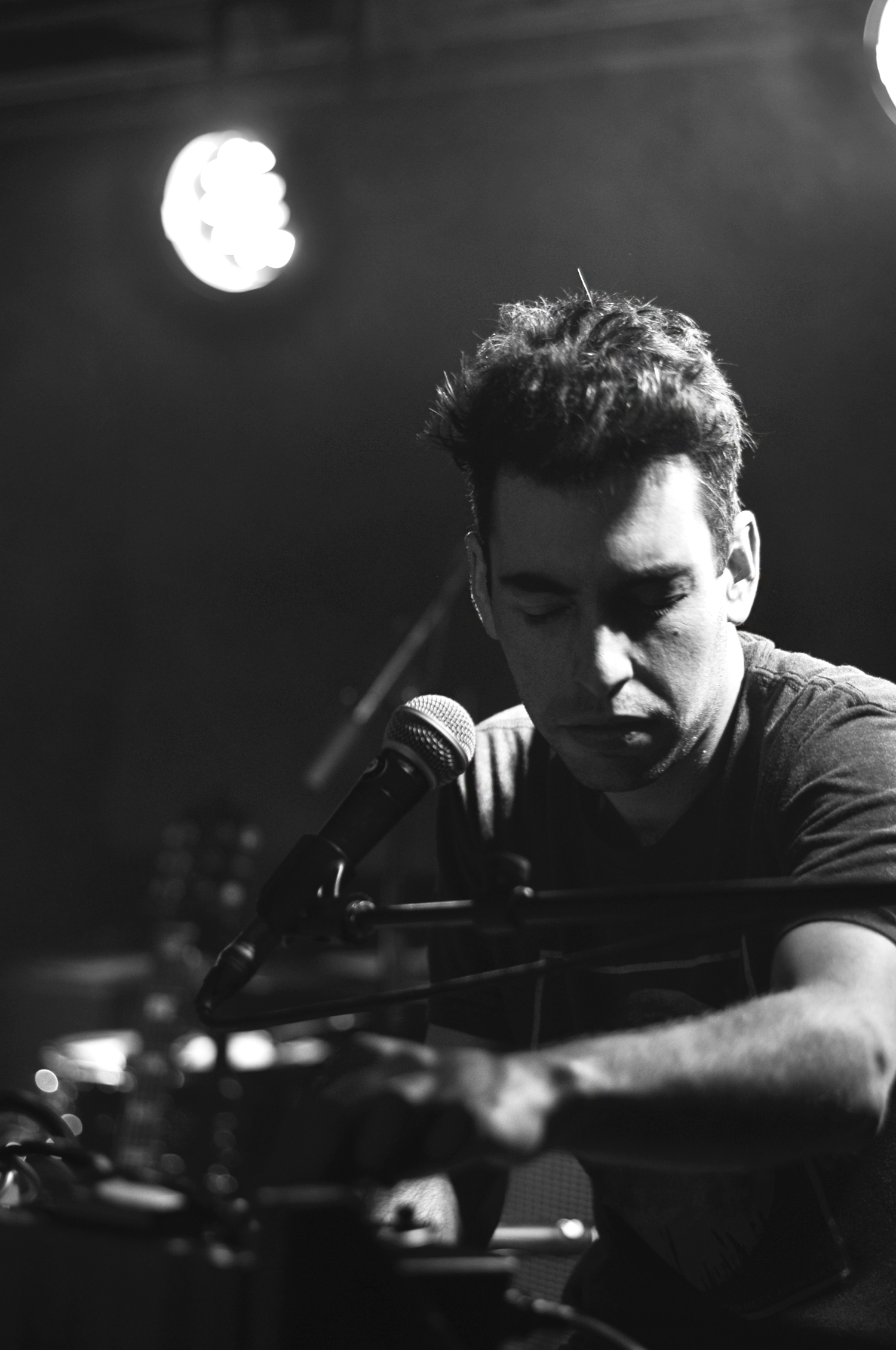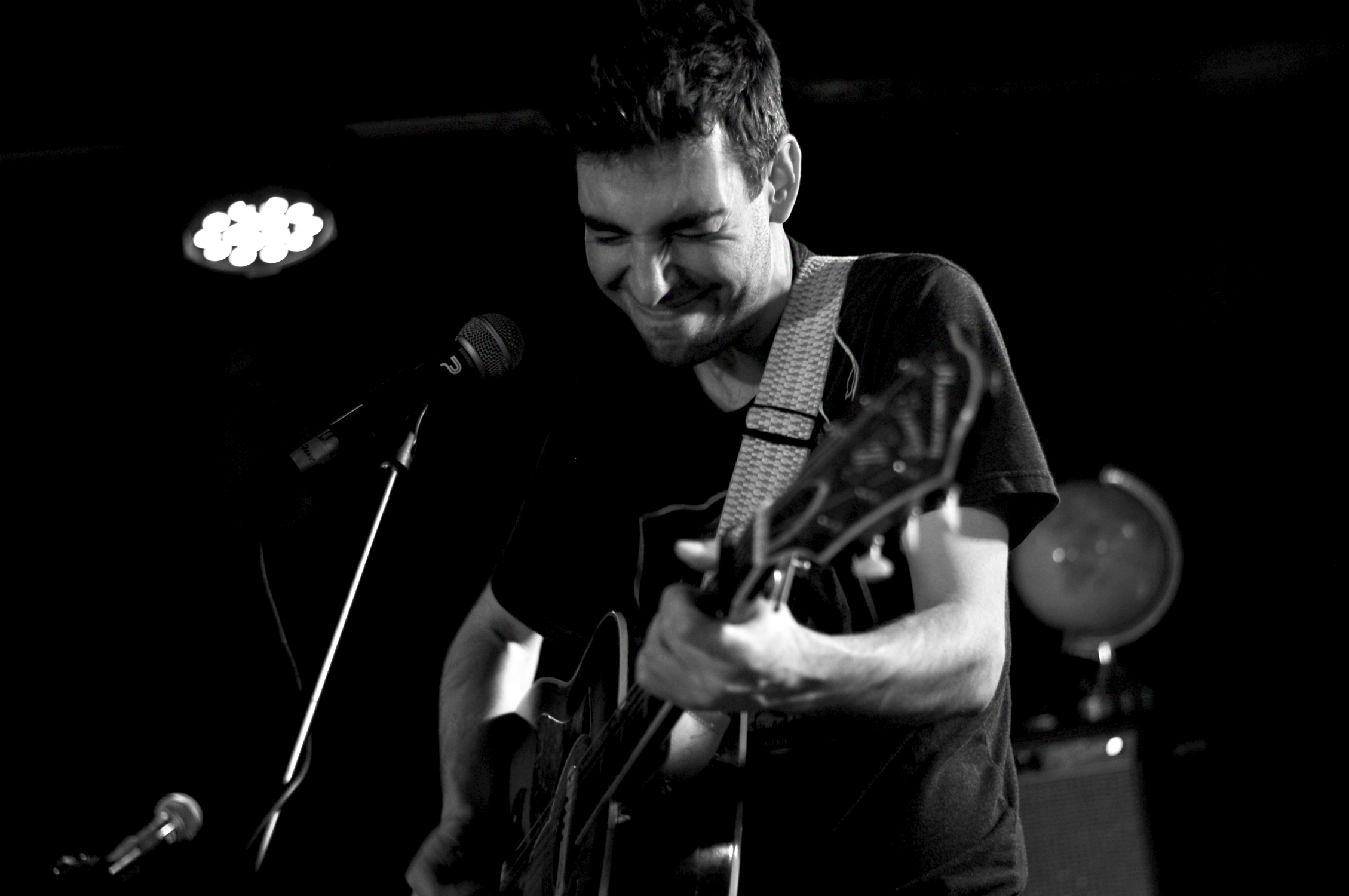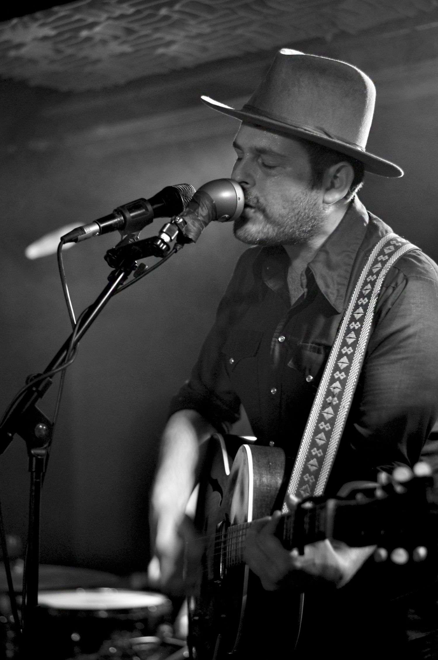 Comme d’habitude il faisait une chaleur écrasante dans Pop-Up qui affichait complet depuis un certain temps. Gregory Alan Isakov débarque d’abord seul sur scène, en guitare-voix, avant d’être rejoint par ses quatre musiciens, tout sourire. L’Américain (né en Afrique du Sud), chapeau vissé sur le crâne, est un pince-sans-rire captivant. Entre chaque magnifique chanson, “Amsterdam”, “Big Black Car”, “This Empty Nothern Hemisphere”, il entreprend de nous parler d’une interview qu’il a faite quelques heures avant. Visiblement, la journaliste ne connait pas sa musique et à la réjouissante question “que faites-vous comme musique ?”, Gregory répond “des chansons tristes”. Au public qui rit, il ajoute “des chansons tristes sur l’espace”. Quelques minutes après cette intervention, le groupe se lance dans une version de “The Universe” dans le noir complet, seule la lampe installée dans la grosse caisse éclaire les musiciens, telle une lune. Magique !