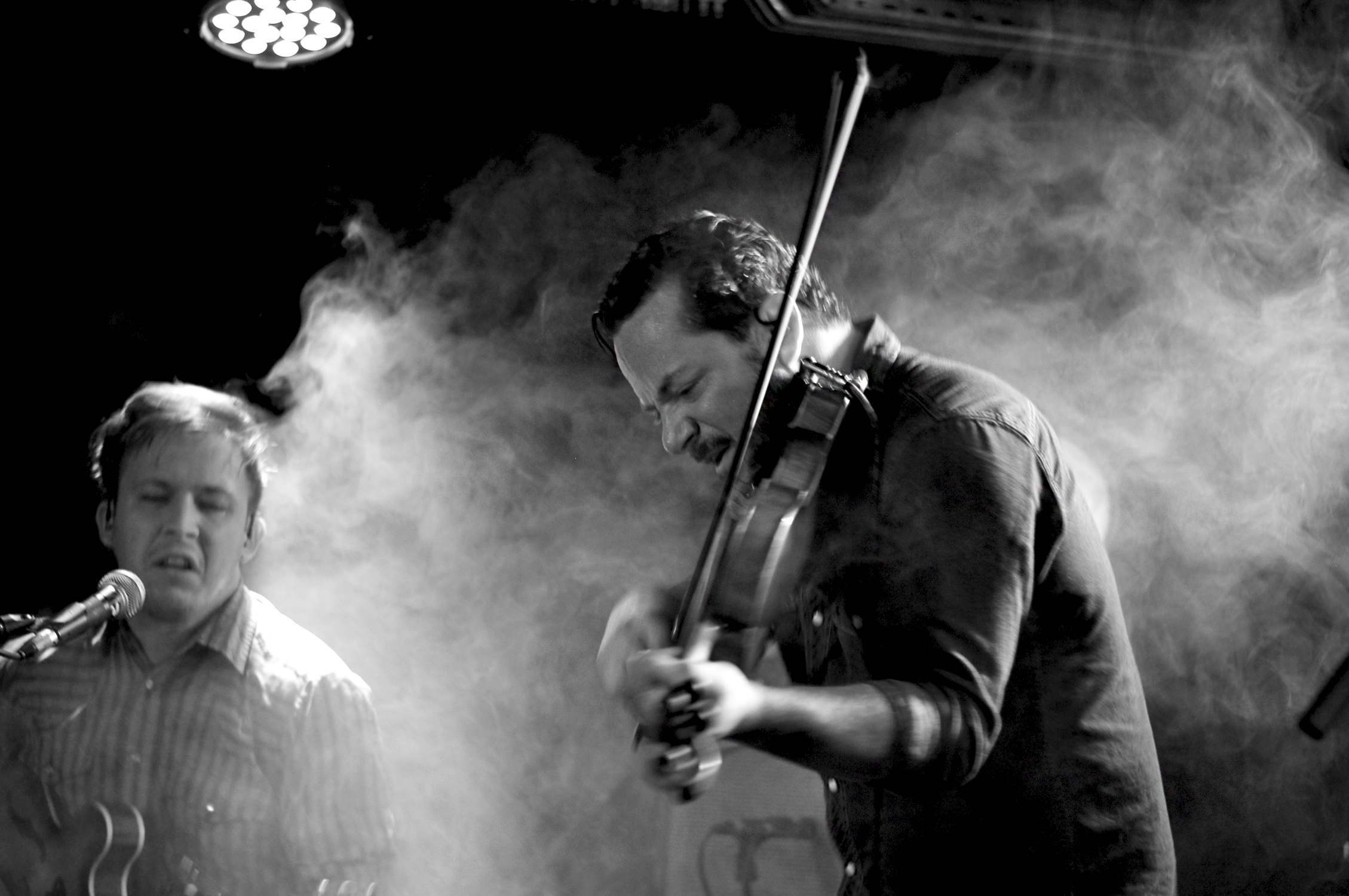 On alterne entre des moments acoustiques à tendance folk-bluegrass avec guitare, harmonica, banjo, violon et contrebasse et folk-rock avec guitare électrique et basse. Le set de plus d’une heure et demie est intense. Il défile et la magie continue à opérer.