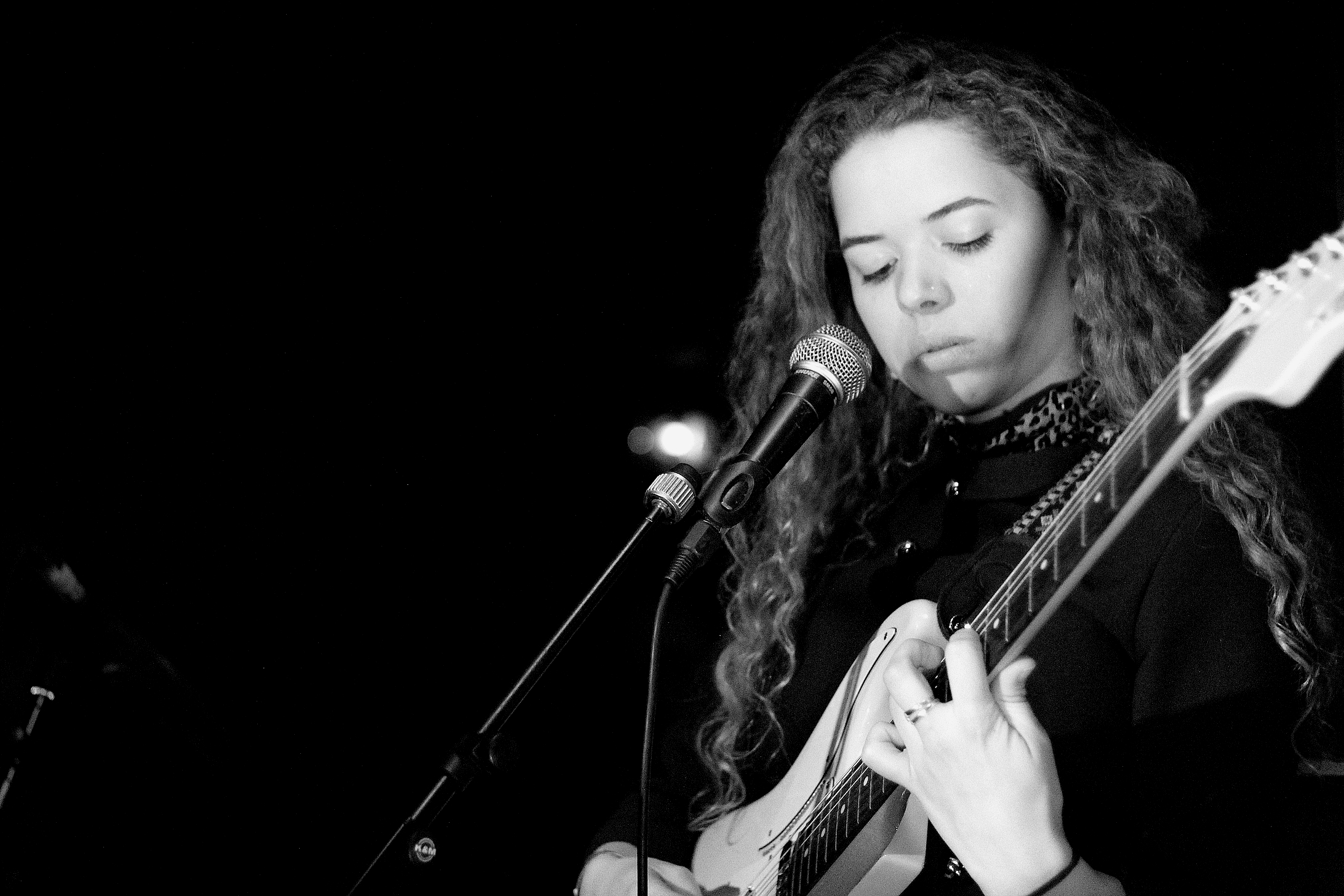 21 ans et une voix grave et profonde. Un 1er EP très prometteur et déjà une pléthore de superlatifs sur la toile pour qualifier cette jeune artiste londonienne, aux origines turques, barbadiennes et irlandaises. Sur la scène de Madame Arthur, elle est accompagnée d’un guitariste et d’une saxophoniste. Autant je comprends les touches de saxophone qui viennent rythmer les titres folk ou meubler les breaks, autant la deuxième guitare électrique me paraît de trop. On ne l’entend pas spécialement, et souvent elle vient doubler la première guitare jouée par Nilüfer. Pas très utile.On regrette ce son creux : avec deux musiciens il aurait sans doute été possible de proposer une formule live plus consistante.
