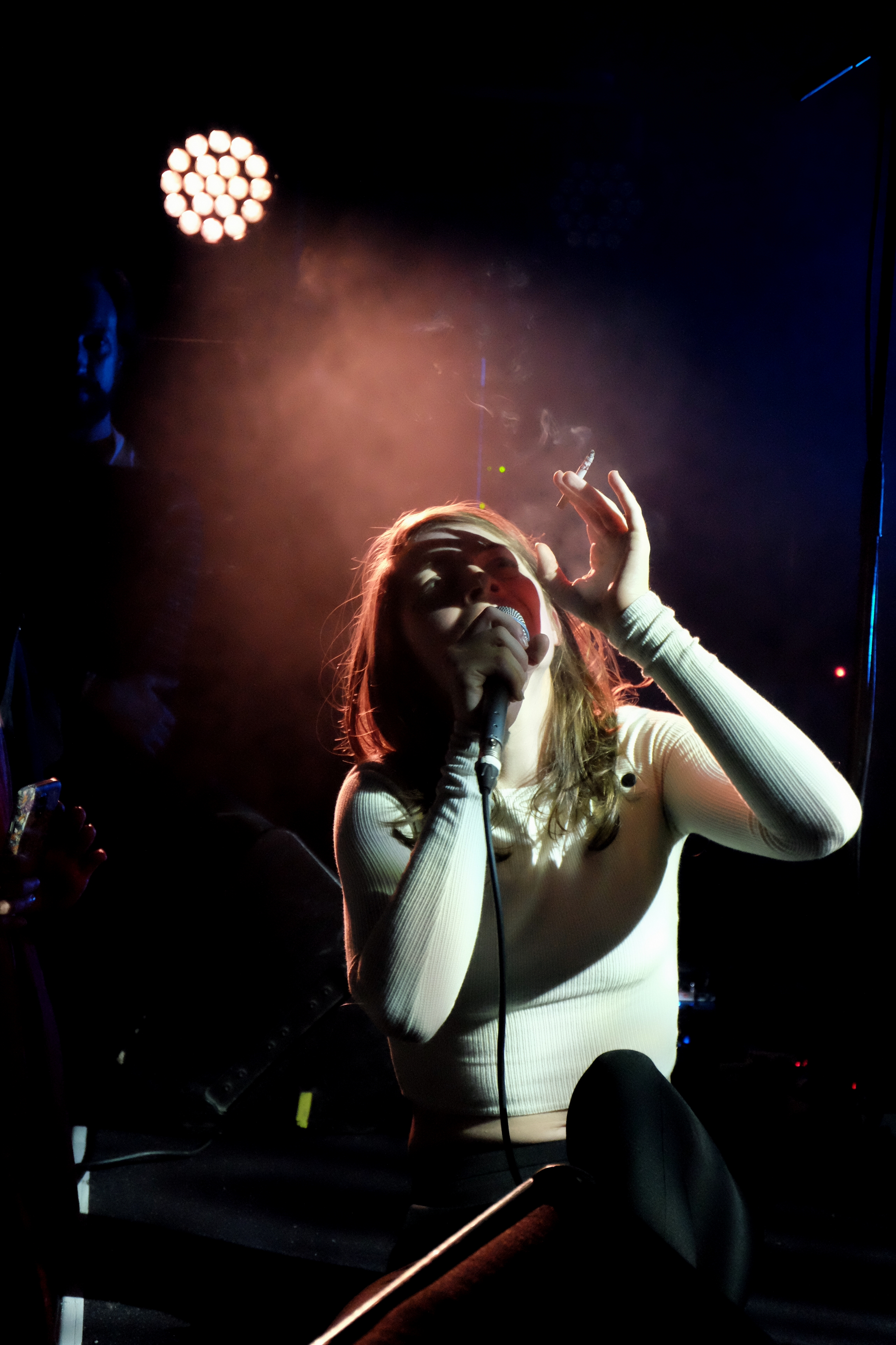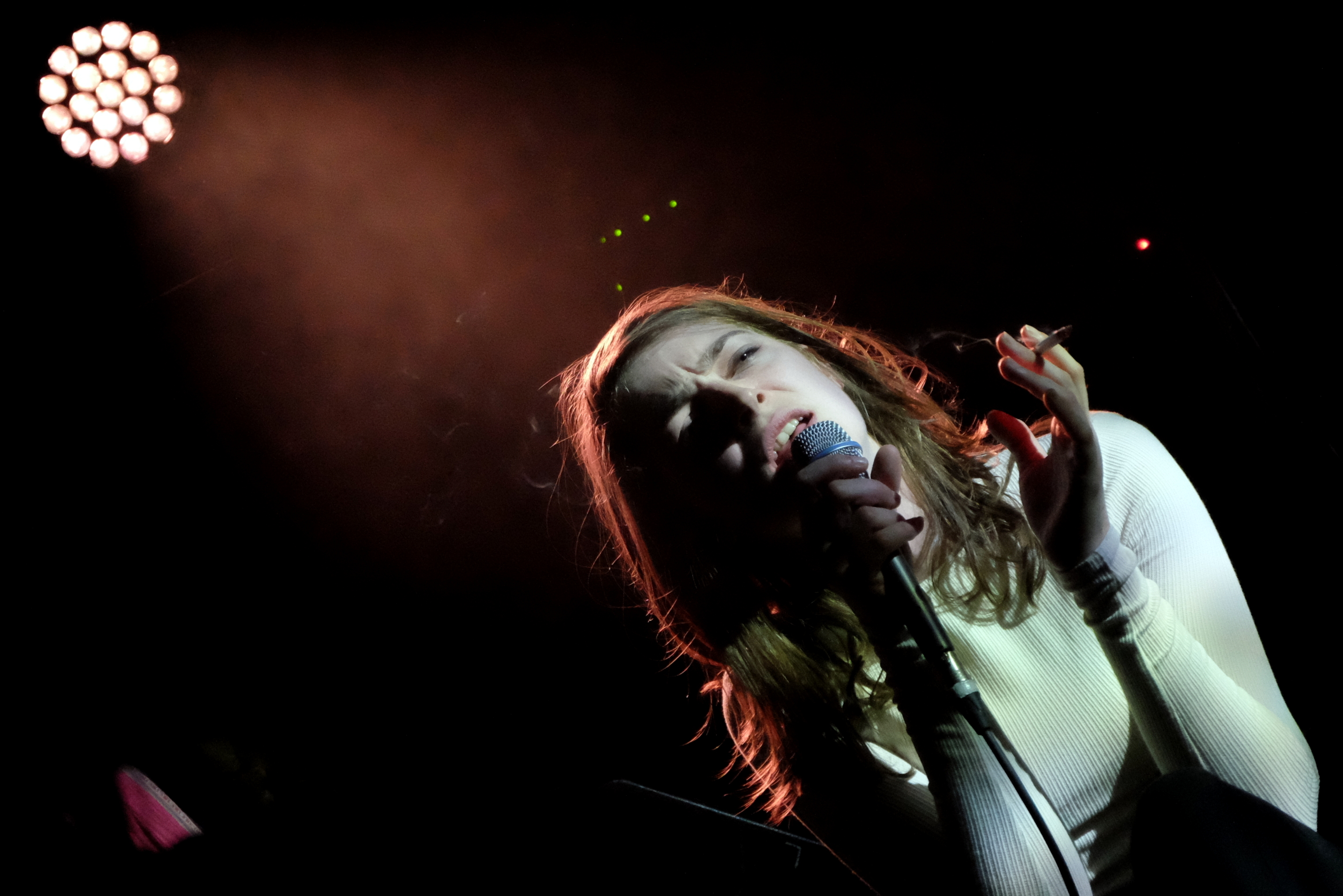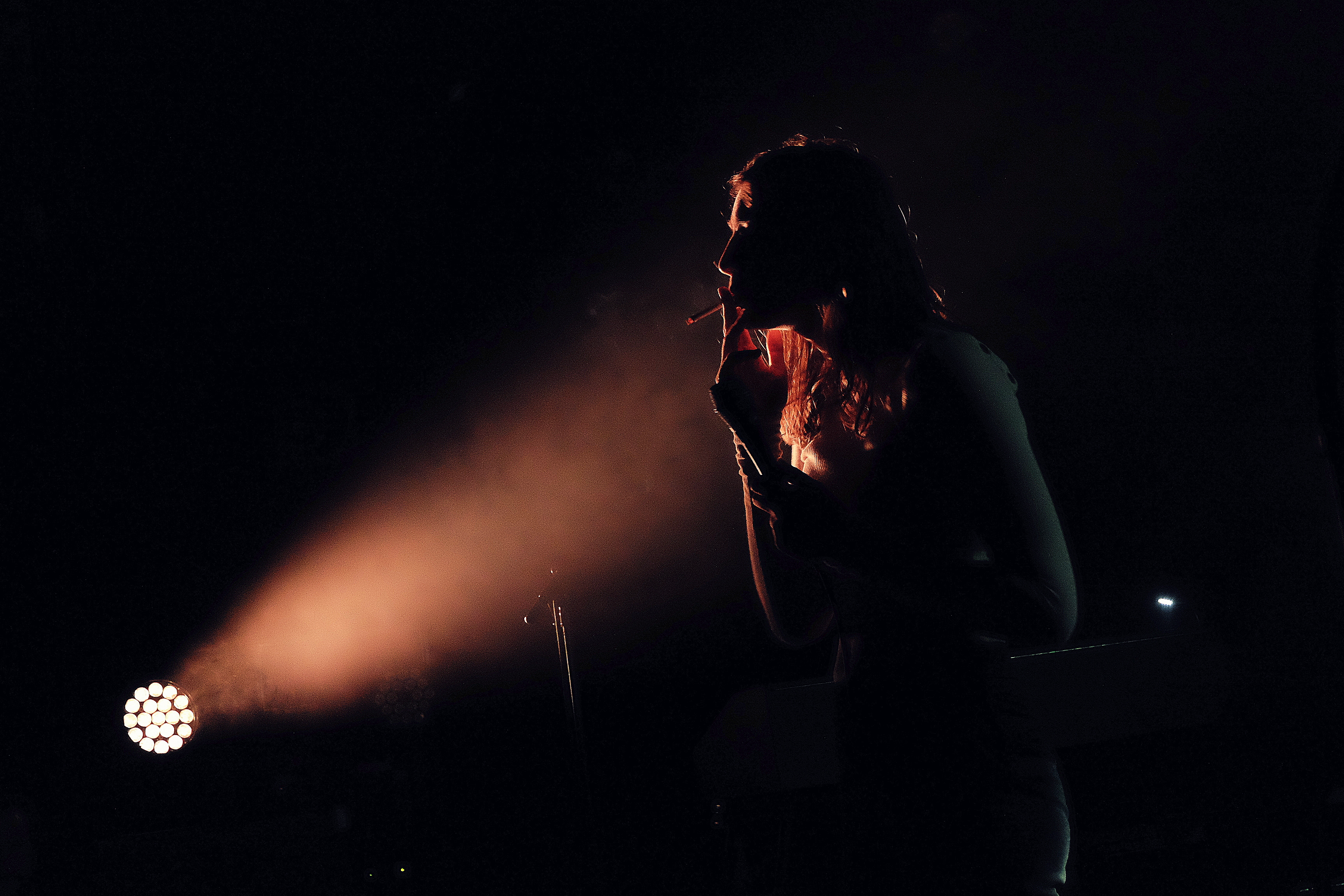 Complices, les trois musiciens qui l’accompagnent guettent nos réactions et participent à la mise en place d’une scénographie ultra-efficace. Le jeu de scène sur “Boîte en papier”, où, clope allumée, Fishbach finit couchée à l’avant de scène, a le même effet envoûtant qu’à La Route du Rock. Les lumières sur “Feu” intensifient notre incendie intérieur. Mais la plus belle réussite est toujours “Mortel”. Impossible de ne pas suivre des yeux ce faisceau lumineux avec lequel Flora joue, l’évitant pour mieux finir comme transpercée par lui. Fascinant.
