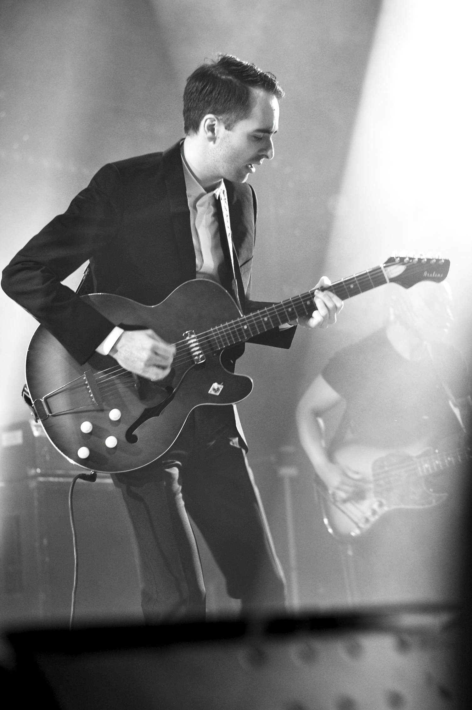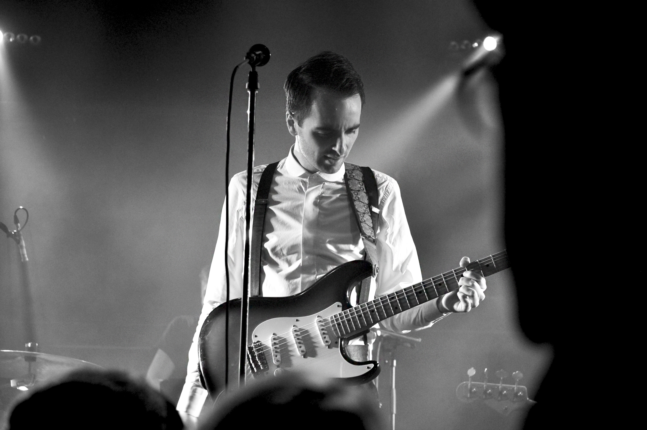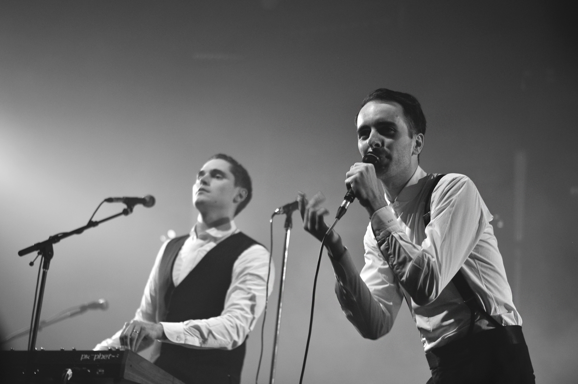 Lorsque Her fait enfin son apparition sur la grande scène de la Gaîté Lyrique, le public est déjà survolté. Habillé de ses élégants costumes noirs, le groupe impose assurance et prestance. Les musiciens ne partagent pas beaucoup de mots, mais l’émotion est lisible sur les visages et dans les regards que les garçons s’échangent. Le set s’enchaîne alternant les titres de leurs deux Tapes. Le groove de la basse fait se chalouper les hanches du public. Les voix sensuelles de Victor et Simon charment et séduisent tous les cœurs. Les nappes du synthé créent une ambiance féerique. Les riffs des guitares et les rythmes de la batterie électrisent la salle entière.