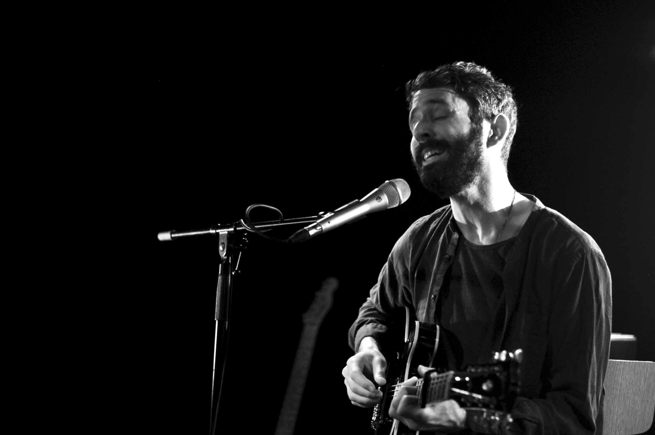 Peter Silberman s’assoit, guitare électrique sur les genoux, faible halo de lumière autour de lui. Il invite le public à ne pas hésiter à s’asseoir lui aussi, s’il en ressent l’envie. Il prévient que ce qu’il va jouer n’est pas fait pour nous tenir éveillé.
