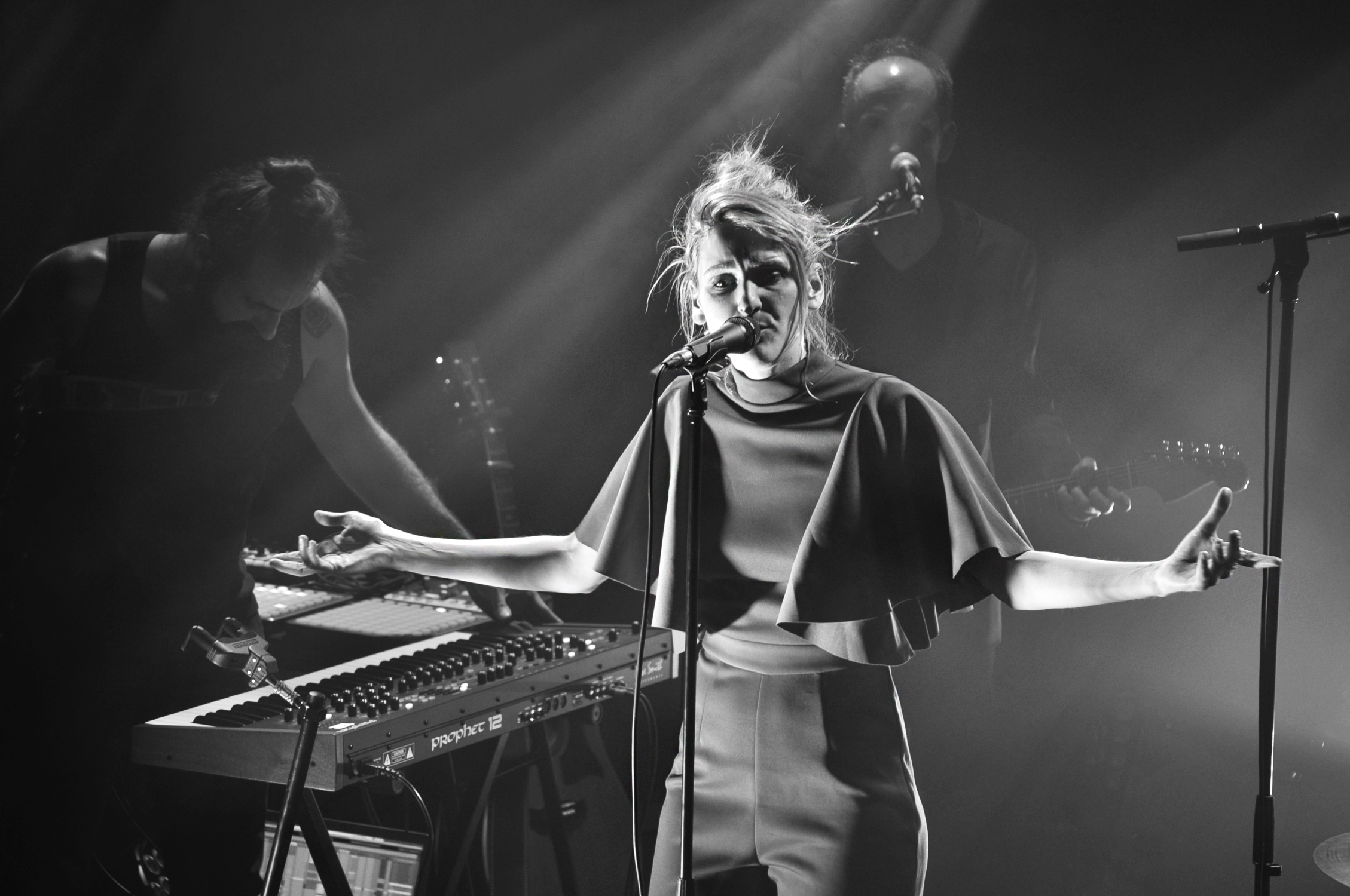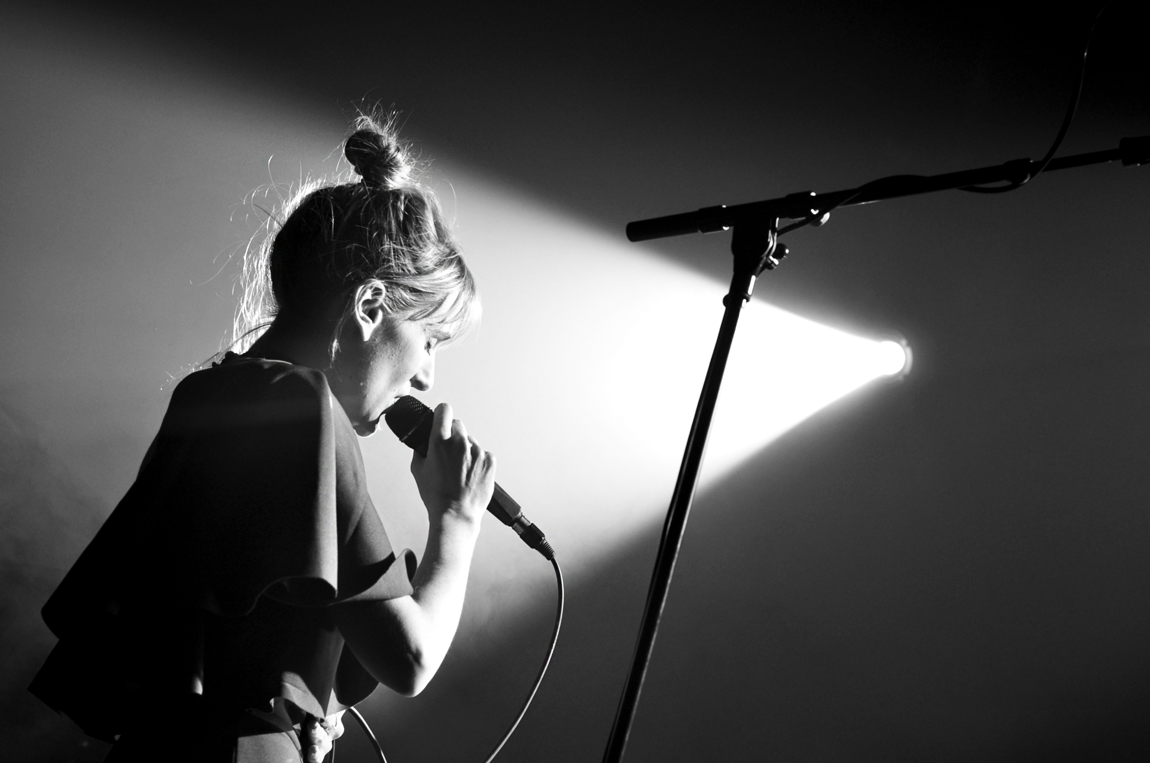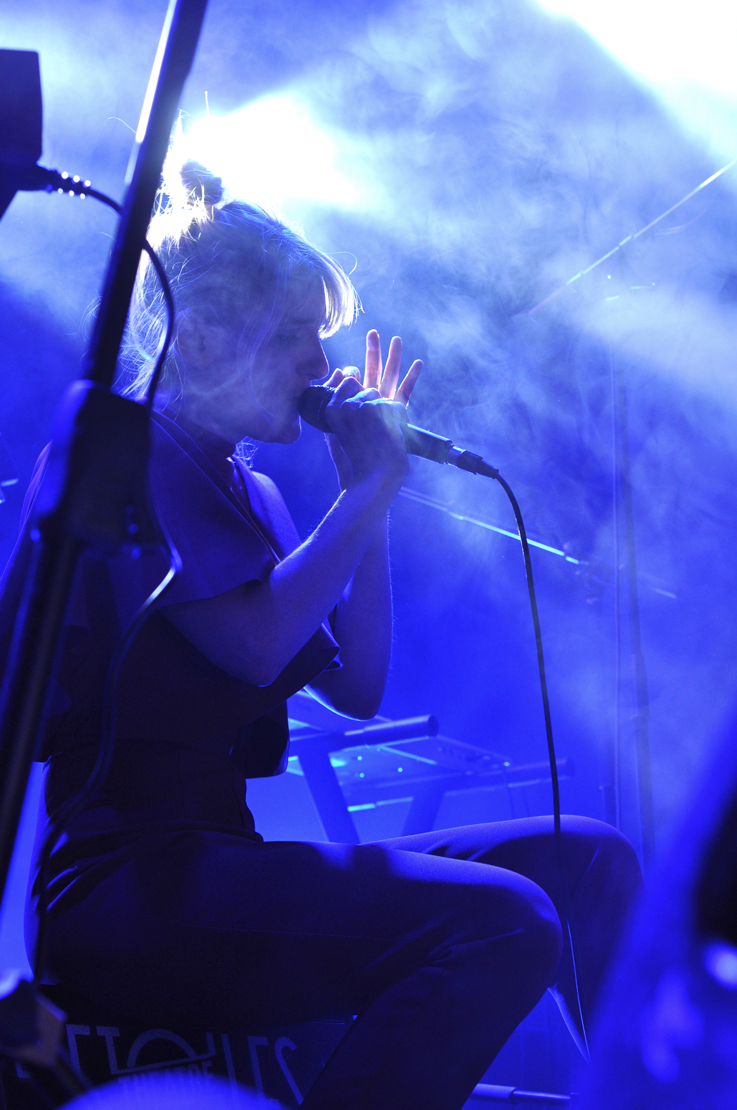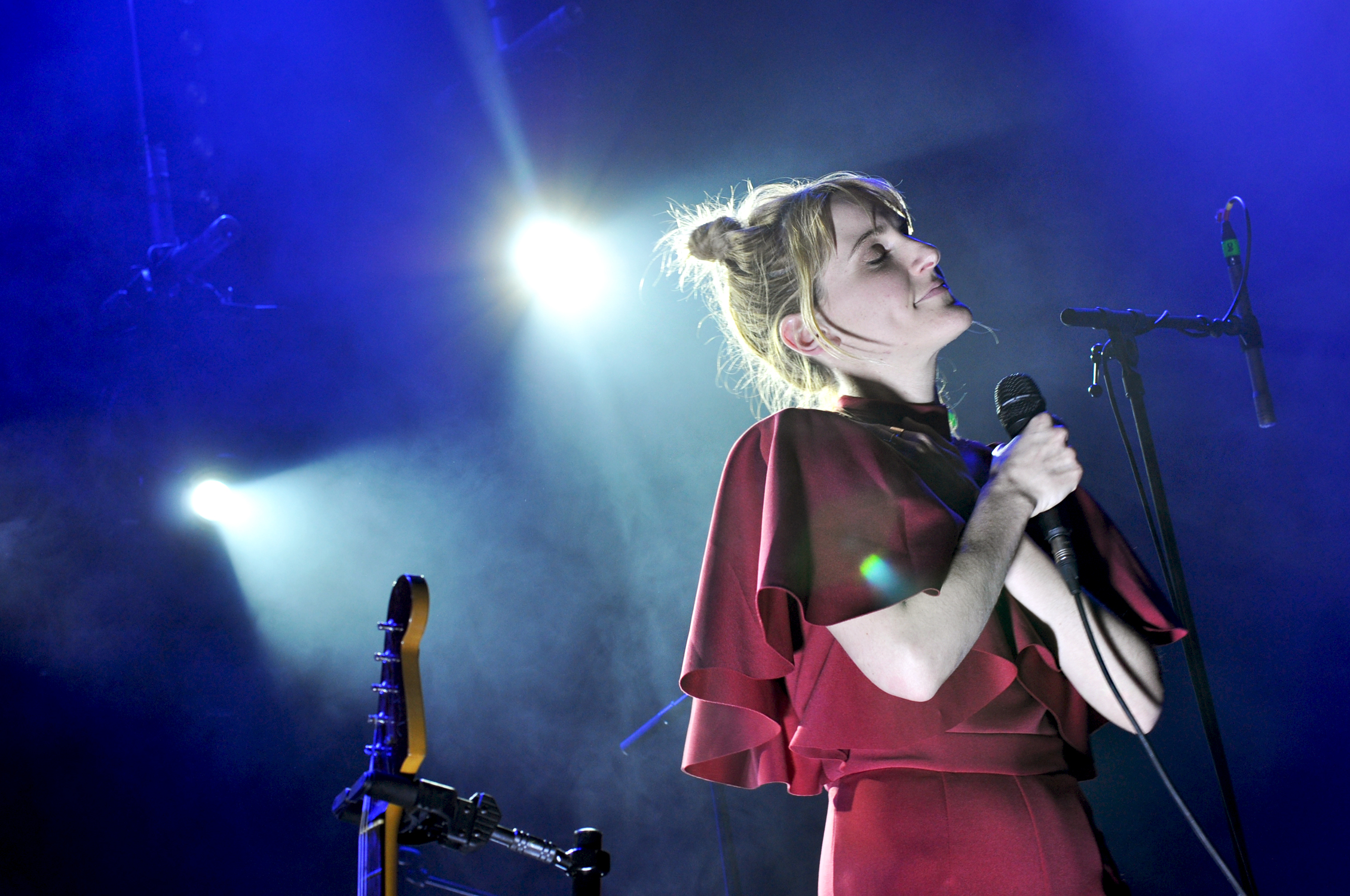 La jeune femme, de sa voix aux aiguës aériens, chante les titres de son premier album Jamais sans la nuit (sorti en février dernier sur le label Un Plan Simple/TOMBOY Lab), y ajoutant parfois ceux de son EP Blondino. Ondulant sensuellement et enroulant bras et mains vers le ciel et l’horizon, elle capte le regard du public, à qui elle sourit avec tendresse.