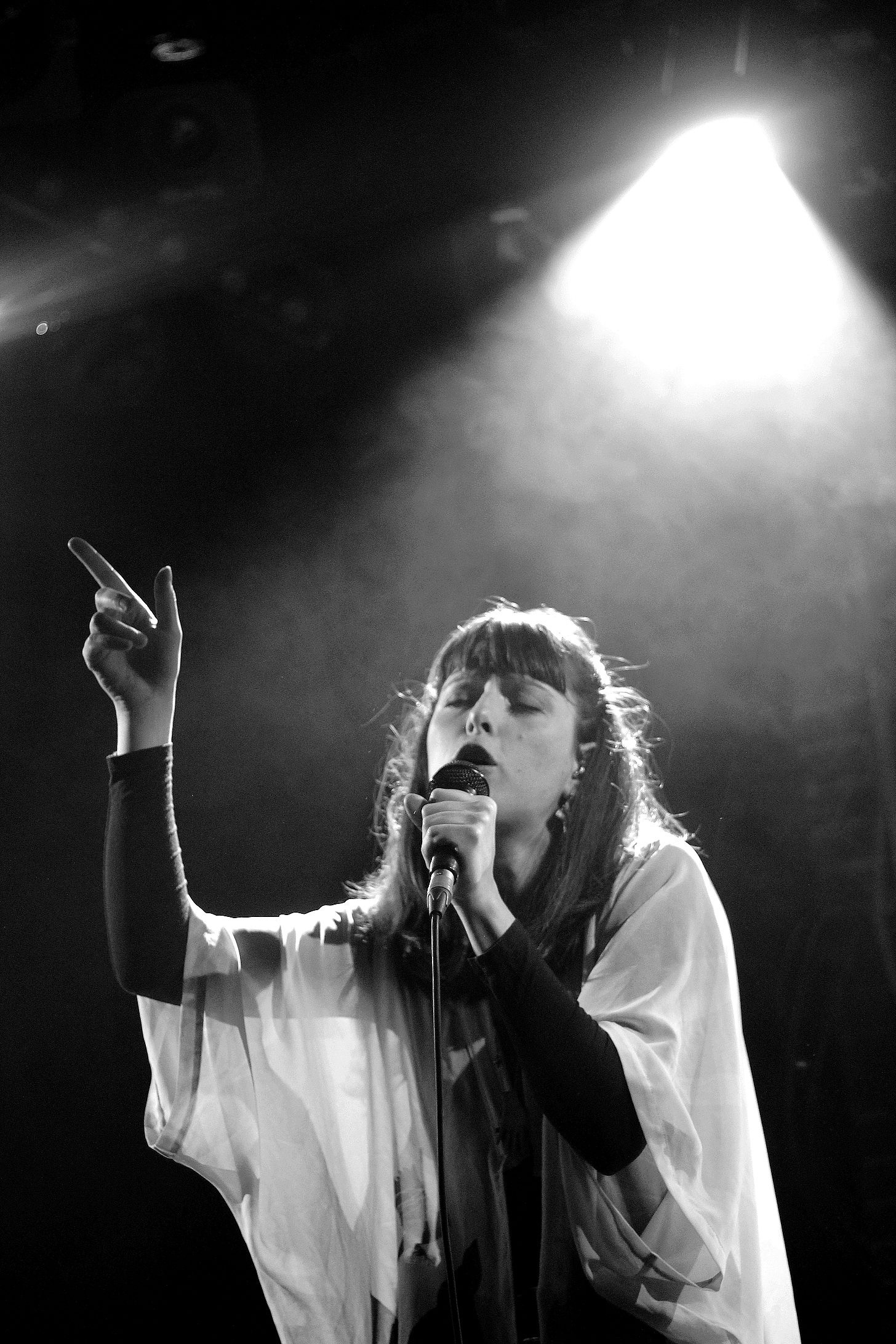 La Maroquinerie a été désertée aussi vite qu’elle s’est remplie pour Aliocha. C’est dans une salle à demi-remplie, mais devant des spectateurs déjà conquis, que Mesparrow ferme la marche. Elle, seule, au milieu de la lumière, tandis que ses acolytes sont cachés dans la pénombre. Mystérieuse et expressive, chaque mot qu’elle prononce touche droit l’âme de quiconque écoute. On ne restera pas jusqu’au bout, mais on se jure de retourner la voir très vite.