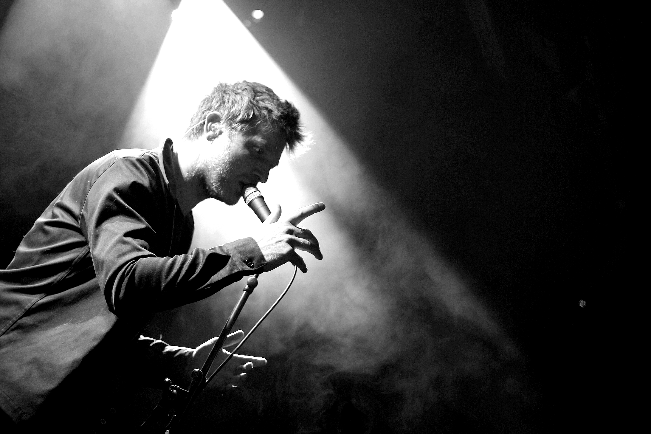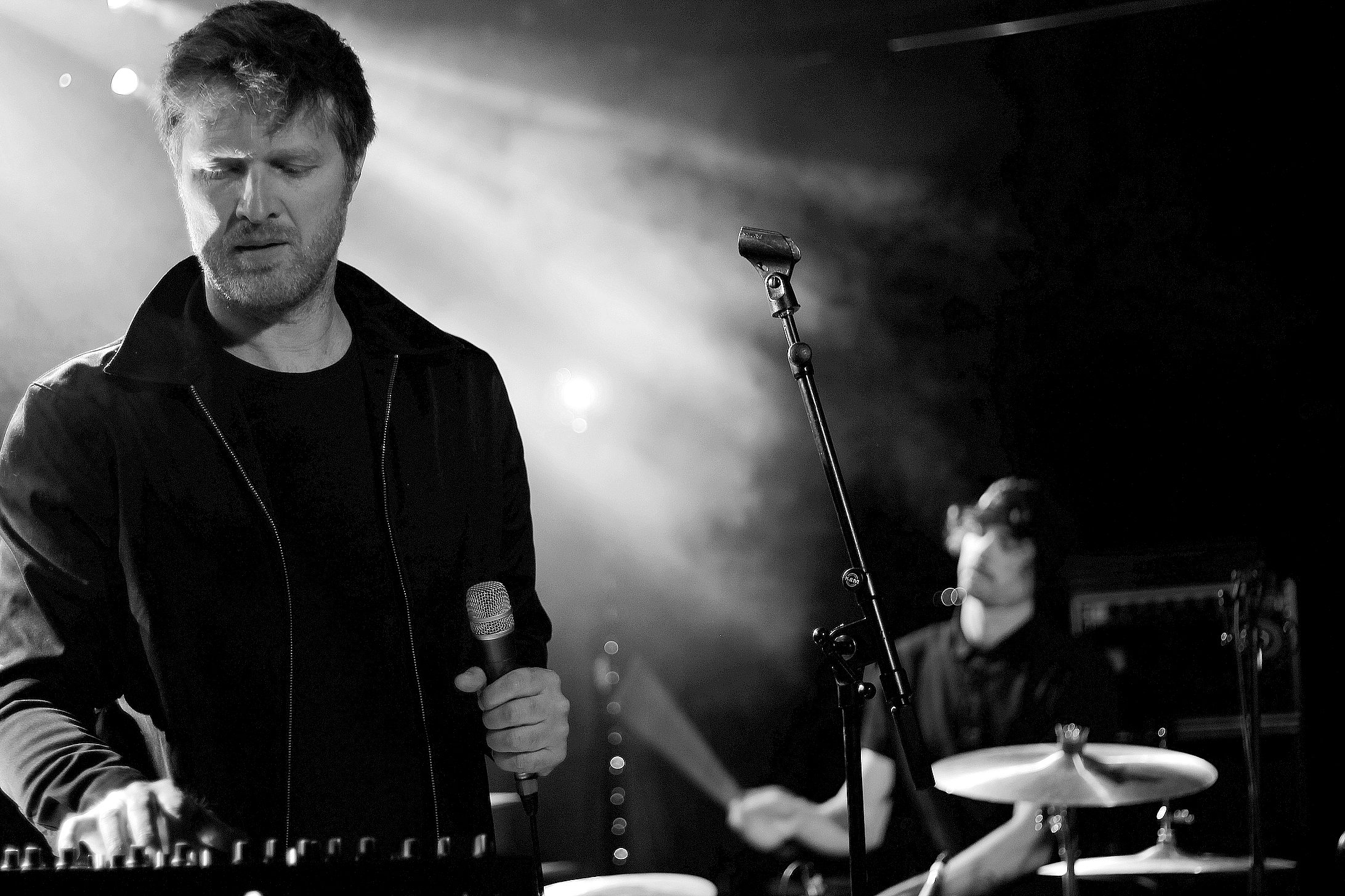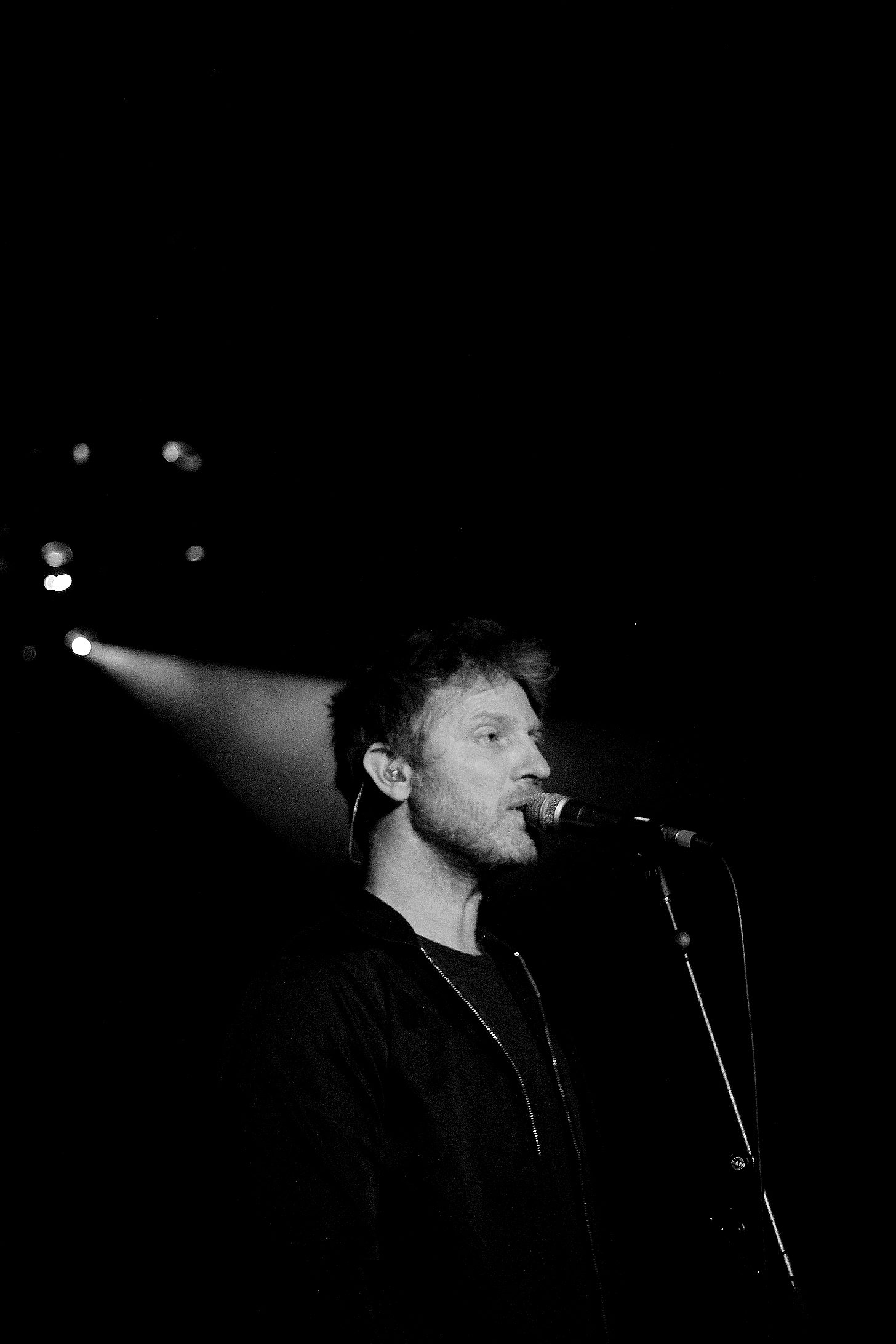 Le bal est ouvert avec le fascinant et mystérieux Octave Noire. Trois garçons dans la pénombre qui jouent sur les ambiances sombres, quasi-mystique et fait la part belle aux longues plages instrumentales. Octave Noire c’est Patrick Moriceau. Intriguant chanteur à la voix cajoleuse. Il intrigue avec son thérémine, il captive de sa présence magnétique et embarque la Maroquinerie avec son univers déroutant.