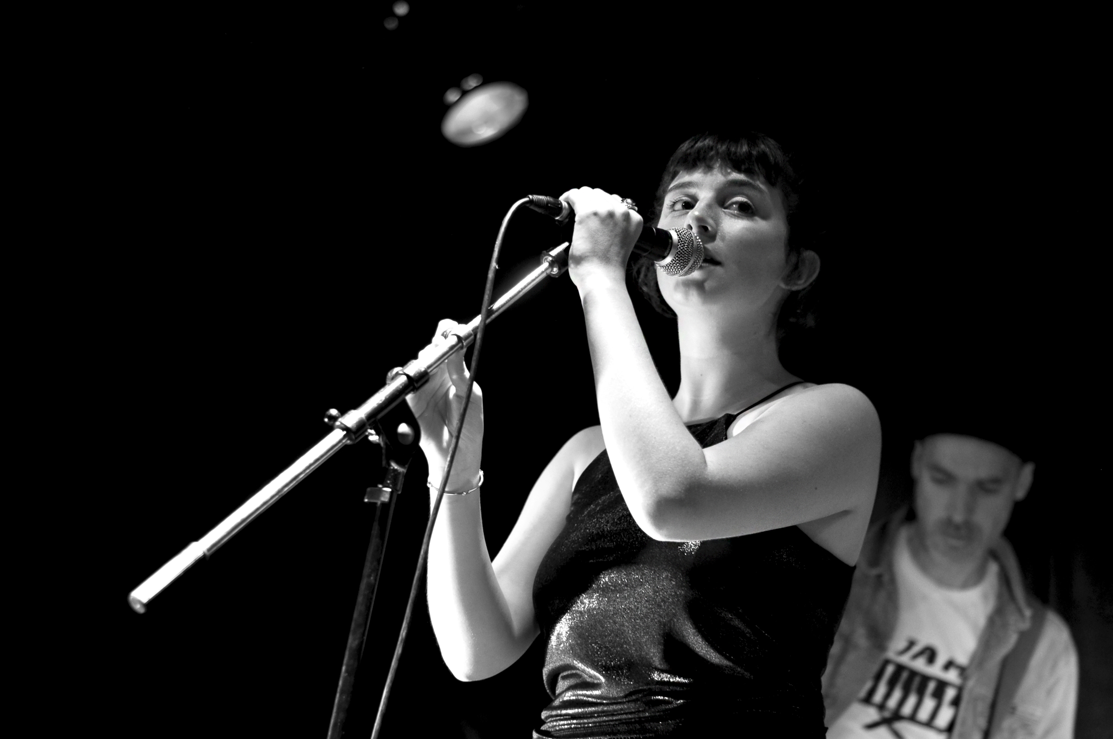 La scénographie est travaillée avec pour décor de scène des illustrations et des vinyles. Les musiciens sont aussi chorégraphiés. Sur l’hypnotisante “By the River”, la jeune femme se trace lentement un long trait sur chaque bras, le cours d’eau d’une rivière ou l’illustration du temps qui passe. Simple et efficace. On assiste à une vraie danse chorégraphiée sur “Radio girl”, joliment orchestrée, et rapidement accompagnée par les claquements de main du public.