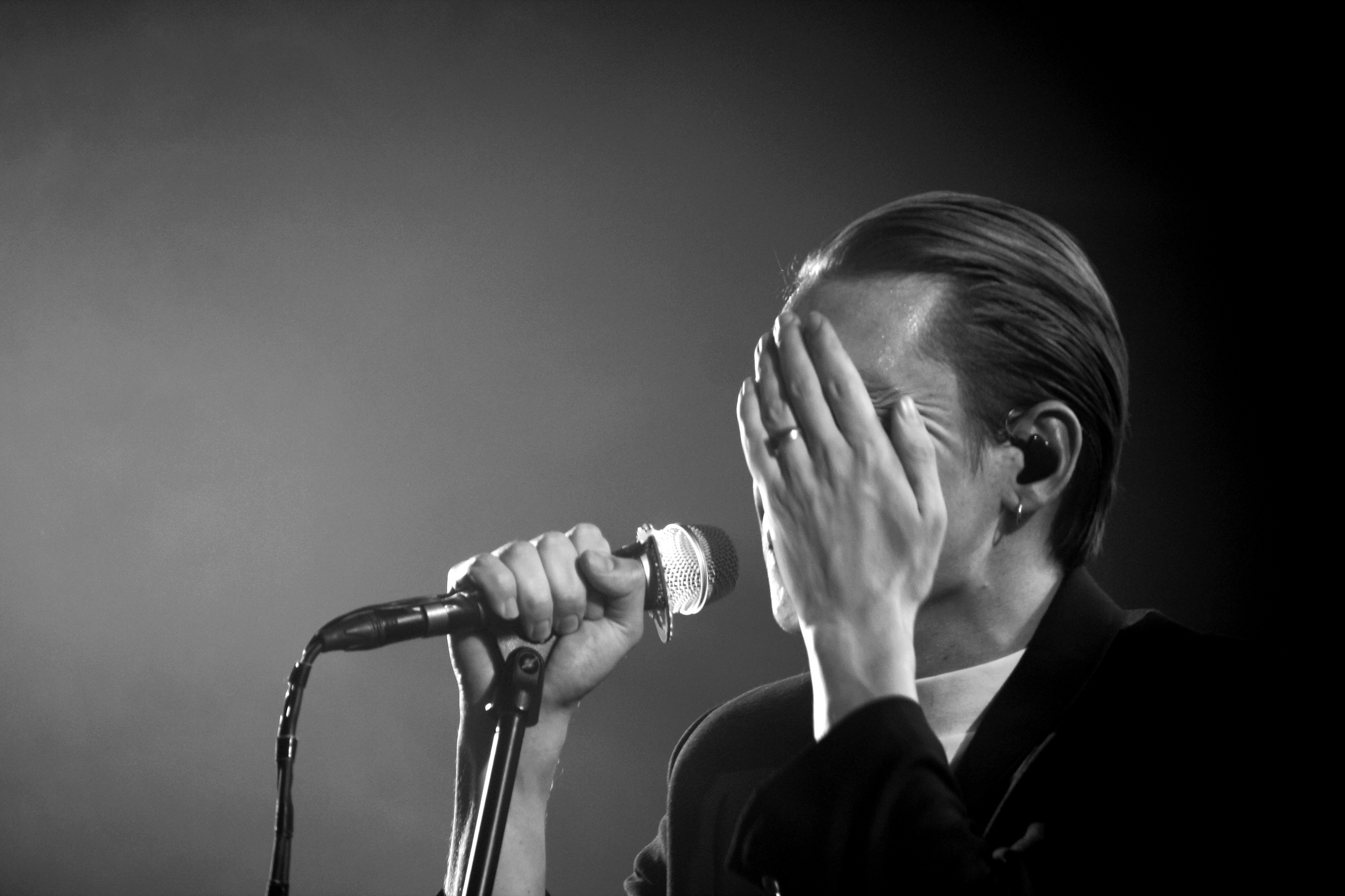 Les titres de “Rouge”, son dernier album, sont interprétés très fidèlement aux versions studio. Ni une, ni deux, le public ne peut s’empêcher de faire les chœurs sur “Talk To Me” puis “Winners”, ce qui ravit l’artiste qui n’hésite pas à tendre son micro à la foule. Mention spéciale à ce micro éclairé par une bague de lumières façon disco, s’éclairant différemment selon la scénographie. Lumière verte pour “Hylas” tiré de l’album au même nom, ardente lumière rouge sur “Crucify” et “Red Eyes” (bien sûr), bleu intime sur “Sandglass”… tout est raccord. Thomas Azier se paye même le luxe de refaire le pont de “Berlin” pour que le public puisse à nouveau chanter les onomatopées, “avec plus d’énergie cette fois-ci” implore-t-il. Chose dite, chose faite.
