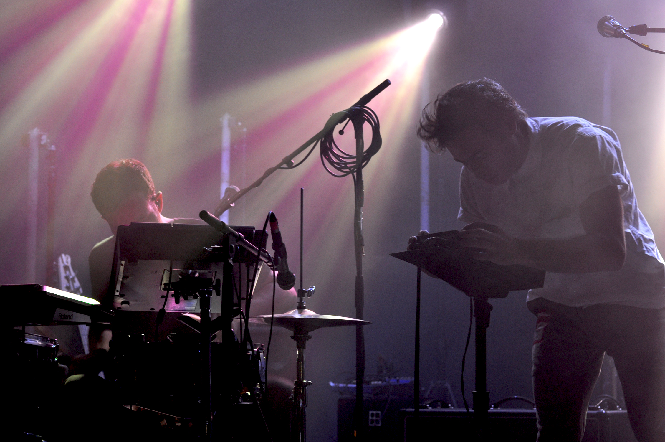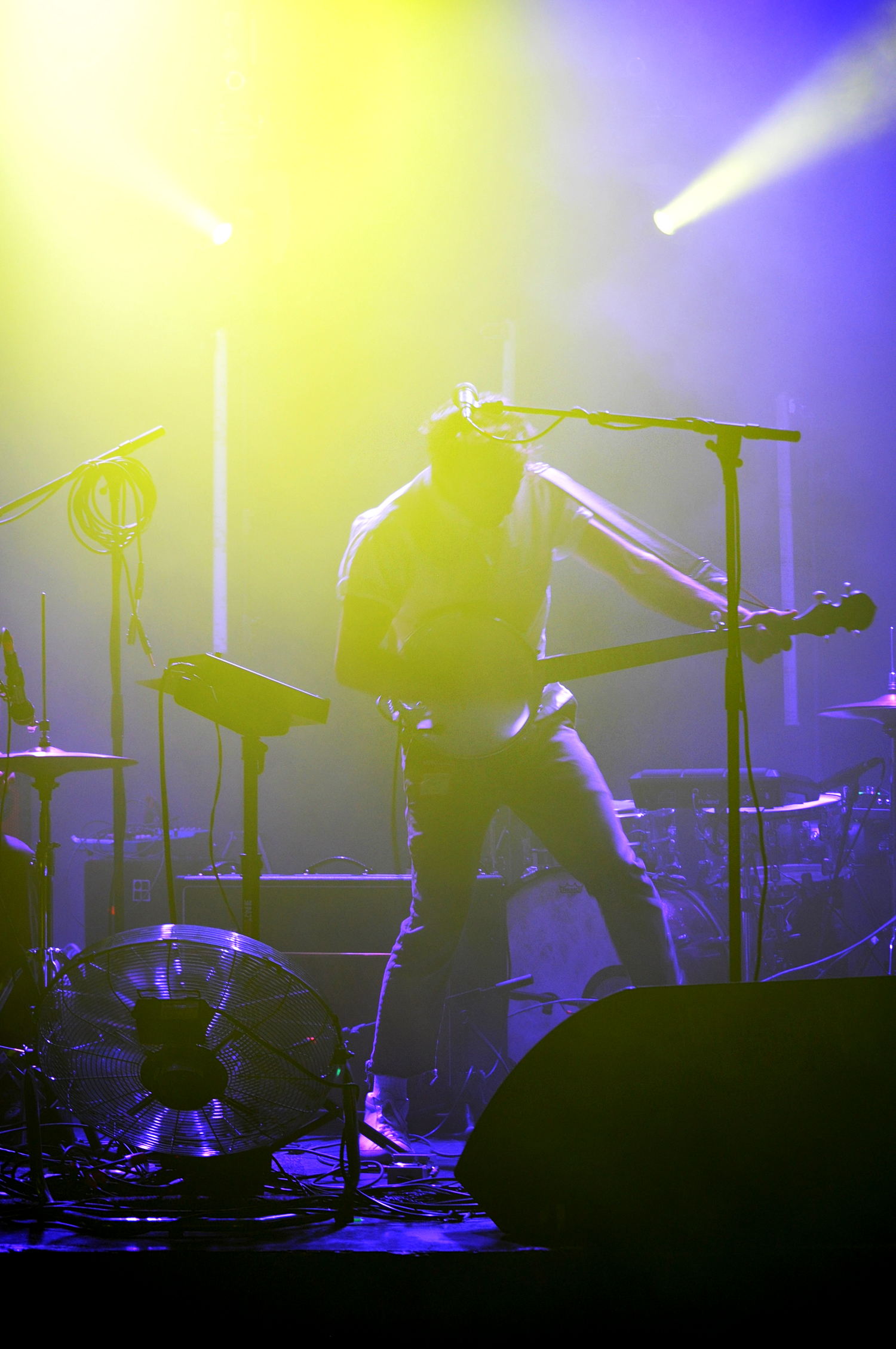 Yoke Lore est la bonne surprise de la soirée. C’est la première fois que le duo se produit en France, et malgré une salle plutôt vide, les quelques spectateurs présents ont tous l’air conquis. Il faut dire que Yoke Lore et son banjo font un sacré show. L’instrument est joué comme une guitare électrique par un Adrian Galvin sur ressorts. Le jeune homme attirent tous les regards. Professeur de yoga et danseur contemporain, l’Américain se contorsionne et impressionne. Des airs de Grizzly Bear qui aurait fusionné avec Woodkid. C’est puissant et sensible. À côté, l’acolyte percussionniste balance des beats et des samples qui viennent se confronter au son si particulier (et si divin) du banjo. Le mélange métallique du banjo, et électronique est surprenant et très intéressant. Une vraie belle découverte et un artiste à suivre de très près.