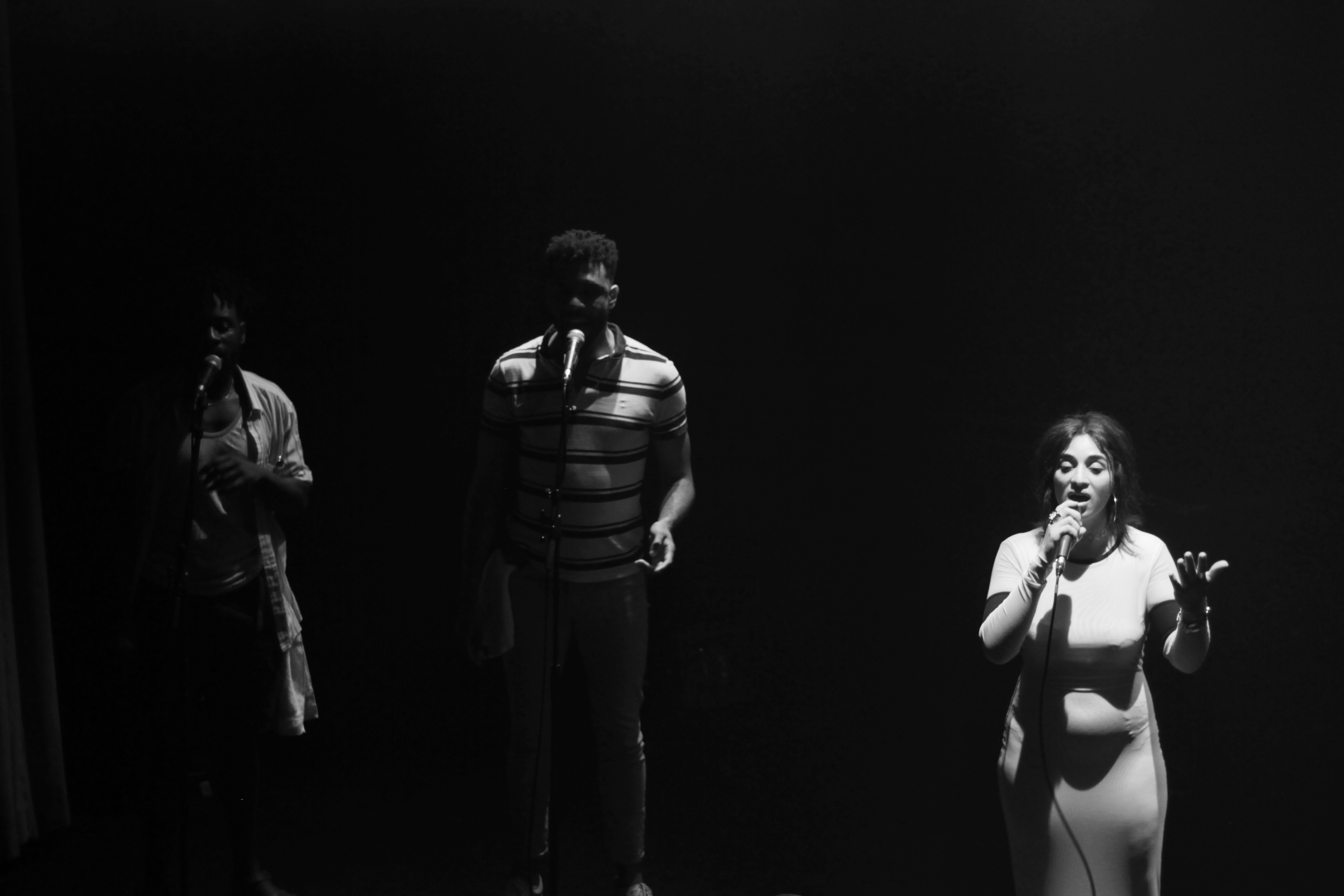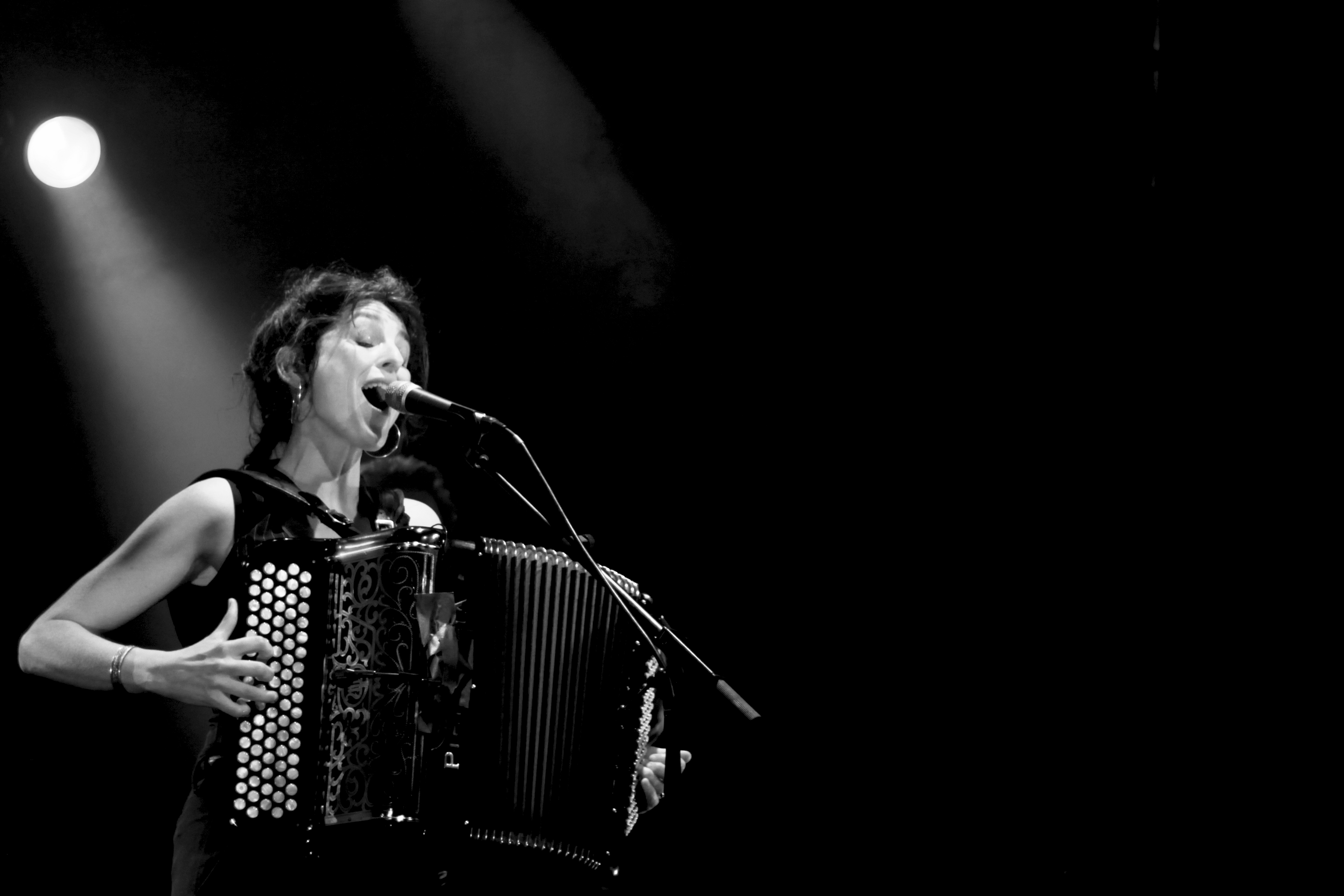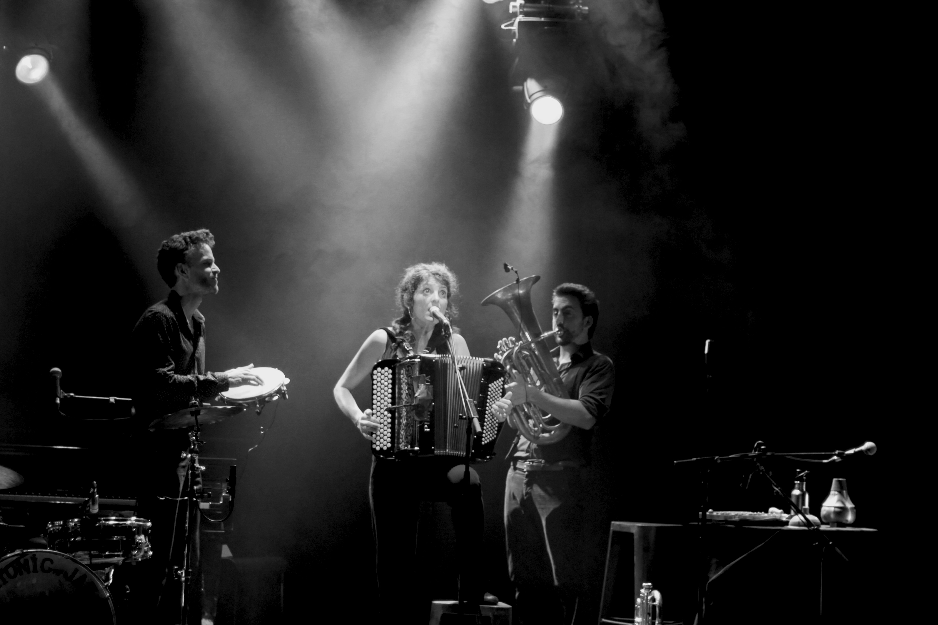 Chloé Lacan prend place sur scène au milieu de tout un tas d’instruments et entourée de ses deux comparses Nicolas Cloche et Brice Perda. Ensemble ils présentent leur album sorti à l’automne 2015 : Ménage à trois. Le trio se partage d’un morceau à l’autre : un accordéon, un piano, des ukuleles, une batterie, des percus, et des tubas. Leurs trois voix s’entremêlent, notamment lorsqu’ils s’installent tous les trois autour d’un seul micro pour chanter la captivante “Porto Fino”.