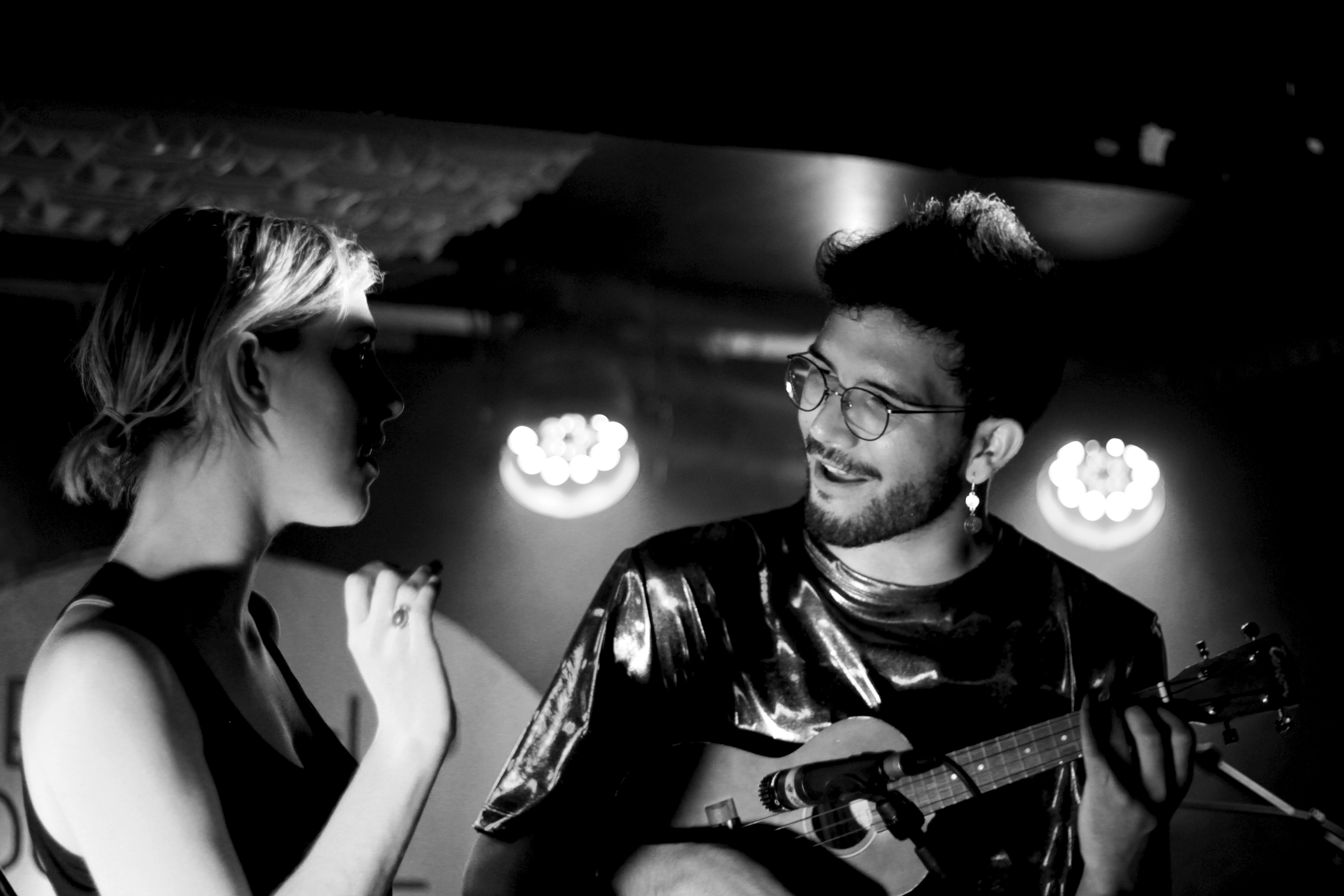 C’est Refuge, accompagné de Louise, sa fidèle violoniste et seconde voix – qu’on connaît également pour son projet solo Lonny Montem -, qui ouvre la soirée. Les titres déjà bien connus du doux jeune homme résonnent avec toujours autant de fascination dans nos oreilles. Les voix lyriques, parfaitement justes, se mêlent avec élégance et audace. Le violon alternant pizz et archet offre une couleur virevoltante à la musique portée par un piano romantique.