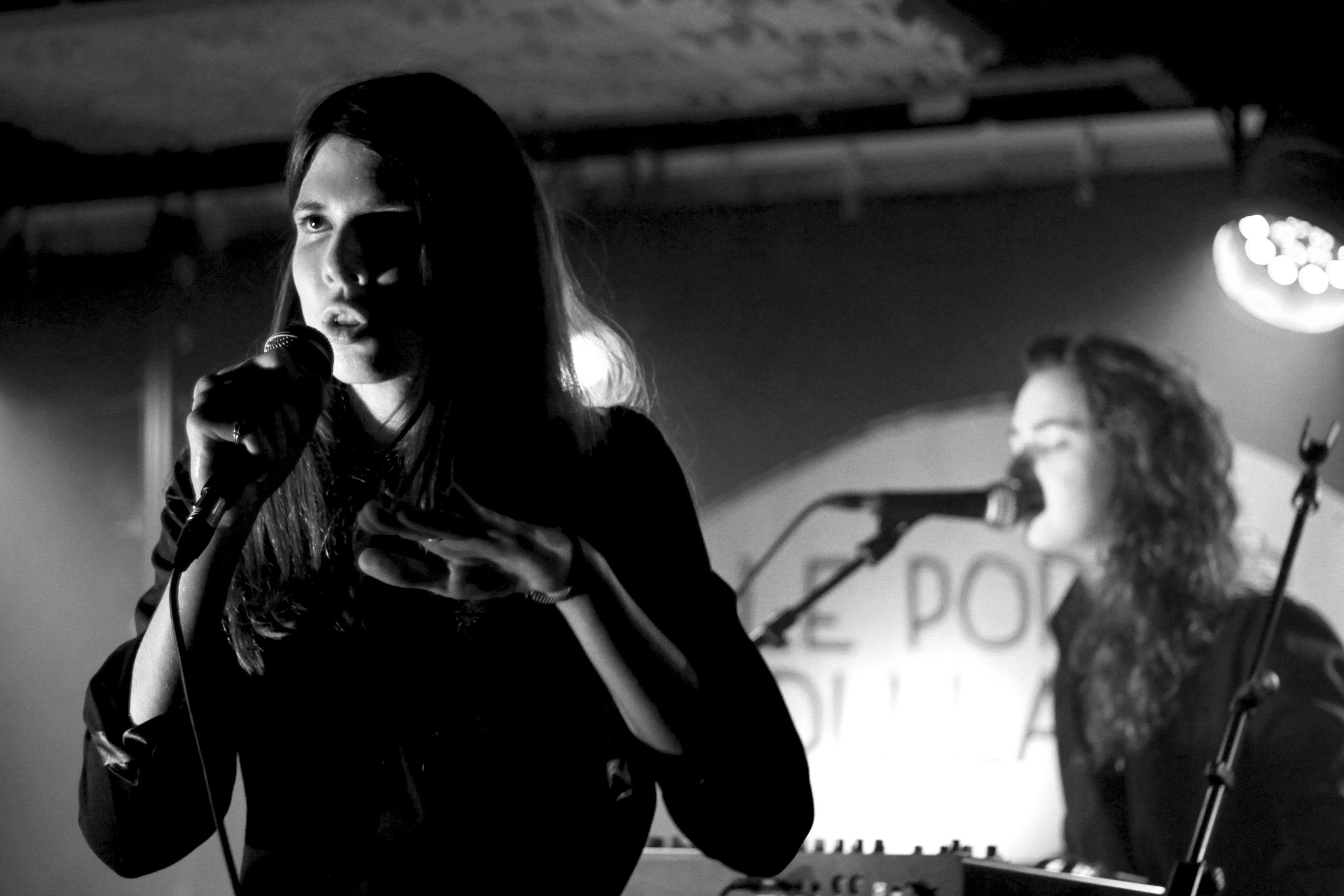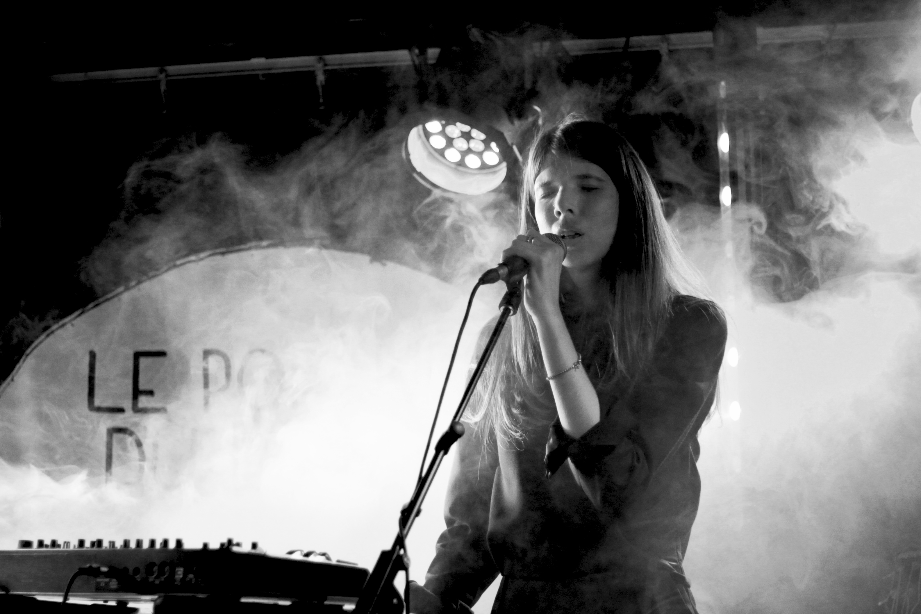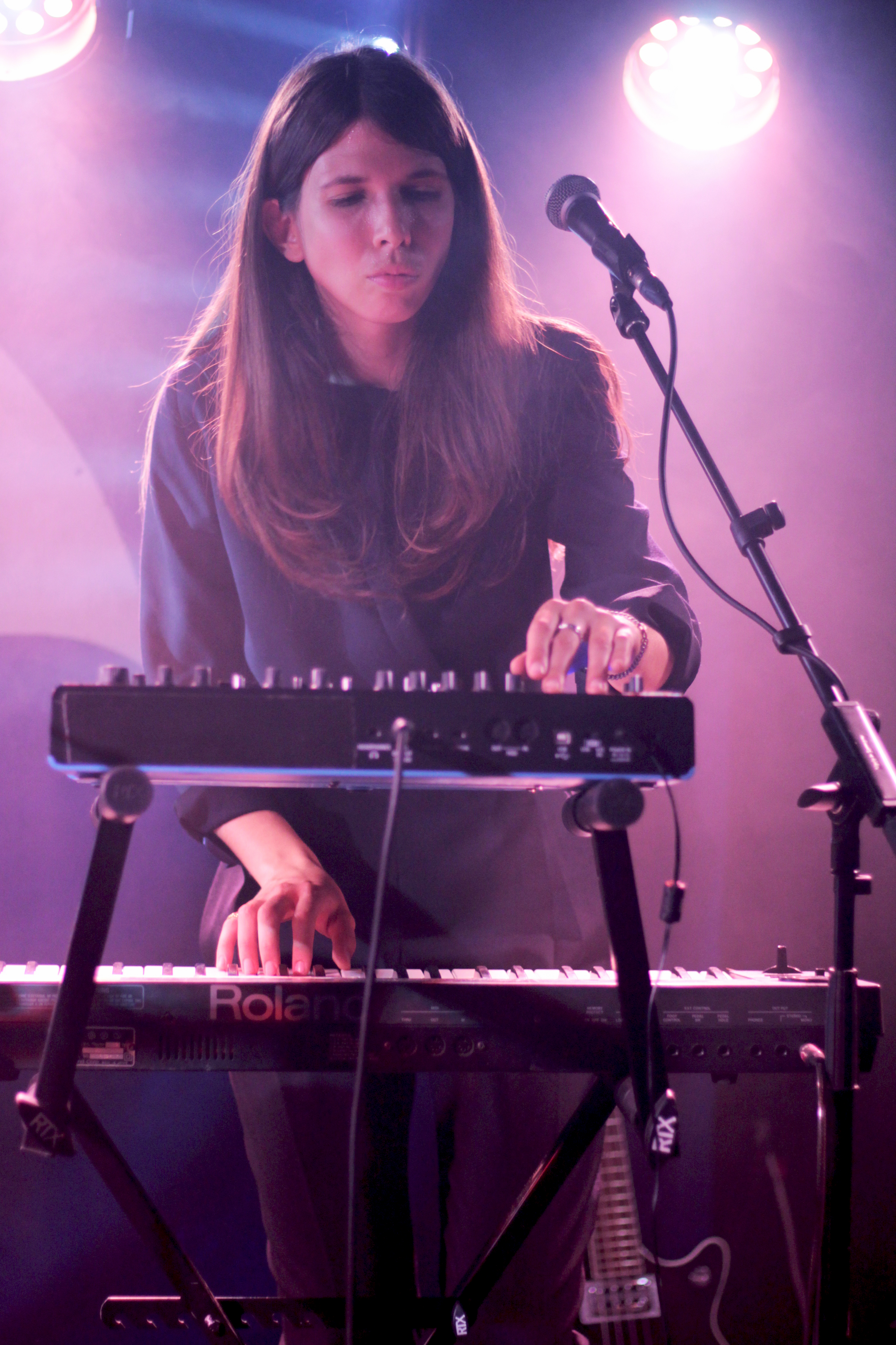 La salle est maintenant quasi pleine, le public s’est approché de la scène et accueille avec un enthousiasme non dissimulé la reine de la soirée : Theodora. À ses côtés, Zoé et sa crinière sauvage, prend en main la partie rythmique : pad électronique et percu de style conga. Theodora, quant à elle, jongle entre un double clavier et une basse. Le public est bouillant, sautillant malgré la chaleur, acclamant les parties instrumentales et chantant les titres d’Obsession, mais aussi ceux de Let Me In (sorti au printemps 2016), notamment “A for Ache” ou “One Foot in The Grave”.