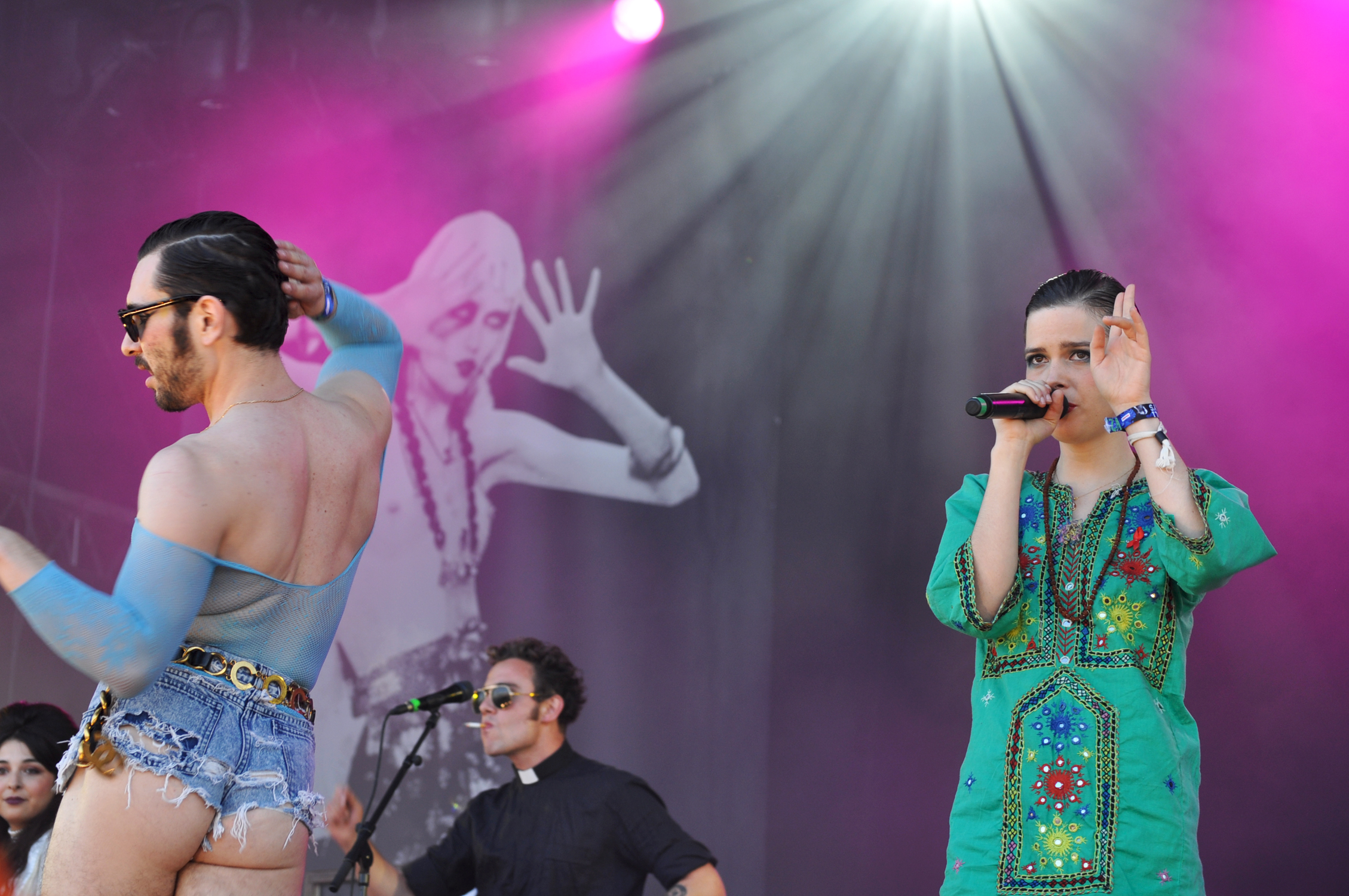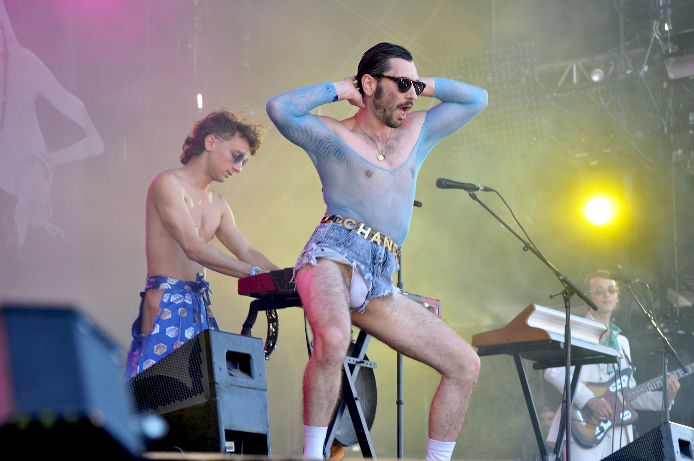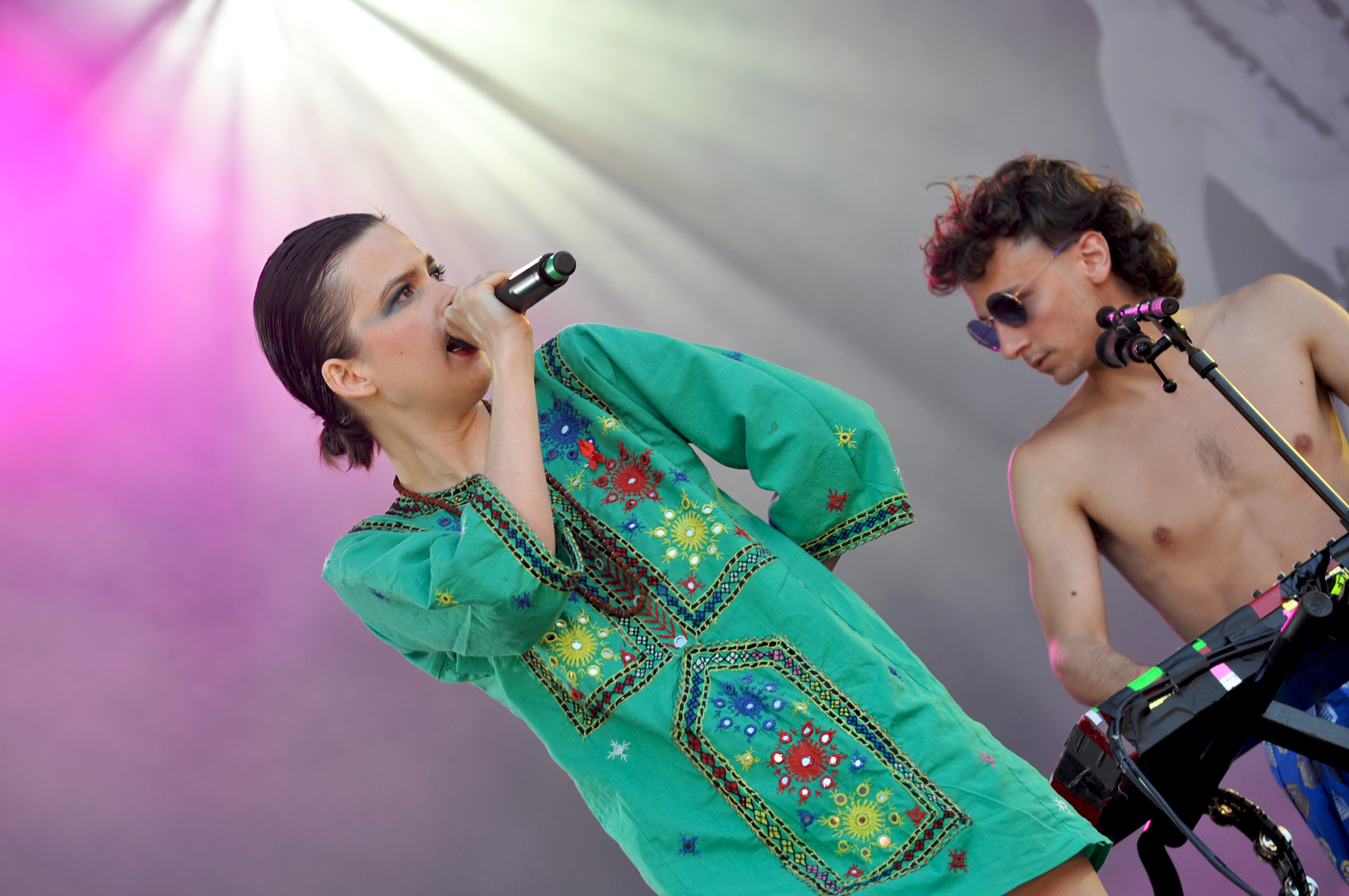 La Femme, tu aimes ou tu détestes. Il n’y a pas de demi-mesure avec ce groupe de frappa-dingues. D’ailleurs, eux non plus ne font pas dans la demi-mesure et assument à fond le WTF. Sur la scène Paris, c’est la grande messe du n’importe quoi, du lâcher prise, du “fais comme tu veux, ça ne regarde que toi”. Et ça fait du bien. Sur scène, ça se roule des pelles, ça danse en micro-short, les fesses à moitié à l’air, les seins et les bijoux de famille aussi, ça chante sur les mycoses, ça prend la vague, ça voyage en Orient Express, ça aime le rock fort. La Femme a donné du plaisir à Solidays et les festivaliers ont, semble-t-il, pris leur pied.