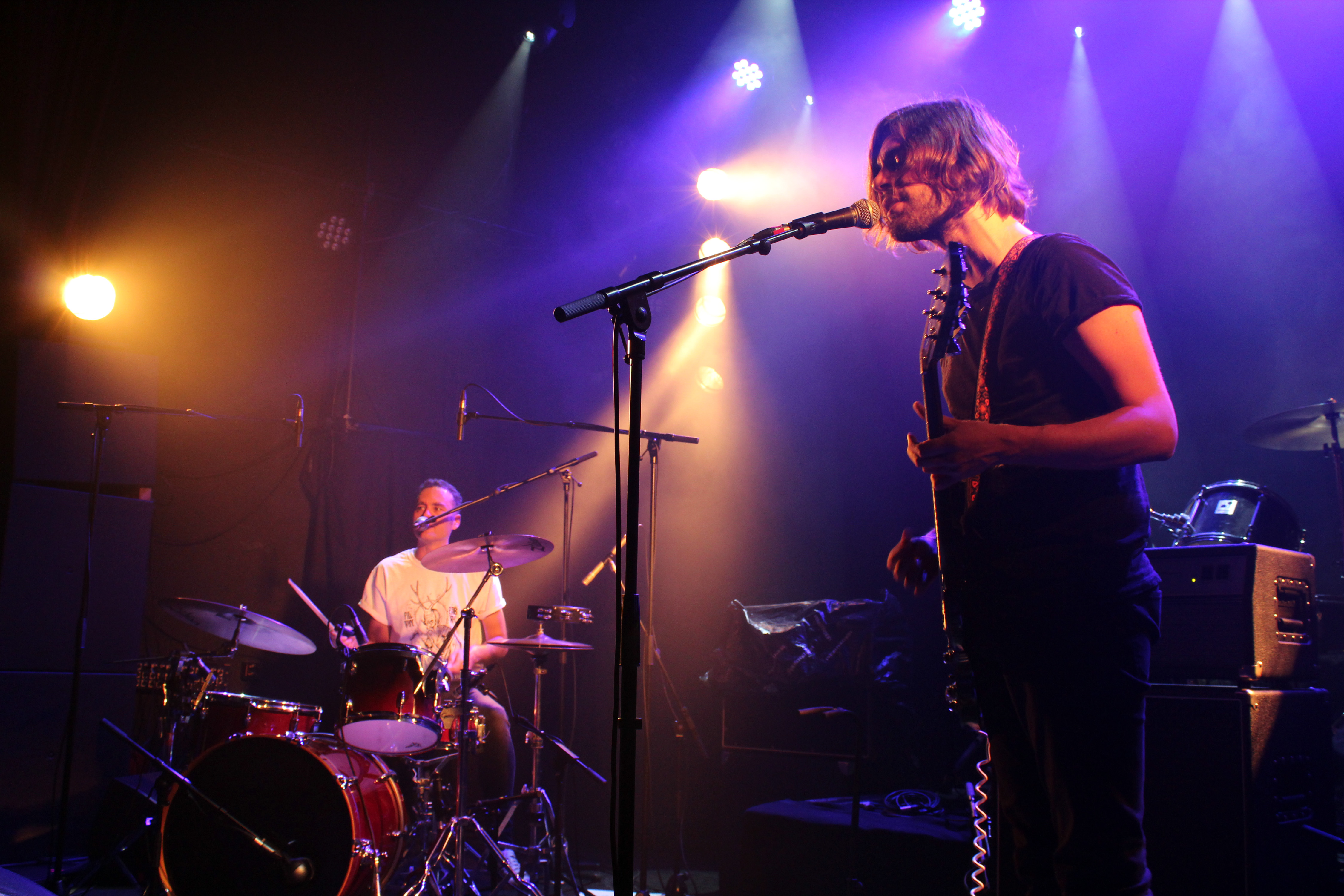 Et pour continuer dans l’esprit rock et garage, c’est à la Petite Coopérative de Mai qu’il fallait rester. Grosse claque pour commencer, avec le duo Grec de The Noise Figures. Si le public est encore peu nombreux et reste en fond de salle, il ne mettra pas longtemps à avancer, pour taper du pied et secouer sa tête comme dans un concert de métal. Les bras se lèvent, on commence à se bousculer. Et ce n’est pas fini. Viens ensuite l’ovni garage punk rock des Français de Frustration. Dire que le groupe ne se prend pas au sérieux est faible. Le guitariste fait semblant d’être le chanteur, de prendre la mauvaise guitare, le jeu de scène est drôle, punk, mais rappelle surtout toute la scène berlinoise. On se retrouve pendant quelques minutes dans une Allemagne punk des années 1990, avec un côté Joy Division et Neu! La claque. On étouffe au devant de la scène, on sue. Qui a dit que le rock était mort ?