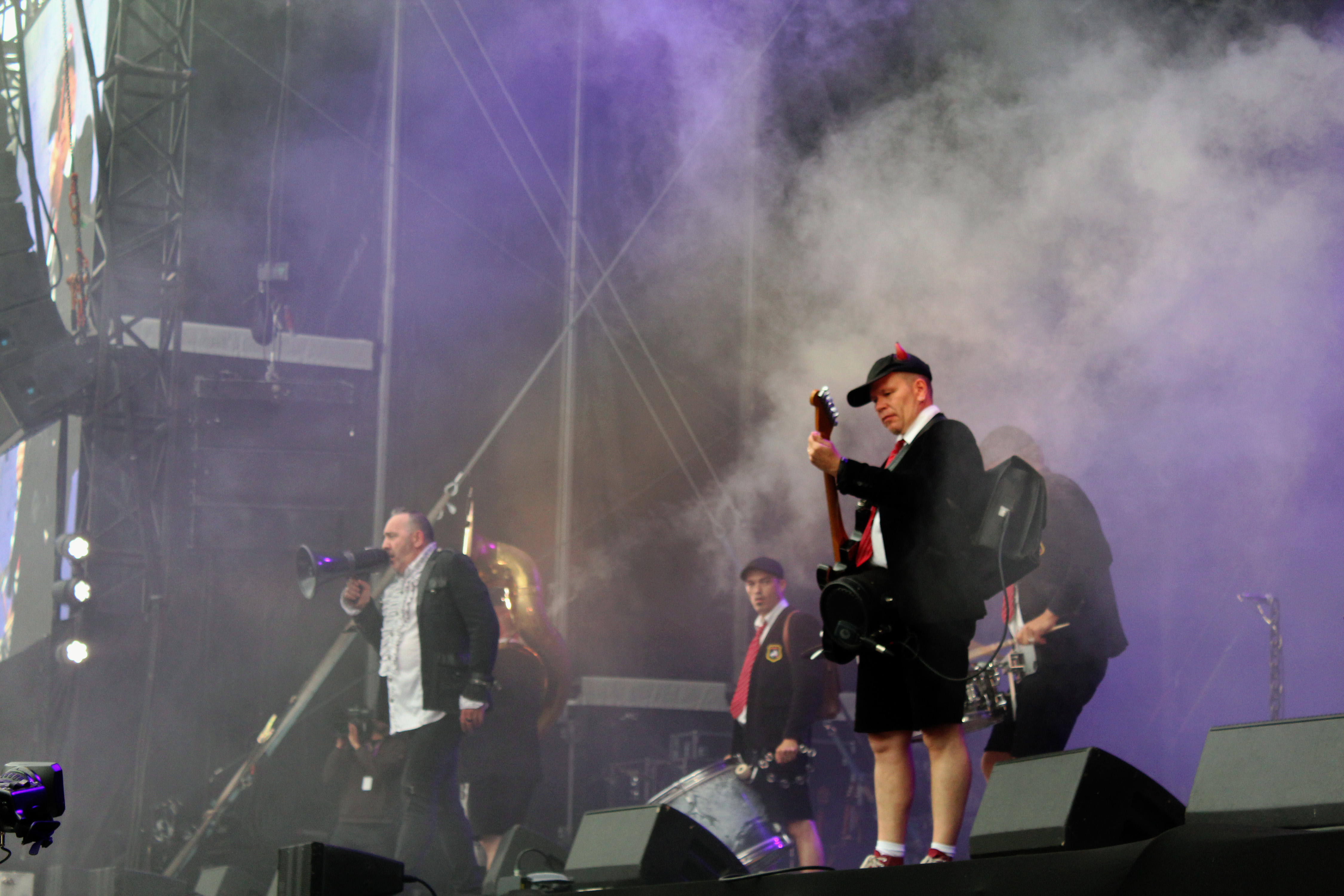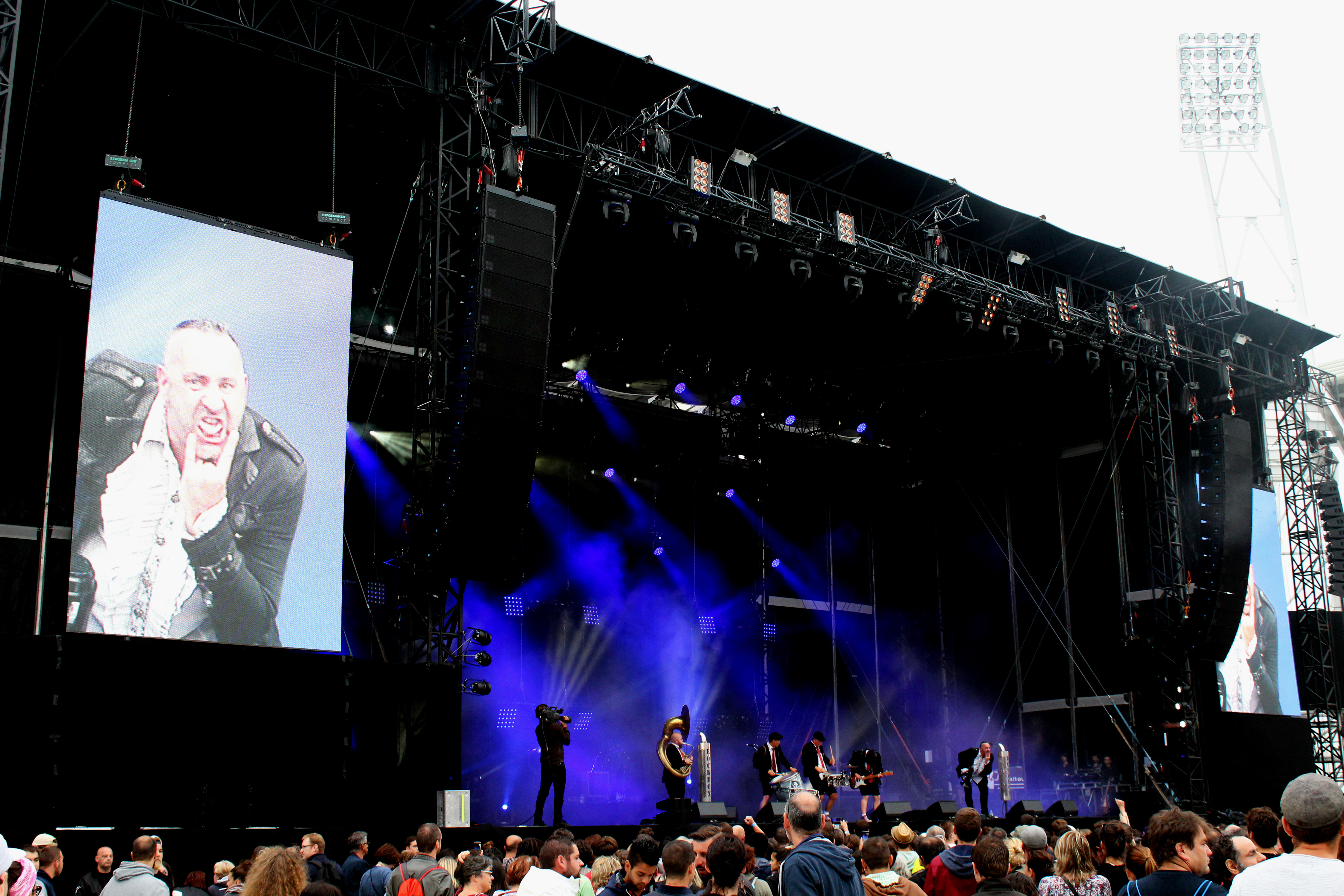 Alors que toute la foule n’est pas encore entrée dans le stade, les hostilités commencent dès 19h00 avec les Français de la Fanfare RockBox. L’idée du groupe ? Reprendre tous les grands tubes du rock ou du hard-rock en mode “fanfare”. Entendons-nous bien, pas celle du festival des pompiers du 14 juillet ! Deep Purple, AC-DC, Queen ou David Bowie (auquel le groupe rend un chaleureux hommage à nous mettre les larmes aux yeux, sur Space Oddity), tous les groupes et tubes phares des années 70-80 y passent. Rien de mieux que la Fanfare RockBox pour commencer une soirée, qui s’annonce longue !