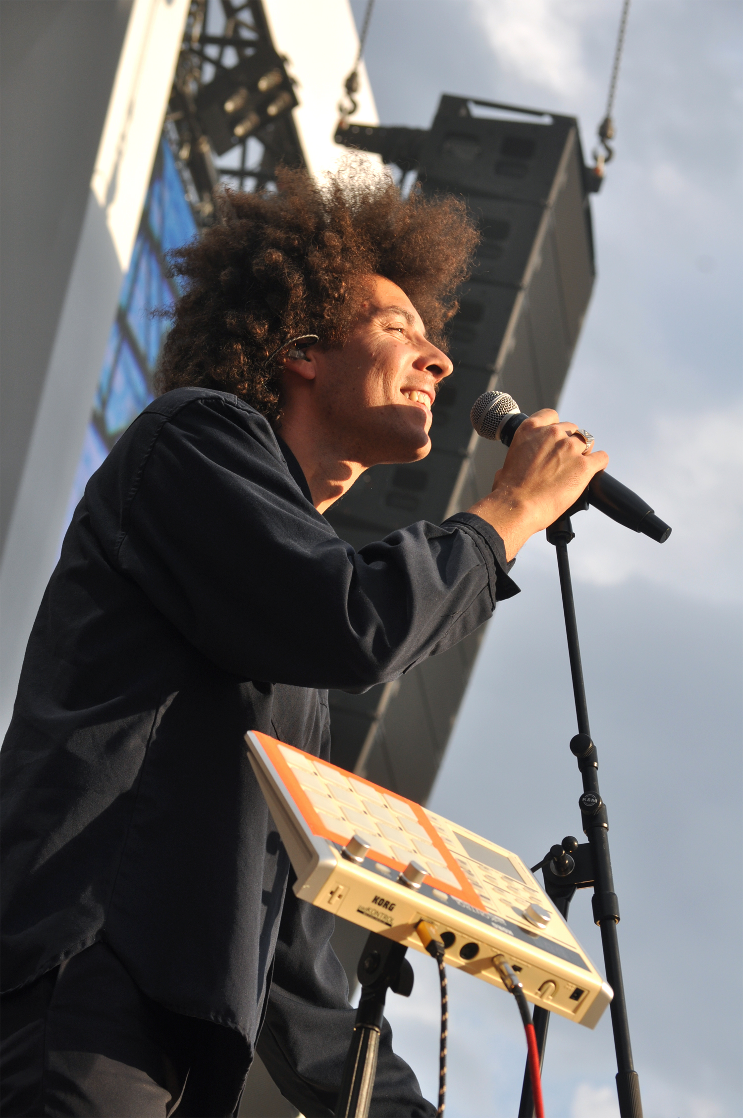 L’artiste Témé Tan, super copain avec les boys de Francois & The Atlas Mountains, aussi embarque le parvis avec sa musique lumineuse et solaire. Sourire aux lèvres jusqu’aux oreilles, ce garçon est un rayon de soleil, mais à la différence de ceux qui transpercent le ciel, il n’écrase pas, il rend heureux. Heureux comme Biolay, qui a laissé sa noirceur pour la moiteur de l’Argentine le temps de deux albums, Palermo Hollywood et Volver. Pourtant, le chanteur agrémentera beaucoup son set de vieux titres. C’est avec “La Garconnière” qu’il commence. Il y aura aussi “Négatif”, “À l’Origine”. Orgie haut de gamme dans le public, comme souvent quand Biolay chante sur scène.