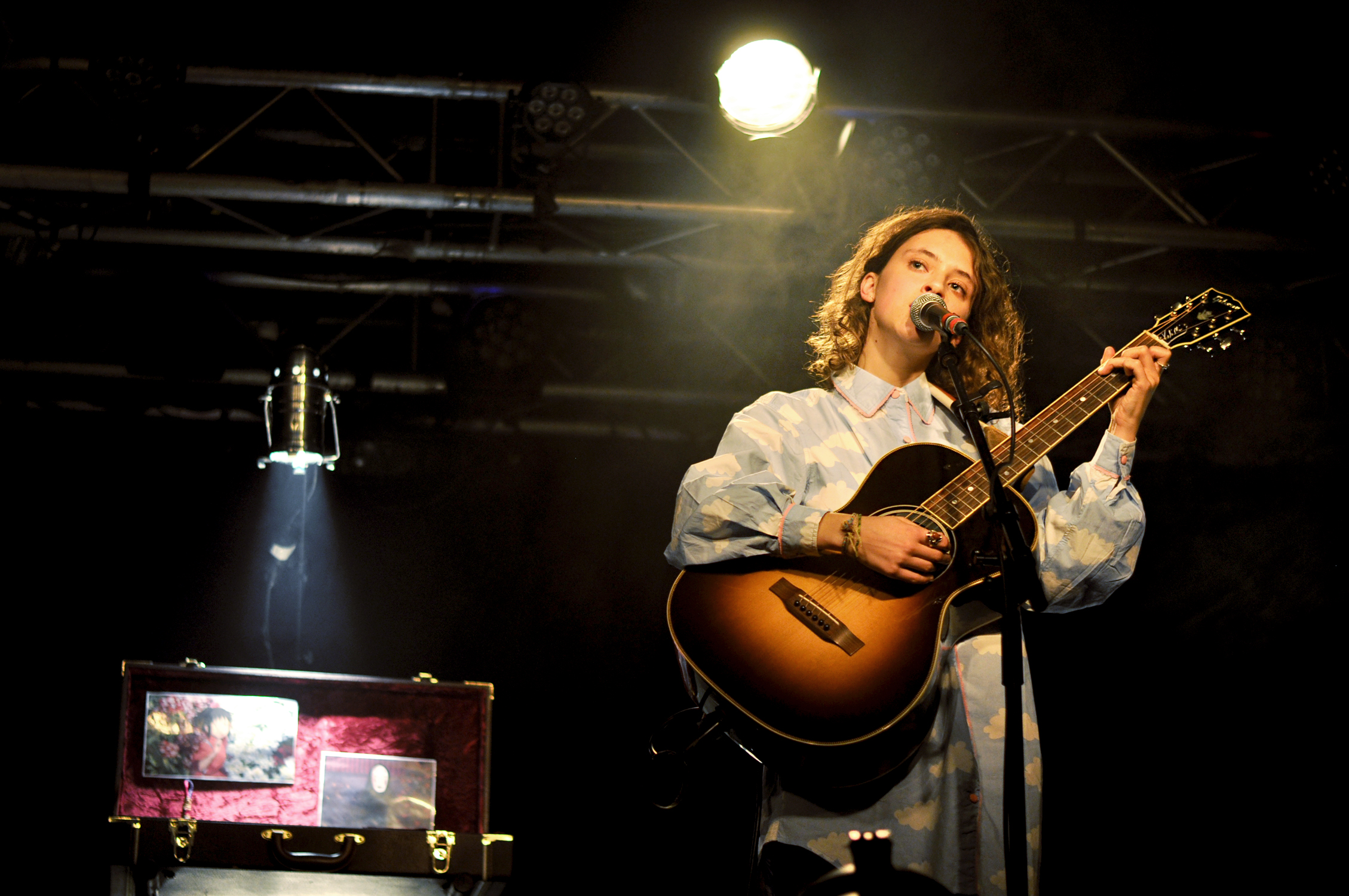 Pomme fait son apparition, dans sa tenue de nuages. La douceur sera caractéristique de son tout nouveau spectacle. Sur scène, une lumière tamisée orangée et une valise ouverte, sur laquelle sont accrochés deux tableaux extraits du Voyage de Chihiro. Le mystère reste entier. Mais la scénographie invite clairement au rêve. Et c’est en effet un concert de rêve que nous offre-là la jeune artiste.