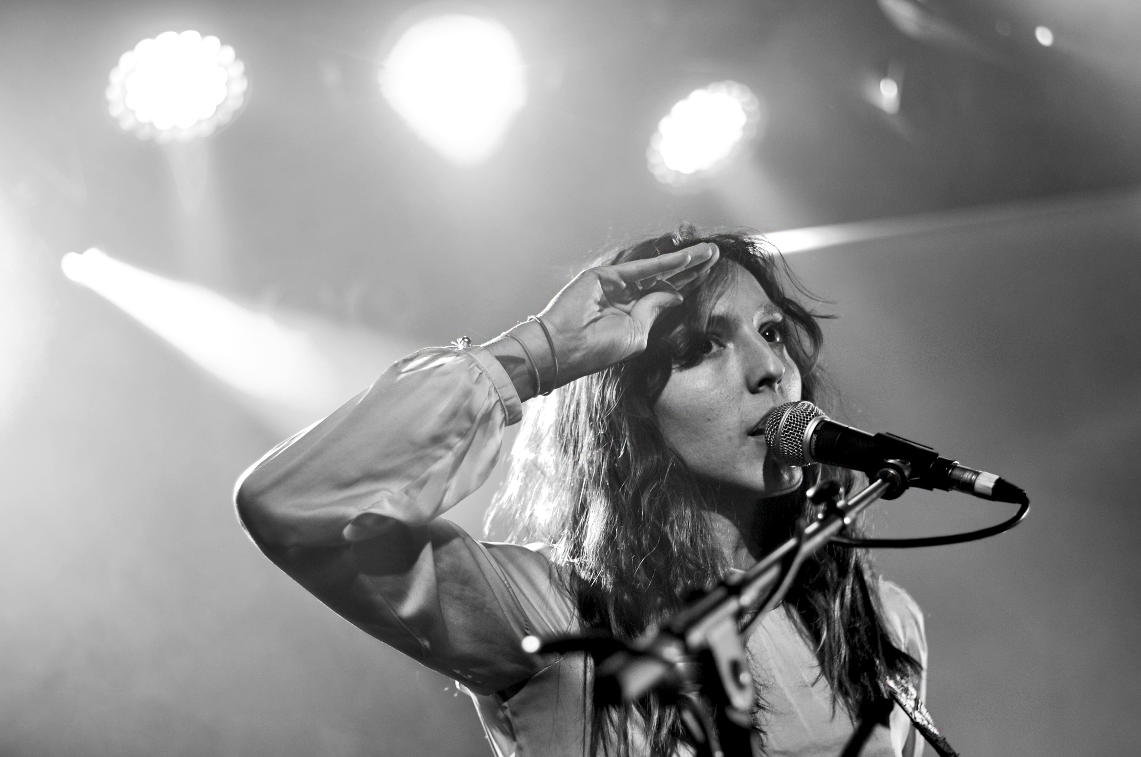 Michelle Blades a quitté le Panama, pour la Floride, puis, après une vie de voyages, a posé ses valises à Paris pour quelque temps. Et c’est tout ces voyages que l’on entend dans sa musique. Une voix claire et limpide, une guitare électrique qu’elle a apprise sur le tas, et des compositions engagées et impliquées, Michelle Blades semble se livrer entièrement dans son interprétation. Pas de temps mort sur scène, où elle enchaîne sans pause plusieurs titres à la suite, avec pour simple transition des notes de guitare mises à nue. Le public est concentré et fasciné par l’intensité qui se dégage de la scène.