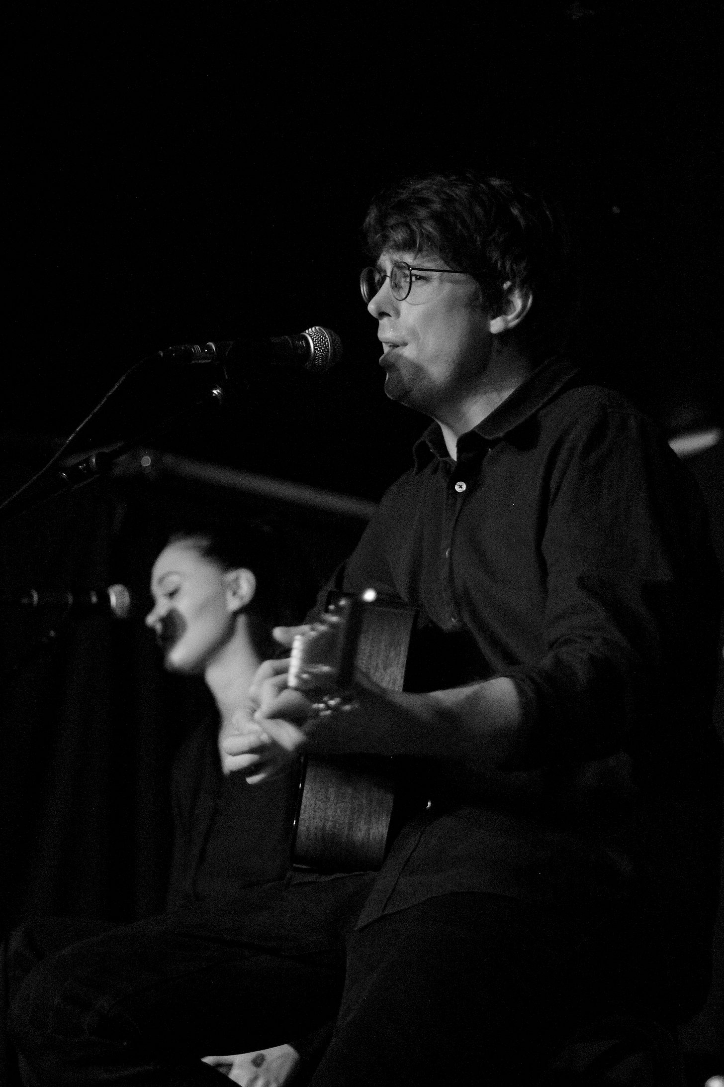 Ce soir, à l’Espace B, le Suédois est venu avec un bassiste (percussionniste également) et une choriste discrète. Lui reste à la guitare sèche, juché sur son siège de bar. Lunettes rondes sur le nez, vêtu tout de noir, le songwriter va faire un concert expéditif. Il faut cependant rappeler qu’il n’a officiellement que deux EPs de sortis, Lovers et Blooshot. L’album est pour bientôt promet-il. Albin Lee Meldau nous joue 12 chansons ce mardi soir à l’Espace B. Et pas de trace de “Let Me Go”, de “One Man Band”, de “Bloodshot”. En revanche, on le sent contraint de jouer “Lou Lou” cette chanson qu’il l’a fait découvrir au plus grand nombre.