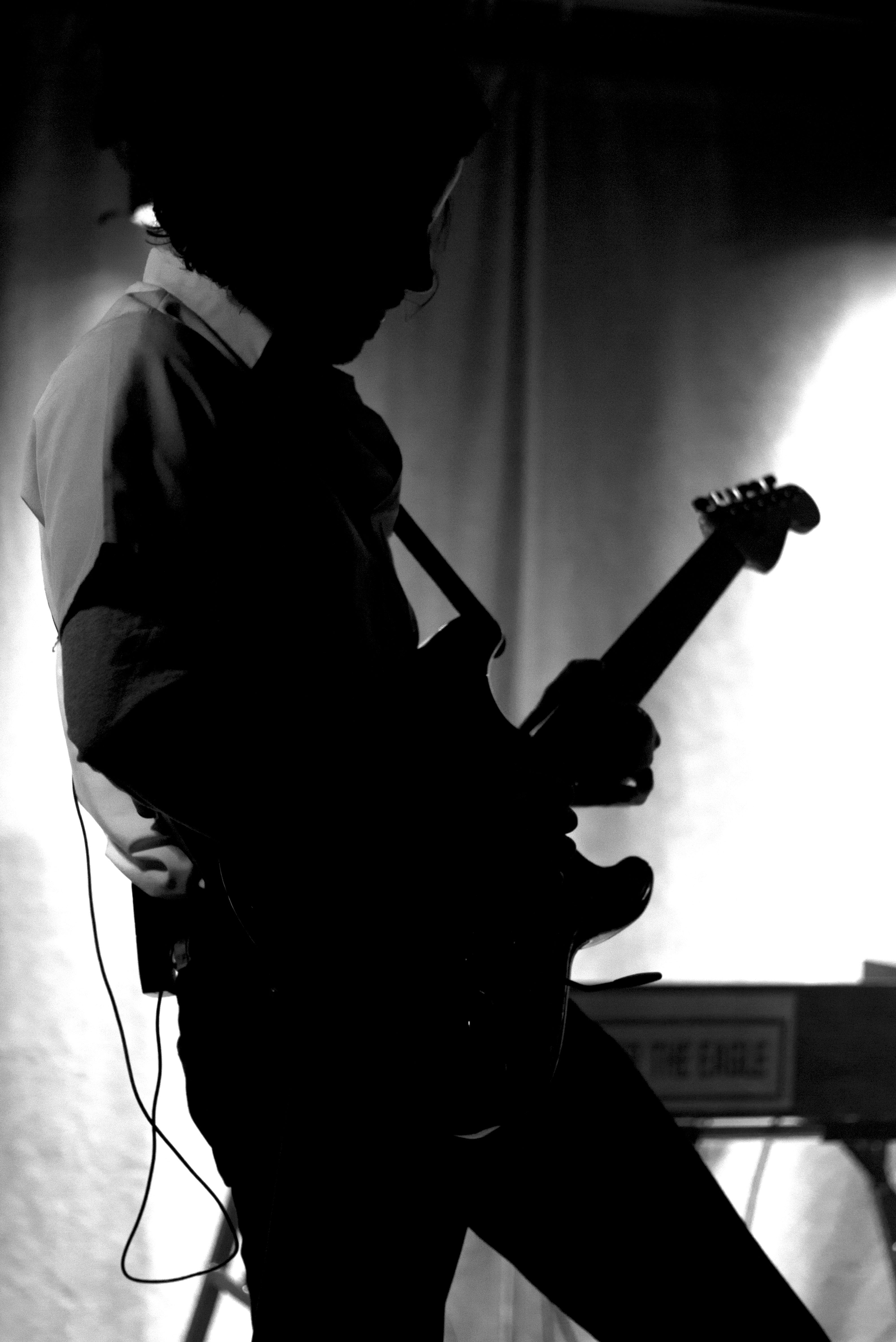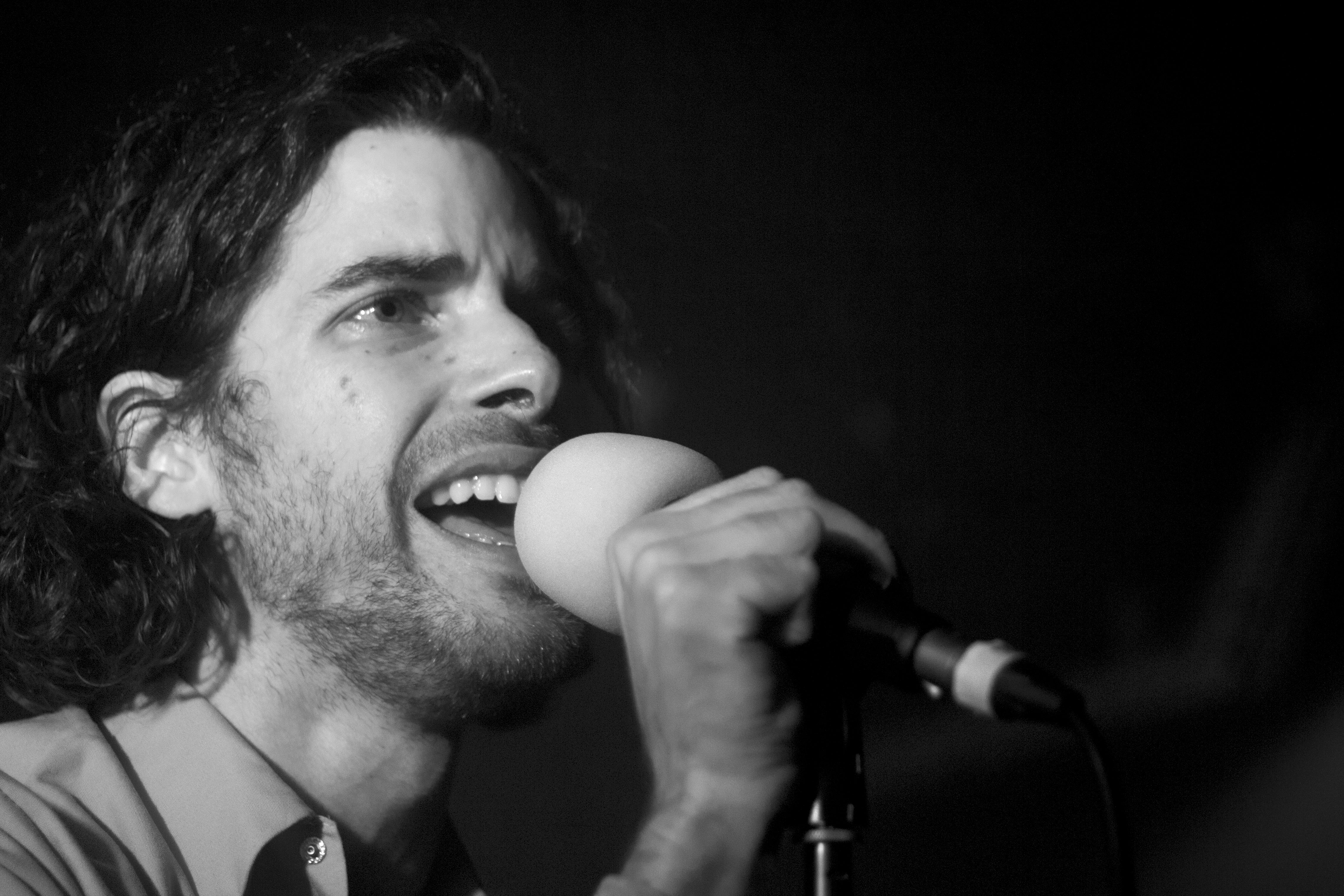 Après quelques minutes d’un rapide changement de plateau, Ryder The Eagle prend place. Derrière lui, ses pistes sont prêtes à être lancées, devant lui un public agglutiné est prêt à chanter à tue-tête et dans ses bras sa fidèle électrique grésille déjà d’impatience. Adrien, ex-batteur de The Dodoz et de Las Aves vient de sortir son premier EP solo, The Ride of Love. Il est dorénavant Ryder The Eagle. C’est avec “Frankfurt” qu’il entame son set, faisant force de toute sa voix, puissante et intense. Intensité, c’est bien le mot qui caractérise l’interprétation du jeune homme. Ses yeux perçants font honneur à son patronyme, tandis que ses mains grattent fébrilement les cordes d’une guitare au son crépitant.