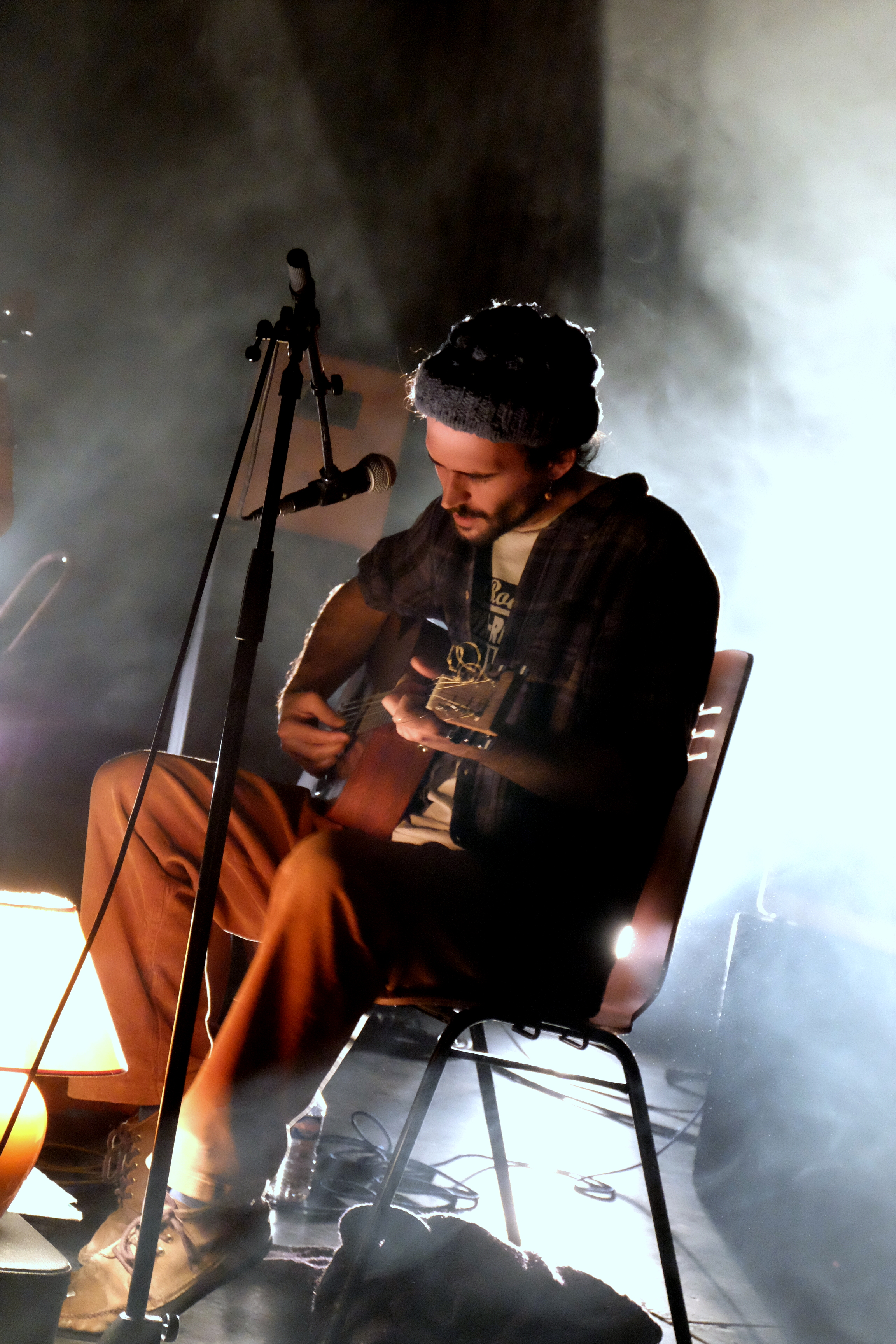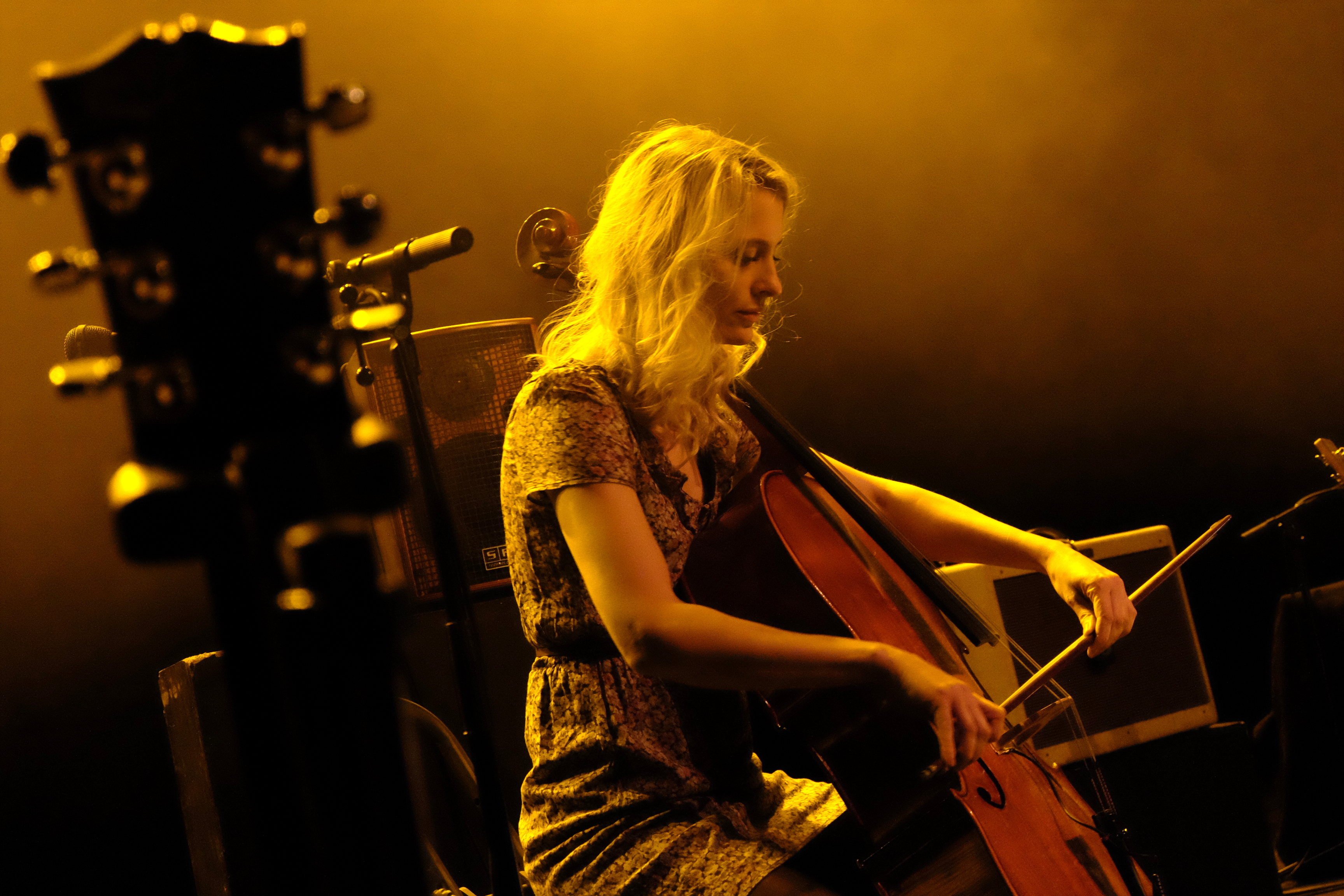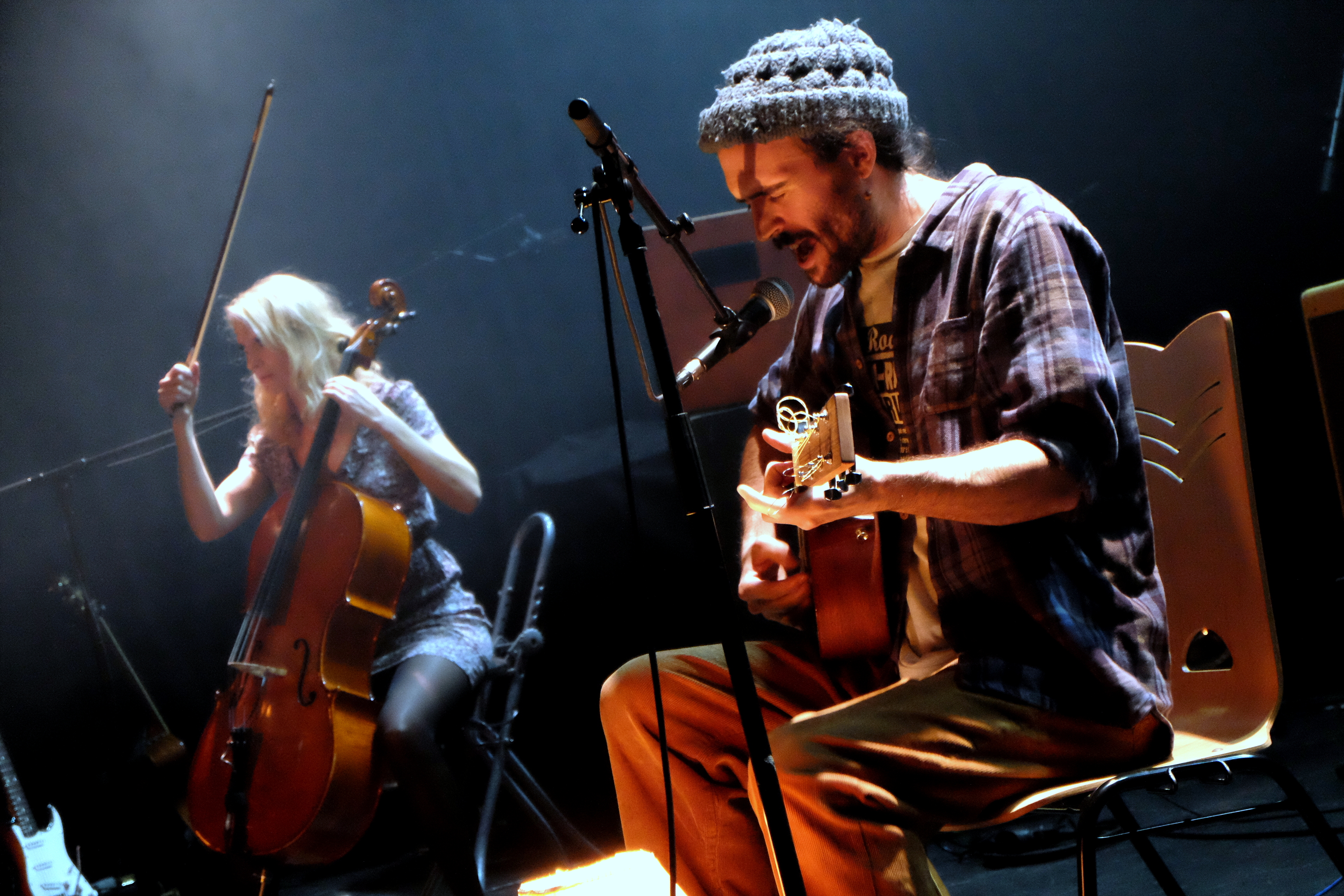 The Wooden Wolf était pour l’occasion en formule duo guitare-violoncelle. Et quelle beauté que ce duo. Entre les chansons de Four Preludes Op5 et les quelques pépites plus anciennes comme “Louise”, la magie a opéré. Toujours cette élégance, renforcée par le duo de voix de Marie et d’Alex, toujours cette délicatesse, toujours cette émotion, qui devient palpable quand Alex annonce “Four Bullets For Berta Cáceres”. Cette chanson, il avoue ne pas la chanter très souvent, à cause des larmes qui montent à chaque fois. Mais Marie a semble-t-il insisté ce soir. Tant mieux. Car entre ce titre et une nouveauté sublime glissée dans la setlist, on a encore eu l’impression de découvrir un peu plus de The Wooden Wolf.
