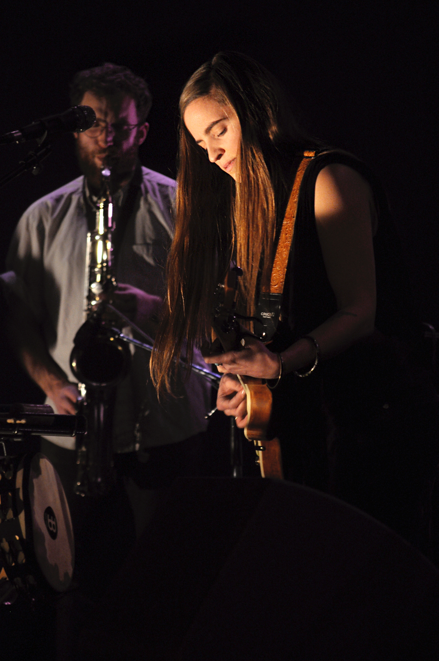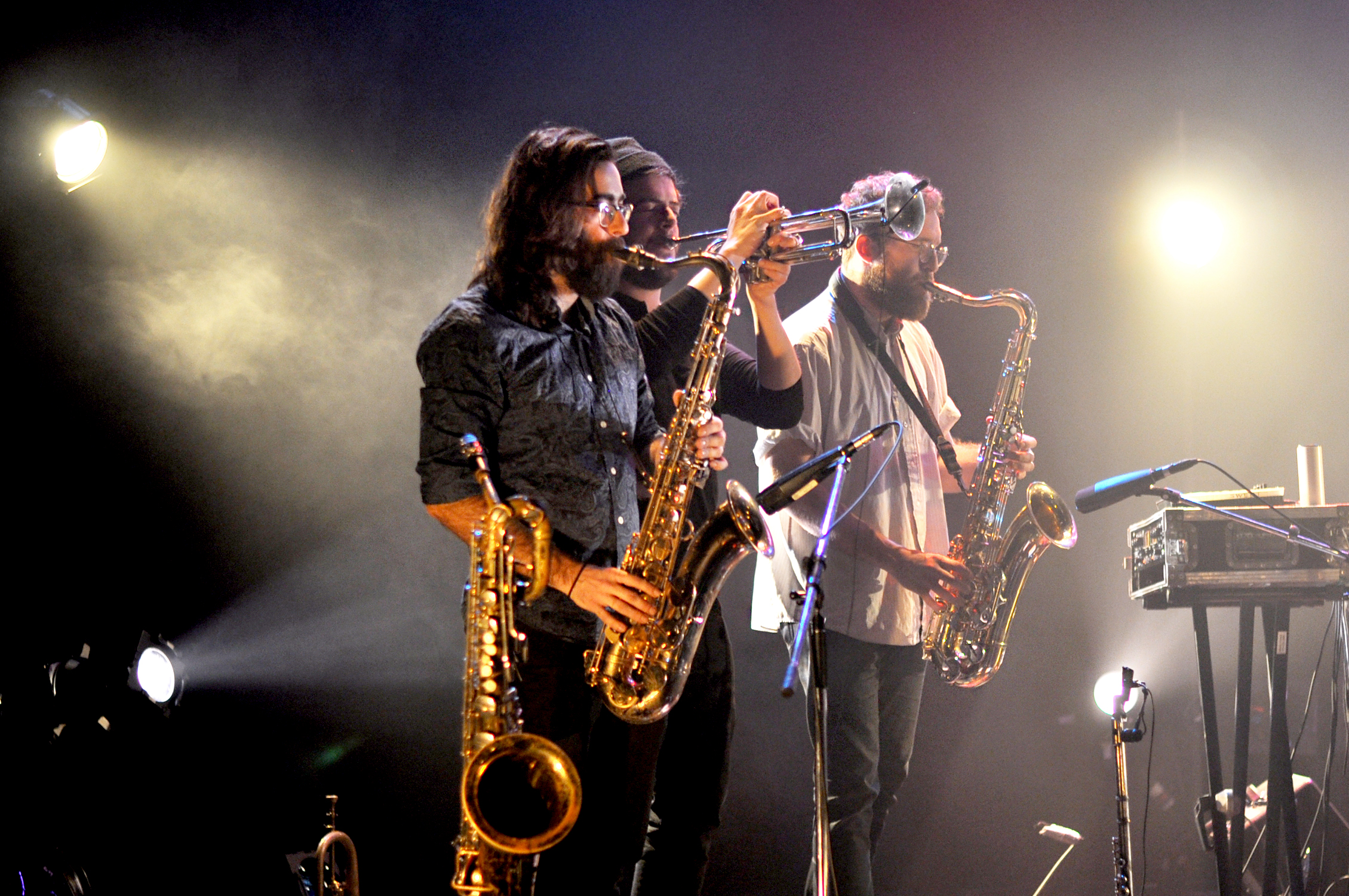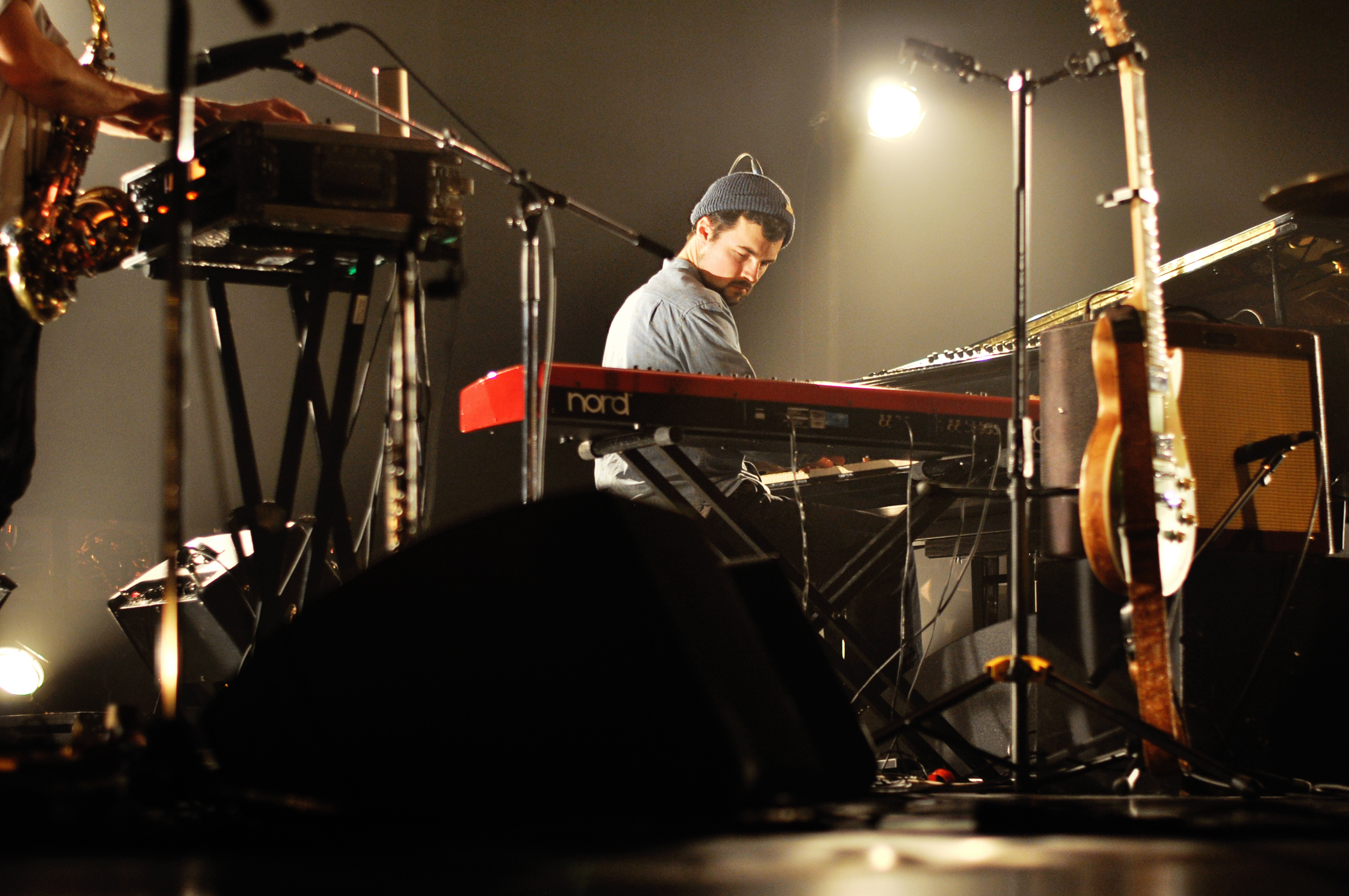 Ce qui est bien avec Bellflower c’est que tu en as pour tes yeux et tes oreilles. Tes yeux d’abord, car la scène est fournie en instruments divers et variés, et que tous en changent régulièrement pendant le concert. Le lustre lumineux installé pour l’occasion au-dessus d’eux et le jeu des lumières nous plongent dans une ambiance enveloppante. Il est aussi fort plaisant de les voir se regarder les uns les autres avec admiration, ou se jeter des sourires heureux de part et d’autre de la scène. Tes oreilles ensuite, puisque le riche son Bellflower est constitué de nappes mélodiques et rythmiques en parfaite harmonie. L’alchimie est totale, des solos aux tutti, les dosages sont méticuleusement amenés.