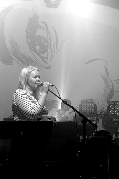 Le début du concert se passe en demi-teinte. Premier problème : j’ai fait mon boulet et me retrouve dans l’incapacité de prendre des photos. Bon. Les lumières étant ce qu’elles sont, les conditions n’étaient de toute façon franchement pas folichonnes pour profiter des neuf compères qui occupent le terrain. Oui, neuf. C’est ça, Belle and Sebastian. Une troupe complète qui débarquent avec des guitares, des basses, des claviers, des trompettes, des violons, des melodicas, des flûtes, des tambourins, etc, etc. J’ai du mal à rentrer dedans, un peu gênée par la vidéoprojection à l’arrière, et tout ce beau monde à l’avant. Je ne sais plus où regarder.