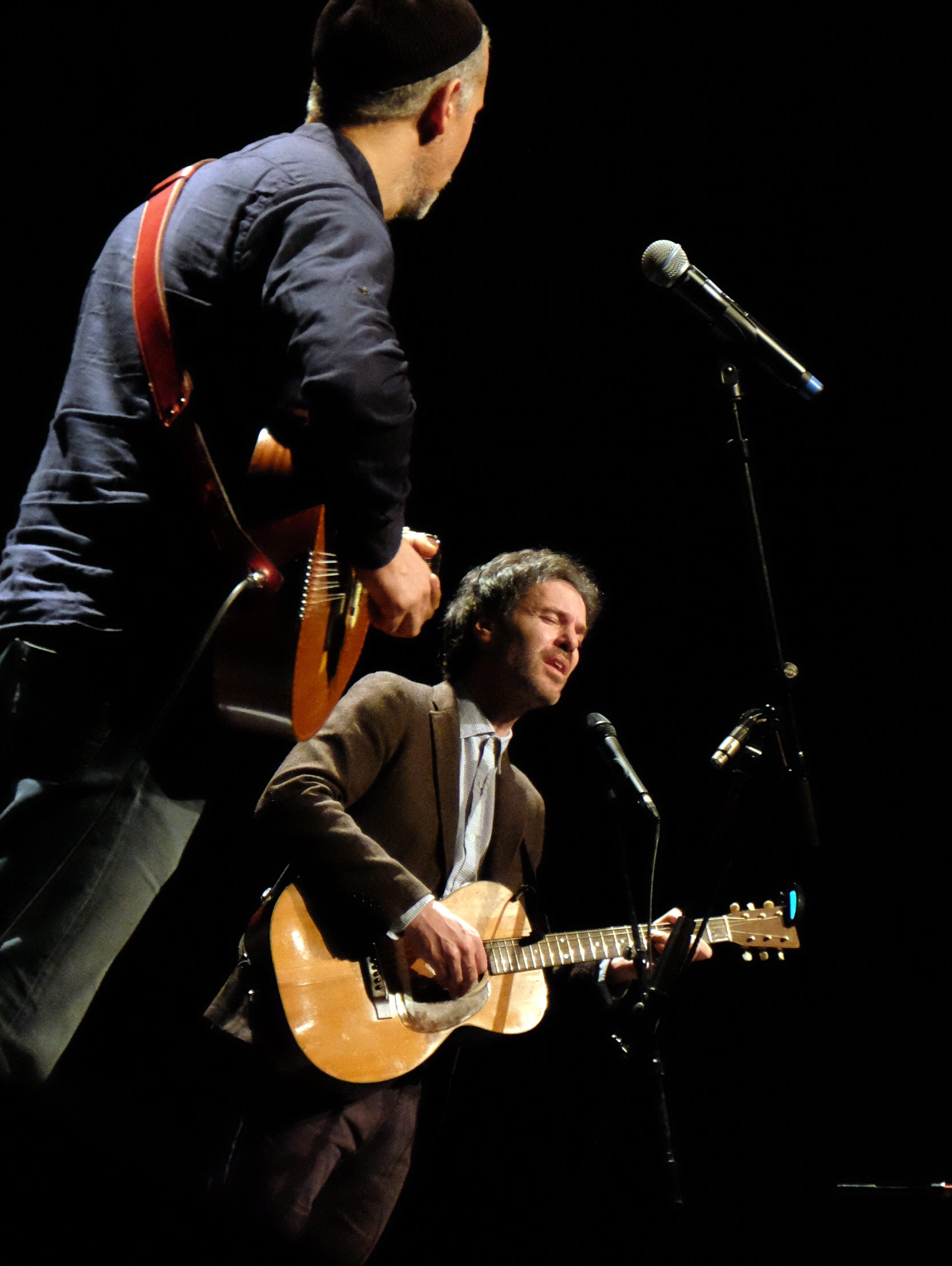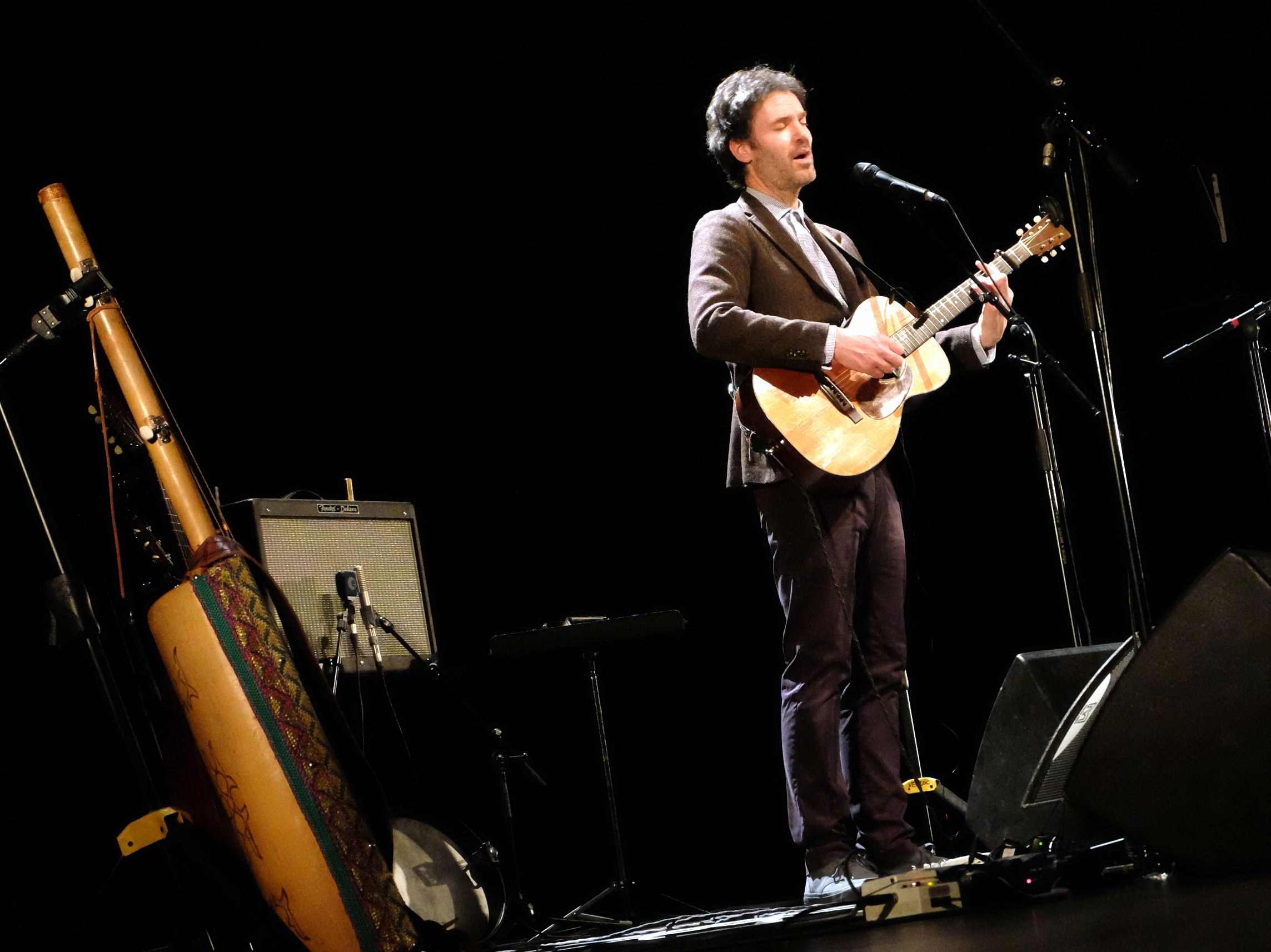 Ça commence avec l’interdiction de sortir l’appareil photo pour les 3 premières chansons. C’est inhabituel. On nous dit “les 3 premières sont très calmes, on ne veut aucun bruit”. Joie intérieure, Piers Faccini commence donc délicatement avec 3 moments de grâce que rien ne vient perturber : “Tranieri”, “Oiseau”, “Drone”. À ce moment-là, mon cœur a déjà complètement débordé et je ne réponds plus de grand chose. Mais moi qui m’étais terrée loin, je file vers l’avant dès que les choses s’agitent.