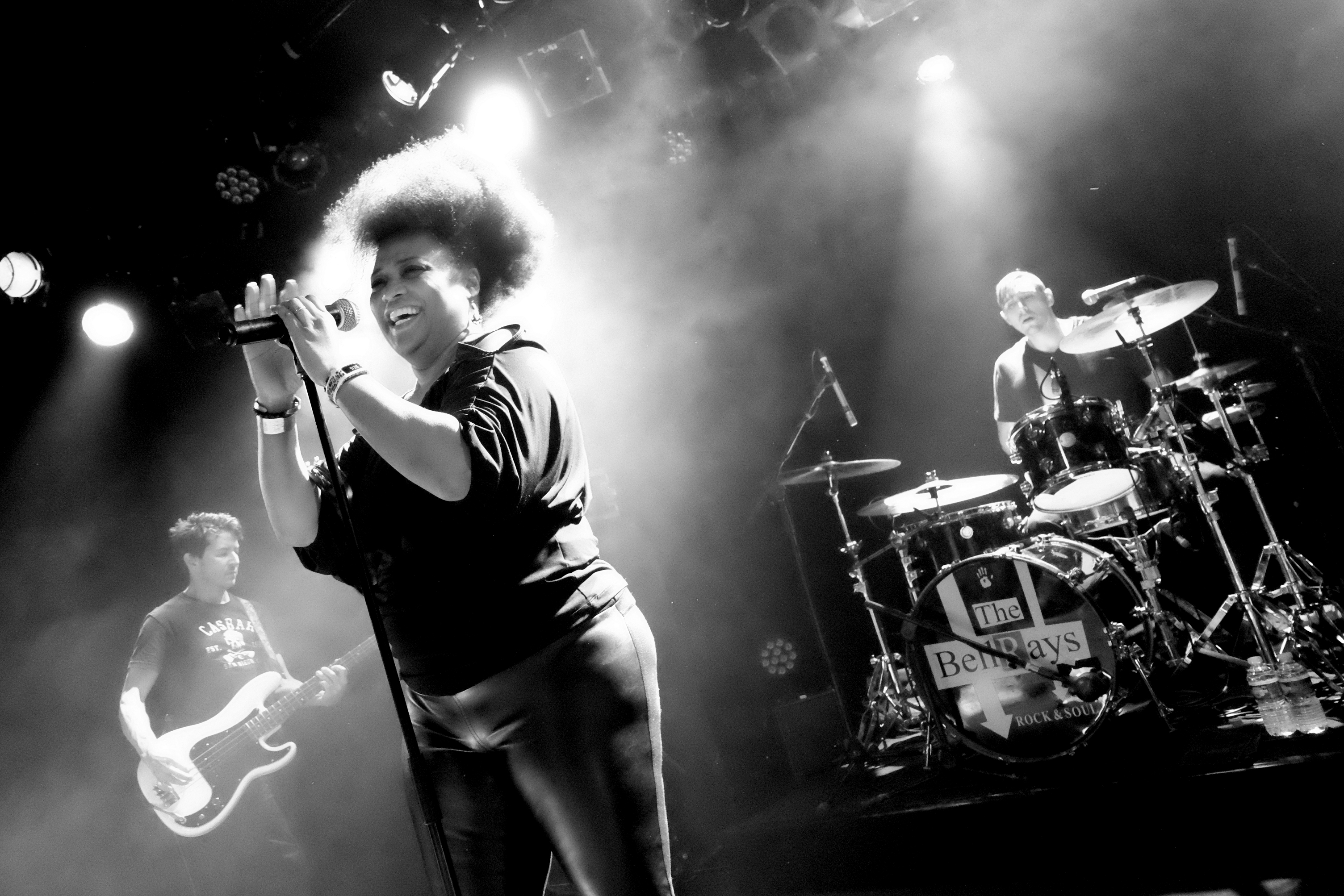 Je vais être honnête, je ne connaissais même pas les Bellrays. Pourtant, ce groupe existe depuis 1990, et s’est clairement fait un nom, au vu du public présent dans la salle de la Laiterie. Il paraît qu’on disait d’eux à une certaine époque qu’ils étaient une sorte de The Stooges qui auraient rencontré Tina Turner. Je comprends la comparaison quand j’entends les premiers titres et vois le look de la chanteuse, Lisa Kekaula. Quelle voix ! À pleine puissance, c’est un moteur qui vrombit. Et les musiciens la suivent avec leur mélange rock, soul, et funk. Bref, ça envoie fort. Tellement que je filerai à l’arrière les trois premières chansons finies. Et au fond, je ne pourrais que me rendre à l’évidence : j’ai l’impression d’être face à une machine bien huilée qui file à toute blinde, pendant que je reste sur le bas-côté.