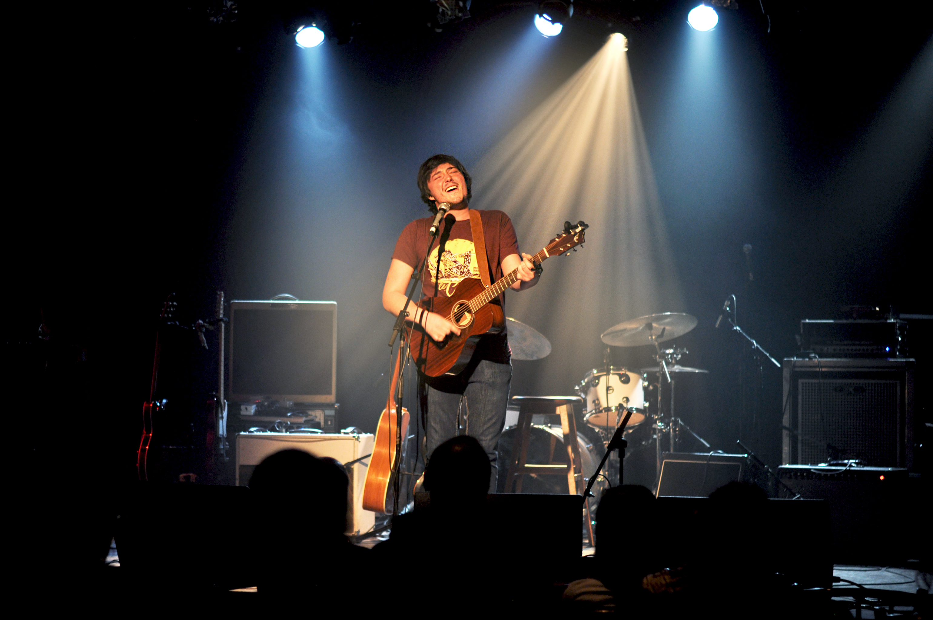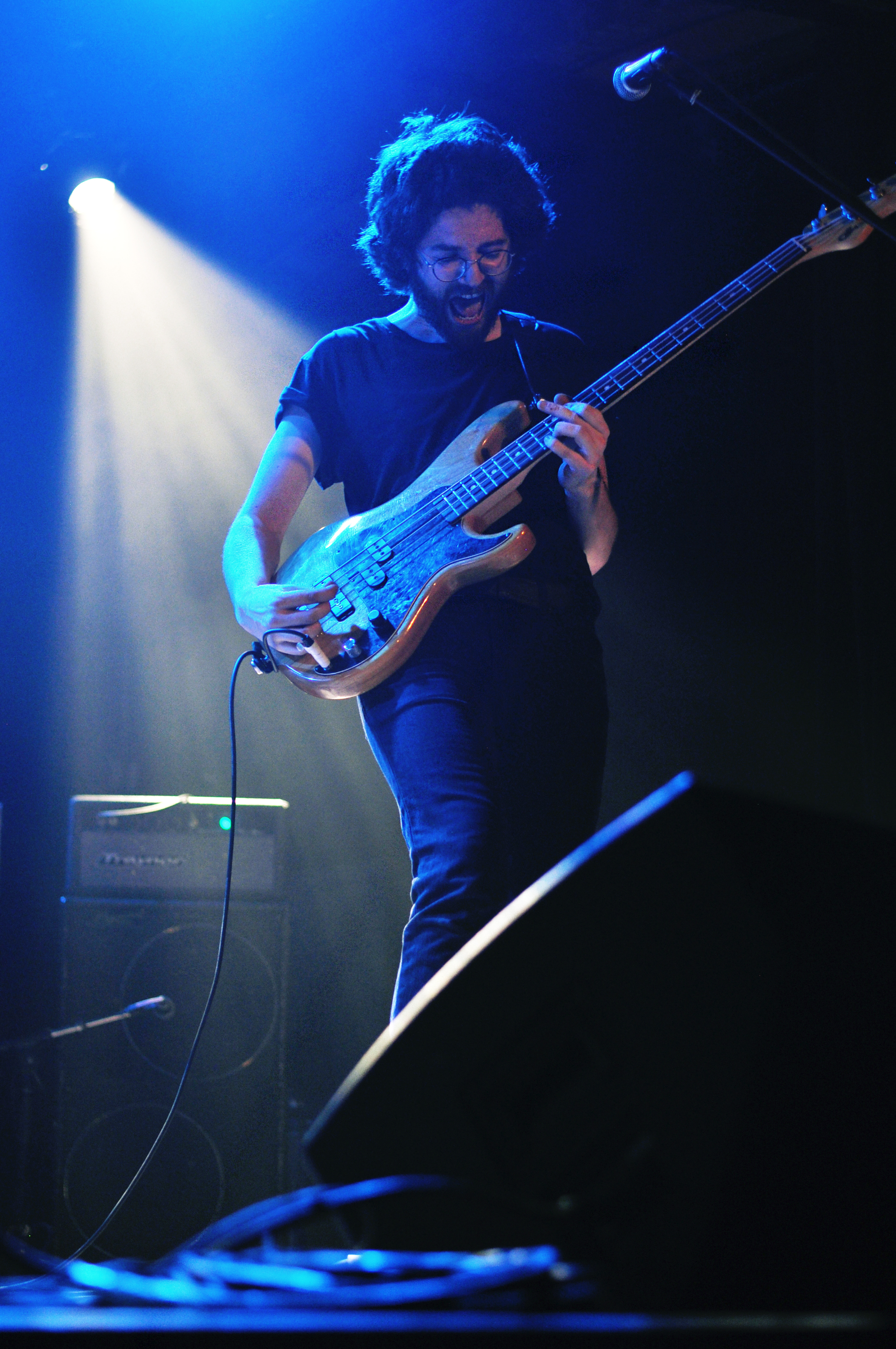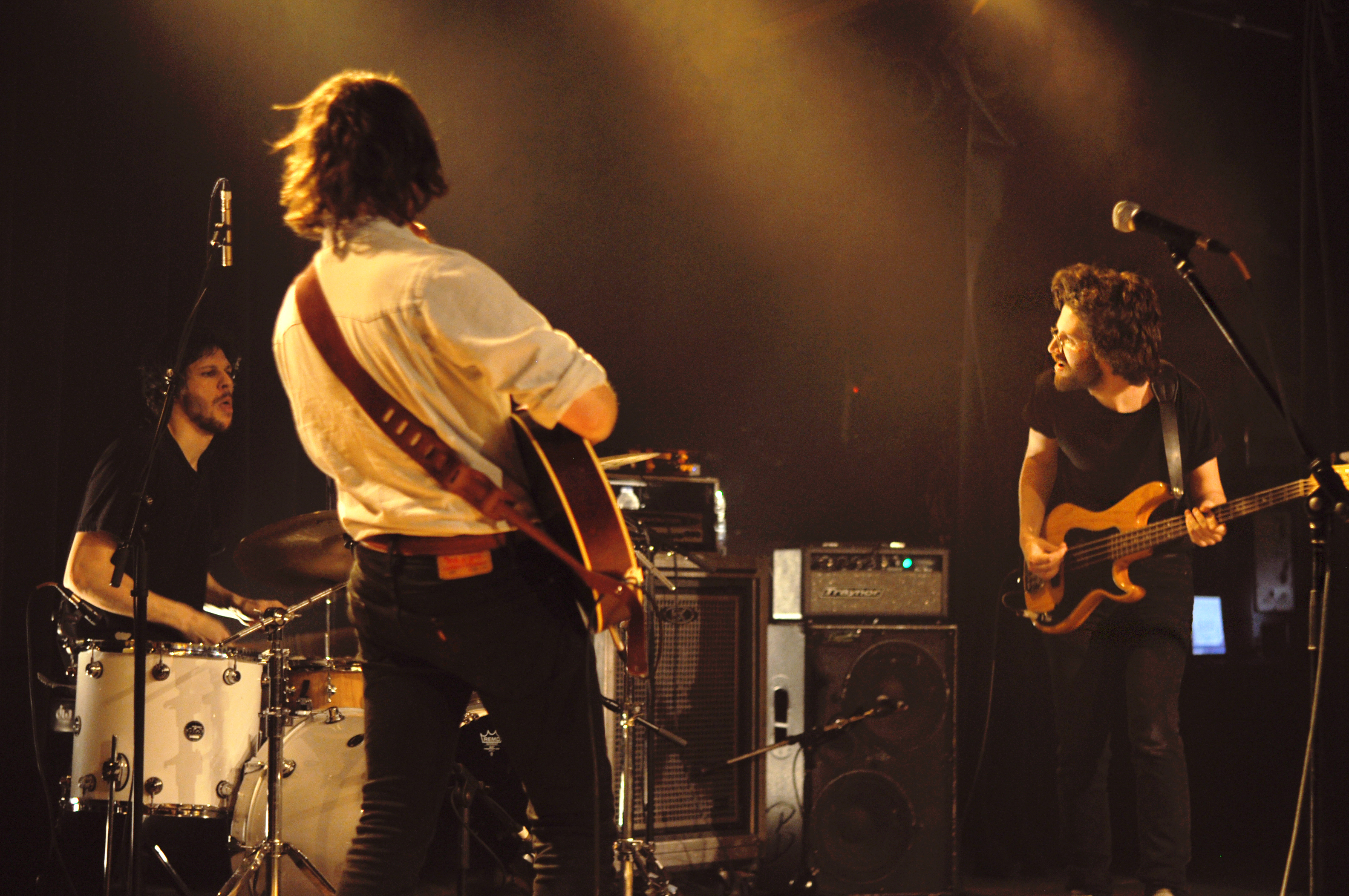 La fin de la soirée est à zouz. Trois Montréalais, guitare-basse-batterie. Deux membres de Mon Doux Saigneur. Sur scène, c’est une grosse claque de rock fougueux dans ta face. Une gifle qui te laisse la joue bien enflammée. Très vite, je pense à Lysistrata version québécoise. Ça module, ça expérimente, ça distord à mort à coup de bottleneck, ça fait du hair spinning et ça s’amuse visiblement beaucoup sur les nombreux passages instrumentaux qui ont certes le mérite de montrer que zouz sont de très bons musiciens, mais qui ont tendance à me laisser souvent sur la touche. C’est le bordel. Pourtant il y a quelque chose d’hypnotisant et le regard (à défaut des oreilles) finit toujours par revenir à David, François et Étienne, ses trois énergumènes qui livrent un show explosif.