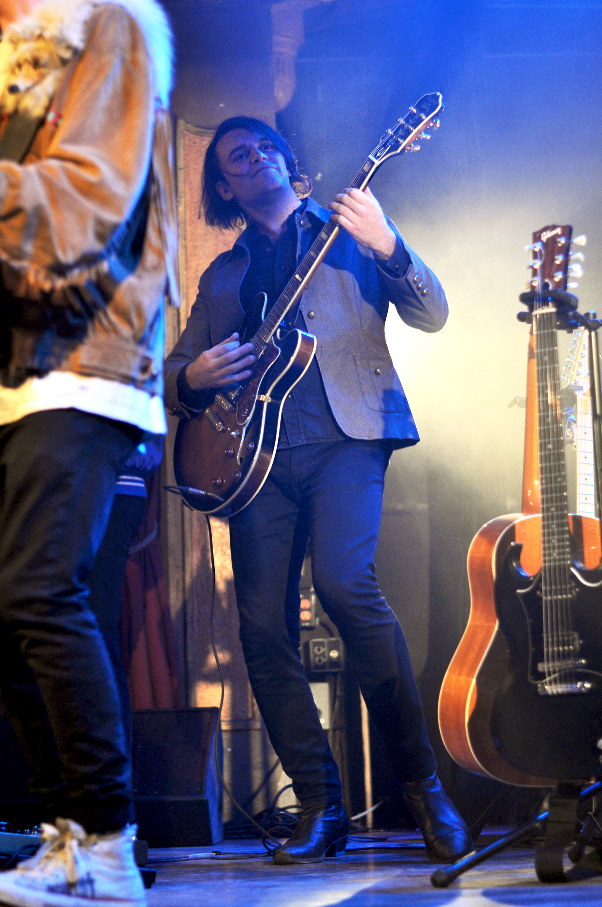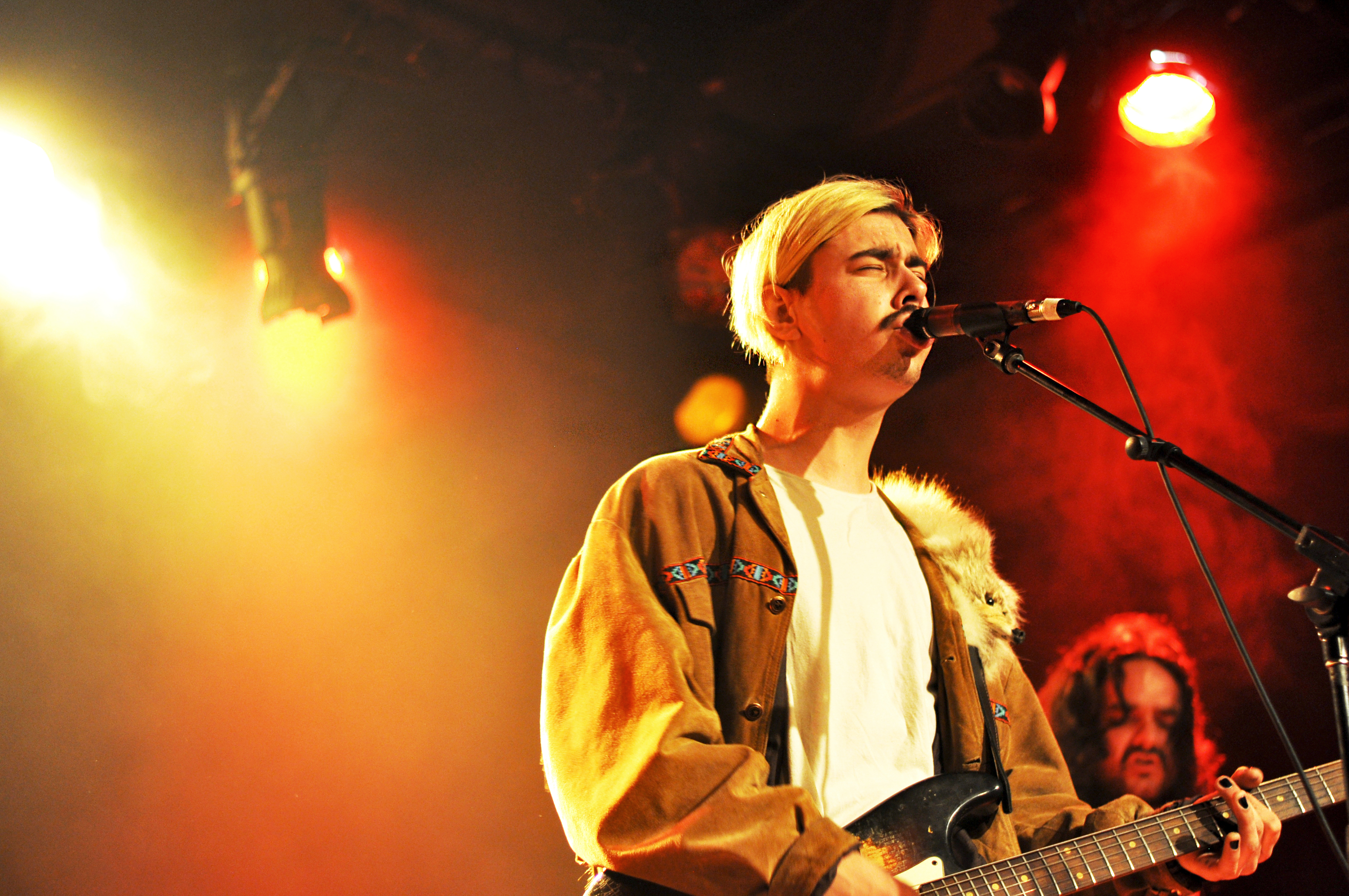 Gabriel Bouchard prend la suite pour la première prestation du concours. Accompagné de ses potes de Gazoline, le Québécois vêtu d’une veste à franges et de sa fameuse sangle à guitare à fourrure joue les titres de son premier EP, Cerveau-lent sorti en 2017. C’est une belle confirmation live, moi qui n’avait pas encore eu la chance de l’entendre, je suis ravie. Visiblement, les cinq garçons prennent beaucoup de plaisir à jouer ensemble et ça se ressent musicalement. Que ce soit avec Gazoline ou en parenthèse guitare-voix sur le devant de la scène pour une chanson bien romantique (mais pas cheesy), Gabriel Bouchard a un réel talent de conteur/rockeur contemporain qui l’amènera, on l’espère, bien loin.