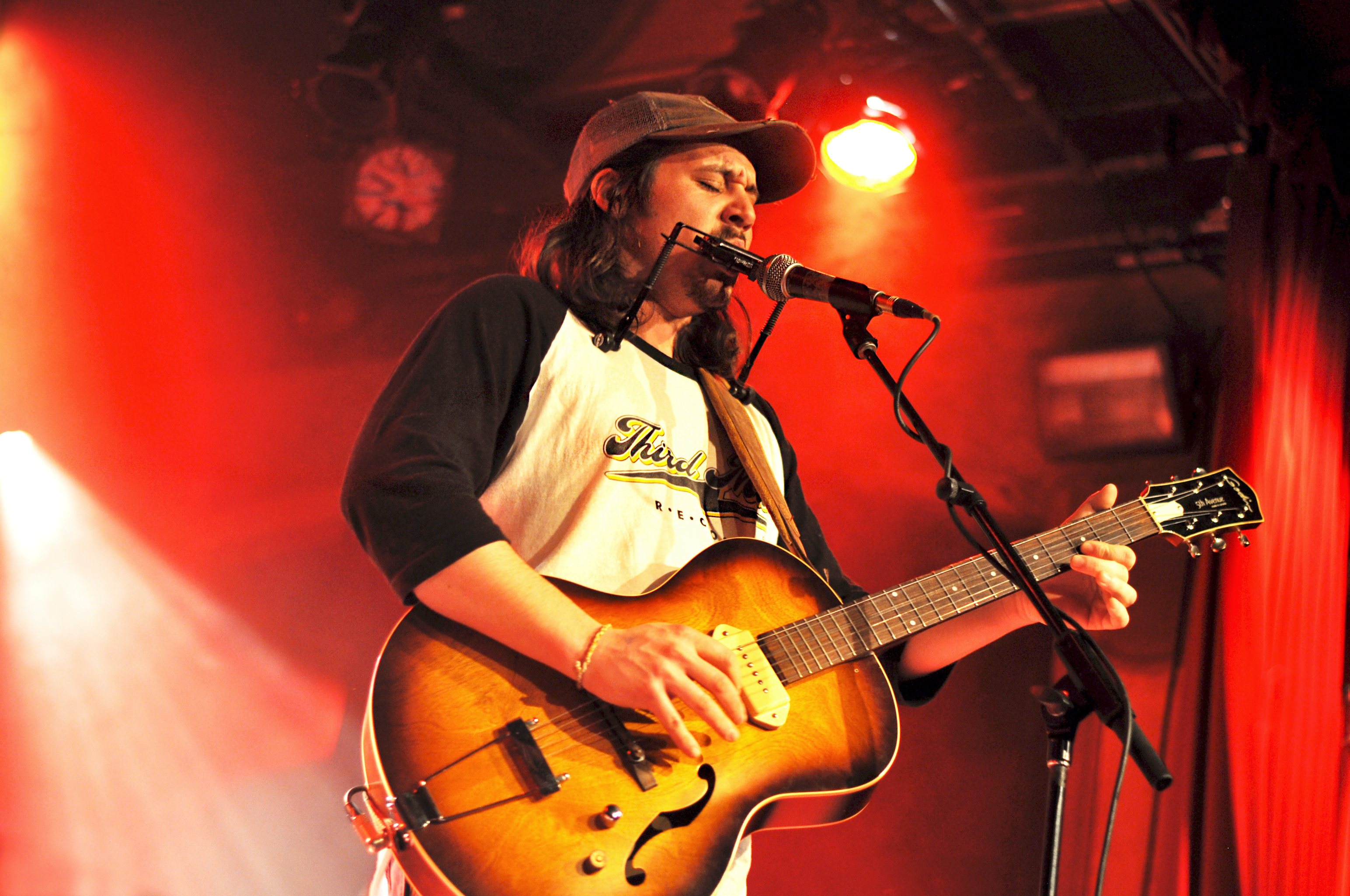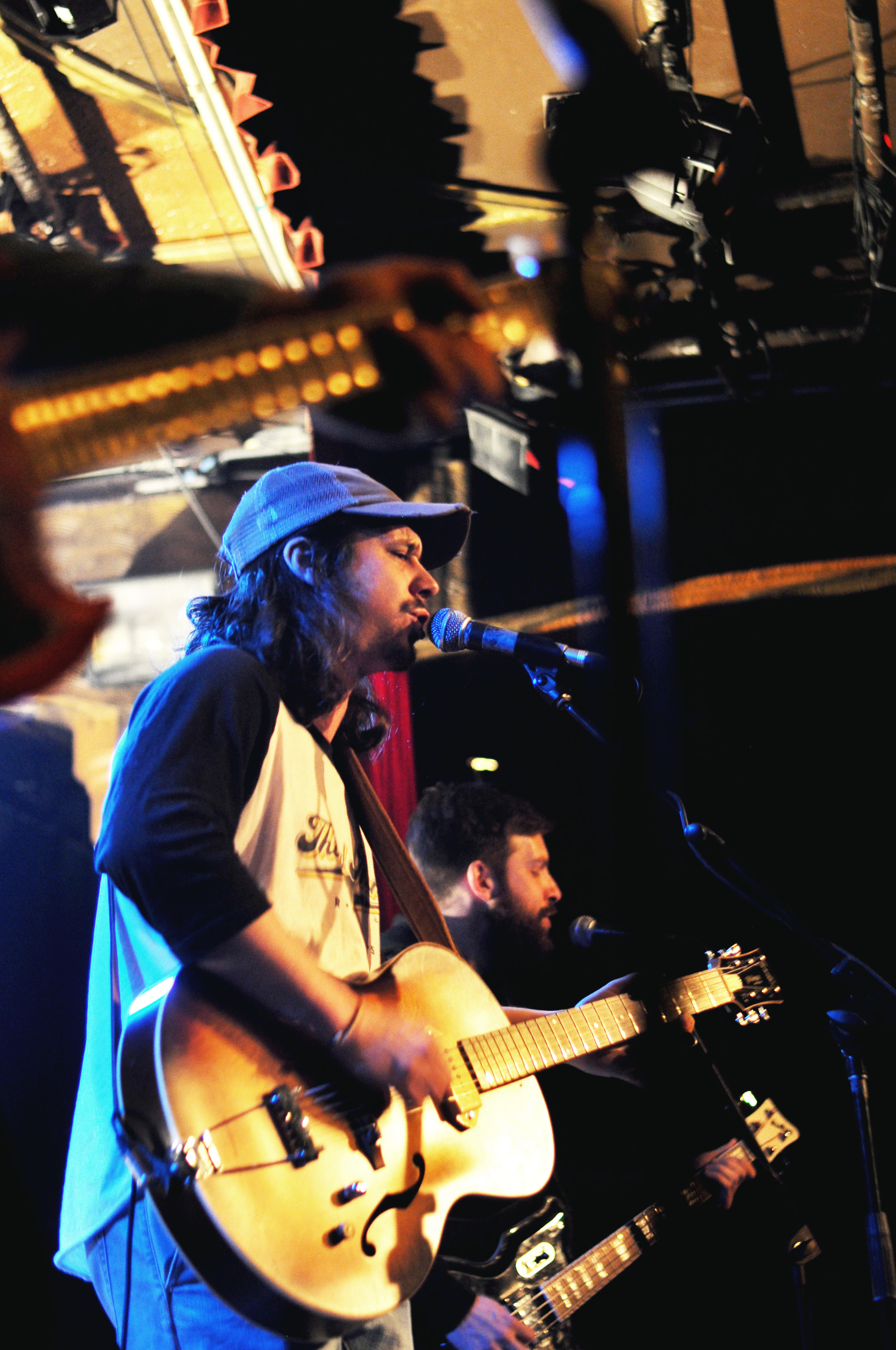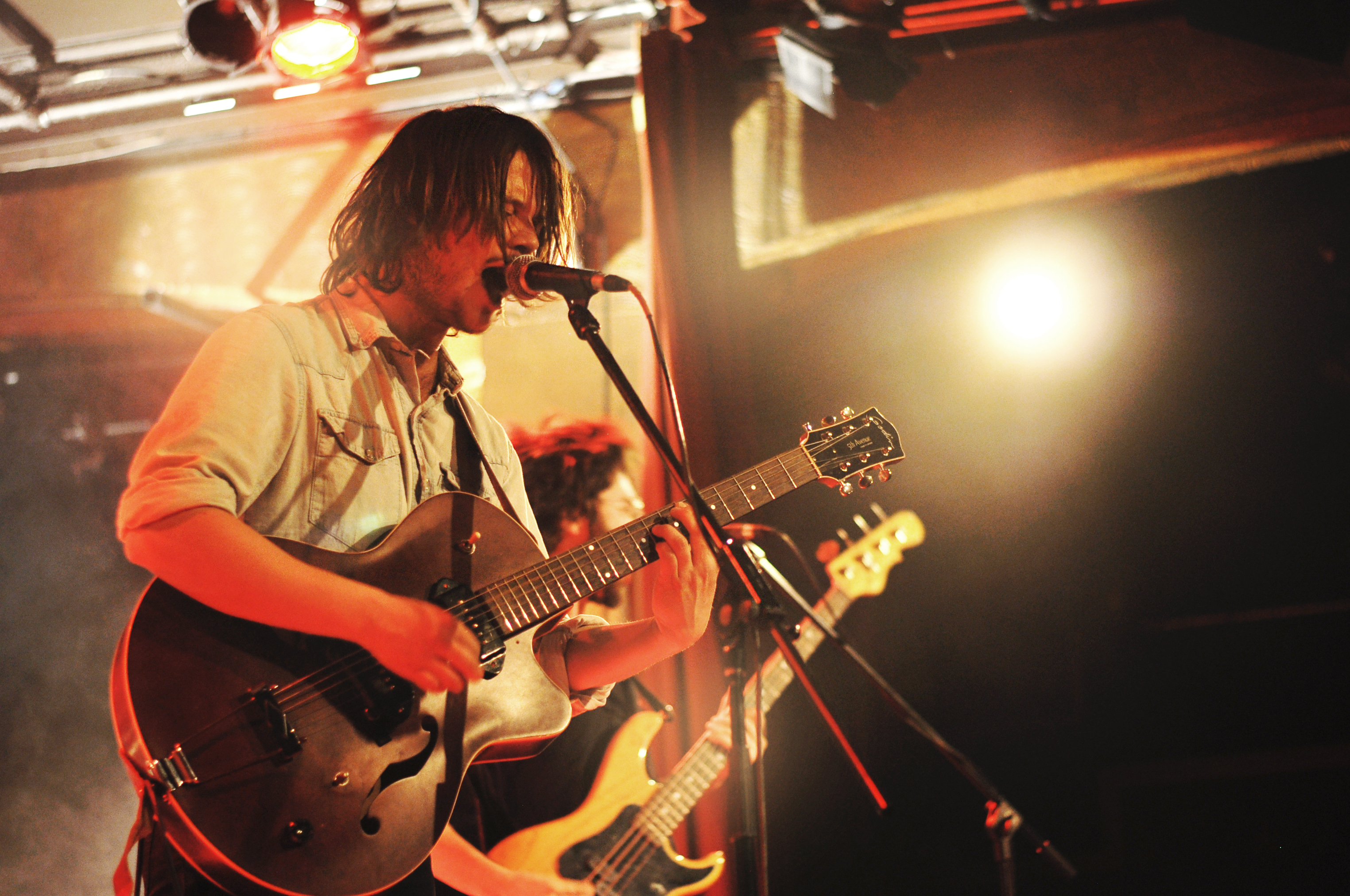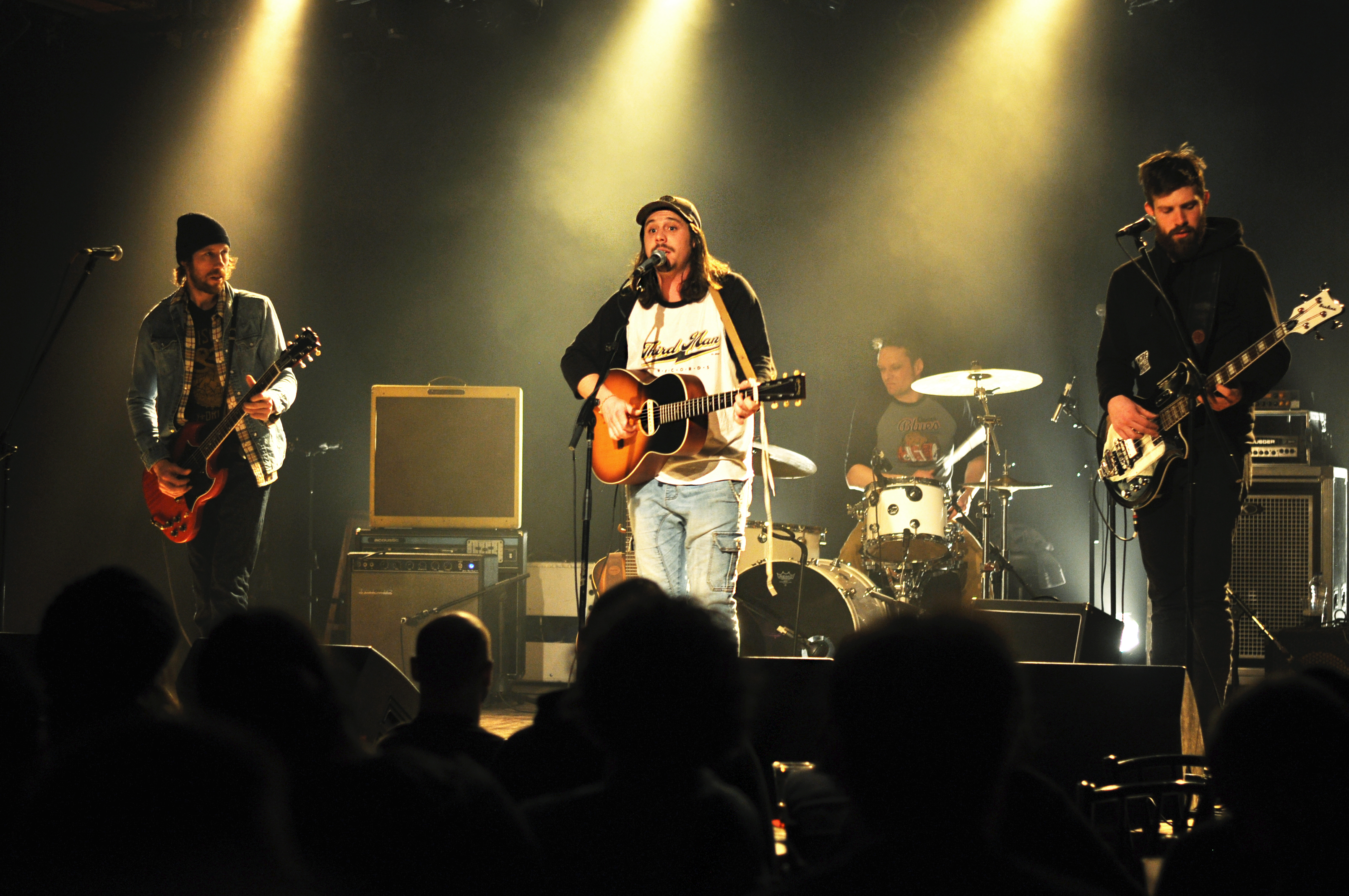 On continue avec Raphaël Dénommé, le bluesman de la soirée. Avec ses trois musiciens, et ses guitares originales, l’originaire de Varennes fait une prestation propre et charmante entre blues et folk. Tout est bien calé pour cet habitué des premières parties de Heymooshaker et de Steve Hill. Harmonica jamais loin, Raphaël Dénommé sait y faire pour nous entraîner avec lui dans les méandres moites du sud des États-Unis. Quoi que… quand le Lion d’Or se met à répondre “Tor” à “Cass”, on reprend vite fait pied au Canada avec celui qui décrit sa musique comme “castor blues québécois”. Oh boy !