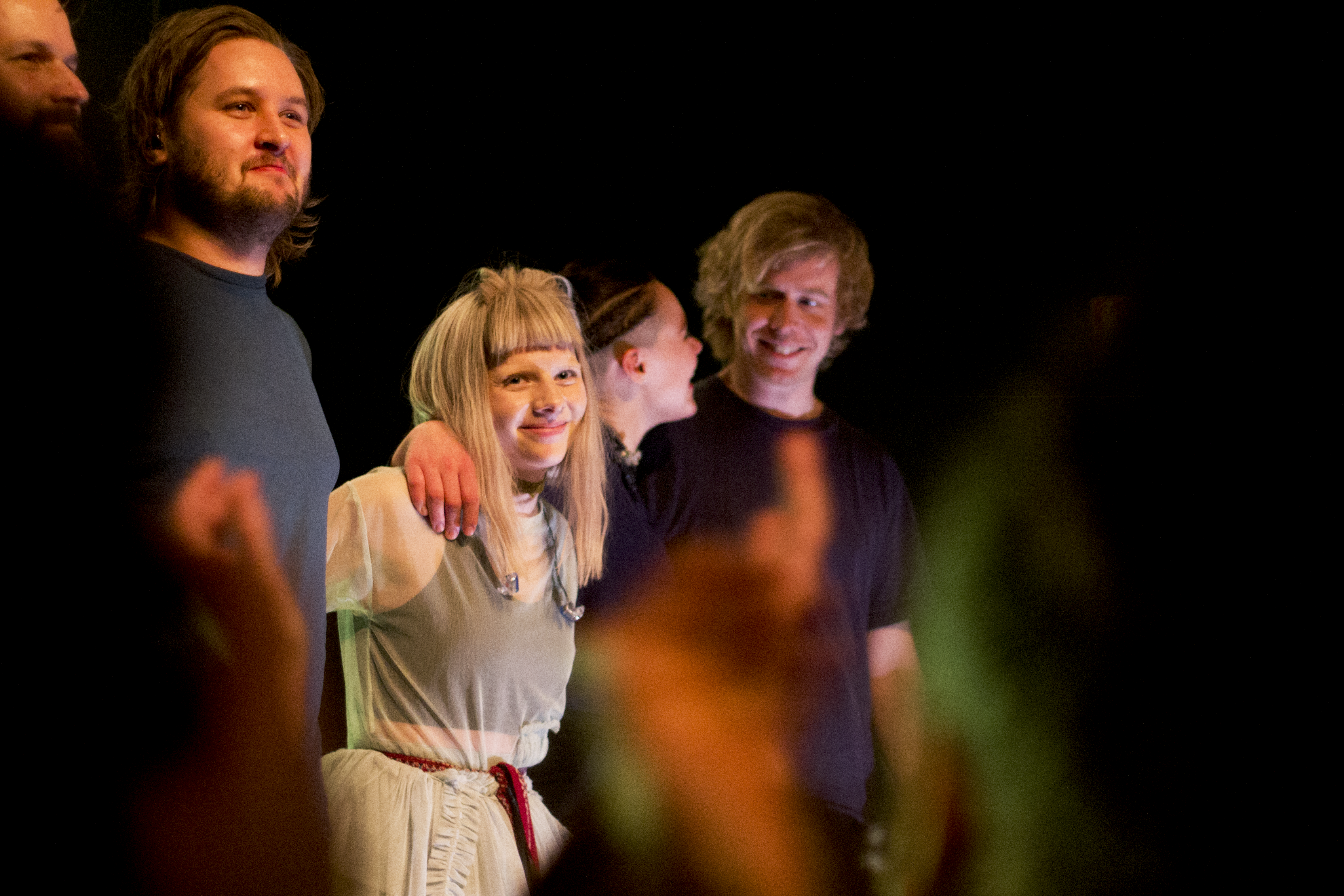 Aurora n’est pas encore montée sur scène que le public amassé aux premiers rangs tape déjà des mains et crie d’excitation. Le Badaboum affiche ce soir salle comble pour le retour de la jeune Norvégienne en France. C’est ce soir qu’elle reprend la tournée, annonçant la sortie très prochaine d’un nouvel album, après All Demons Greeting Me As A Friend, sorti en 2016. Émue, elle ne cache pas son plaisir de se retrouver devant son public, fidèle et sincèrement dévoué. Après une entrée timide, Aurora se met rapidement à l’aise, racontant anecdotes et historiettes sur l’enregistrement en France de ce nouvel album et les dernières années passées sur scène, à apprendre à parler avec aisance au public. Mission accomplie !