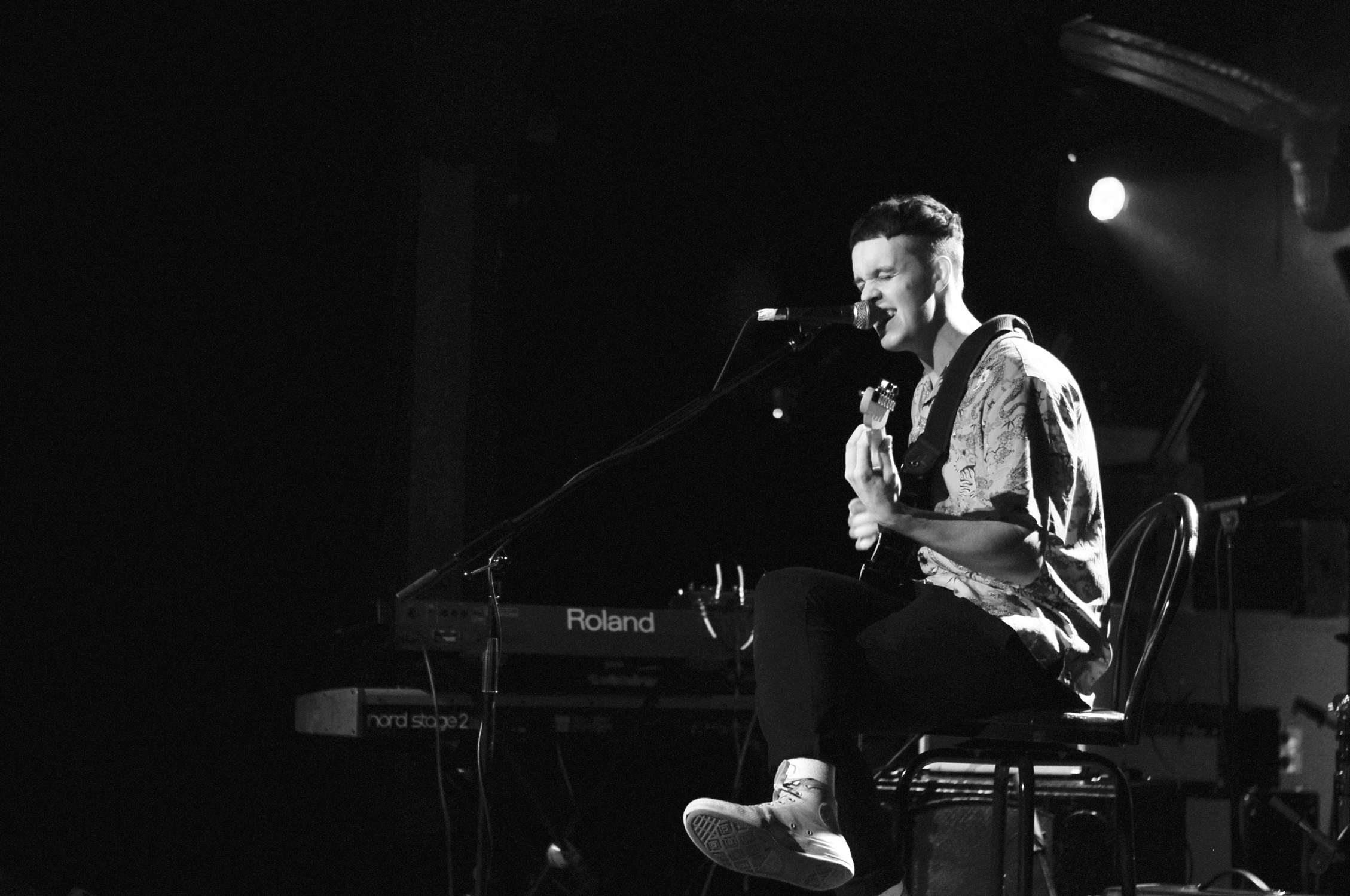 Pour nous accueillir, c’est un ex des Francouvertes qui vient jouer pendant 15 minutes. Le deal ? Présenter au moins une nouvelle chanson. Ce soir-là c’est Les Louanges qui rempli la mission avec sa guitare électrique et sa voix haut perchée. Il nous parle du statut d’ex, un an à peine après sa défaite en finale face à Lydia Képinski, avec beaucoup d’auto-dérision. Sans batterie, il nous invite à l’imaginer dans nos têtes, lui se la chante. Il aurait aussi aimé voir tournoyer une boule à facette pendant son dernier titre sur lequel il “se mouille” et se lève de son tabouret pour chanter la sexy “Pitou”, extrait de son tout premier album à venir chez Bonsound à l’automne. De quoi se réjouir !